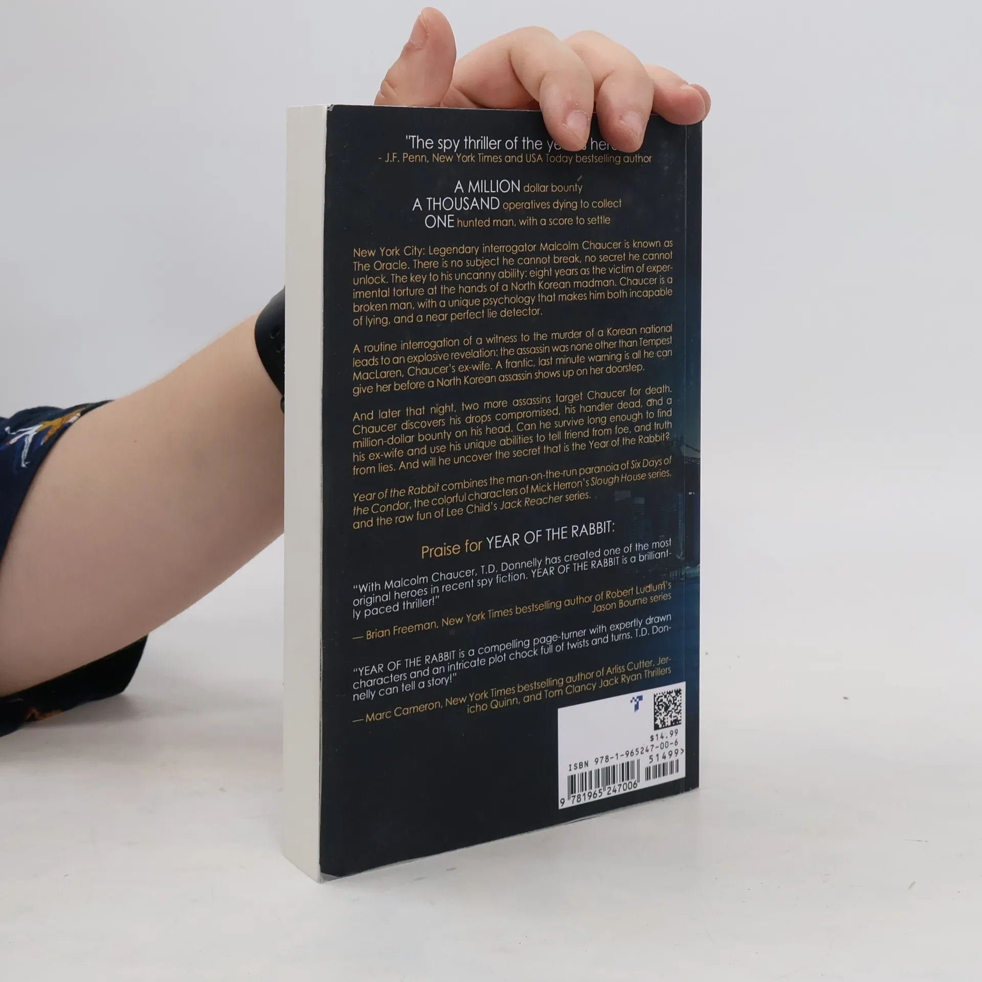 "A million dollar bounty. A thousand operatives dying to collect. One hunted man, with a score to settle. New York City: Legendary interrogator Malcolm Chaucer is known as The Oracle. There is no subject he cannot break, no secret he cannot unlock. The key to his uncanny ability: eight years as the victim of experimental torture at the hands of a North Korean madman. Chaucer is a broken man, with a unique psychology that makes him both incapable of lying, and a near perfect lie detector. A routine interrogation of a witness to the muder of a Korean national leads to an explosive revelation: the assassin was none other than Tempest MacLaren, Chaucer's ex-wife. A frantic, last minute warning is all he can give her before a North Korean assassin shows up on her doorstep. And later that night, two more assassins target Chaucer for death. Chaucer discovers his drops compromised, his handler dead, and a million-dollar bounty on his head. Can he survive long enough to find his ex-wife and use his unique abilities to tell friend from foe, and truth from lies. And will he uncover the secret that is the Year of the Rabbit? Year of the Rabbit combines the man-on-the-run paranoia of Six Days of the Condor, the colorful characters of Mick Herron's Slough House series, and the raw fun of Lee Child's Jack Reacher series" --