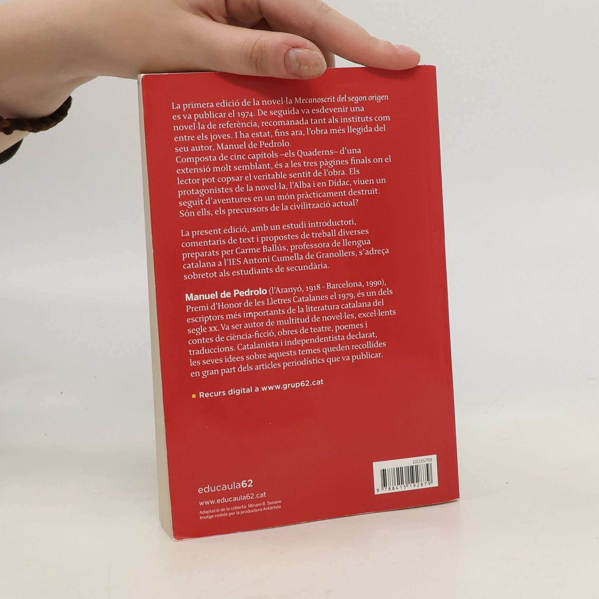 Amb el títol de Mecanoscrit del segon origen és conegut, l'any 7138 de la nova era, el llibre que més de quatre mil anys enrere havia estat rescatat de l'oblit i que ocasionà fins i tot serioses discussions entre els entesos d'aquell temps. Obra de ciencia-ficció, com pretén l'erudit Eli Raure, o memóries autèntiques d'un dels pocs sobrevivents de la catàstrofe que destruí la civilització, com opina el marxant d'antiguitats Olguen Dalmasas? És l'Alba, la seva protagonista,un personatge denovel·la o bé la mare de la humanitat que s'ha refet gairebé a partir de zero? Aquesta noia de catorze anys, "verge i bruna", com diu ella mateixa, es dreça del text amb un poder de suggestió tan extraordinari que costa de creure que algú, ni que sigui Manuel de Pedrolo, pugui haver-la inventada. D'on l'ha treta? D'on l'hi ha vingut, el mecanoscrit?