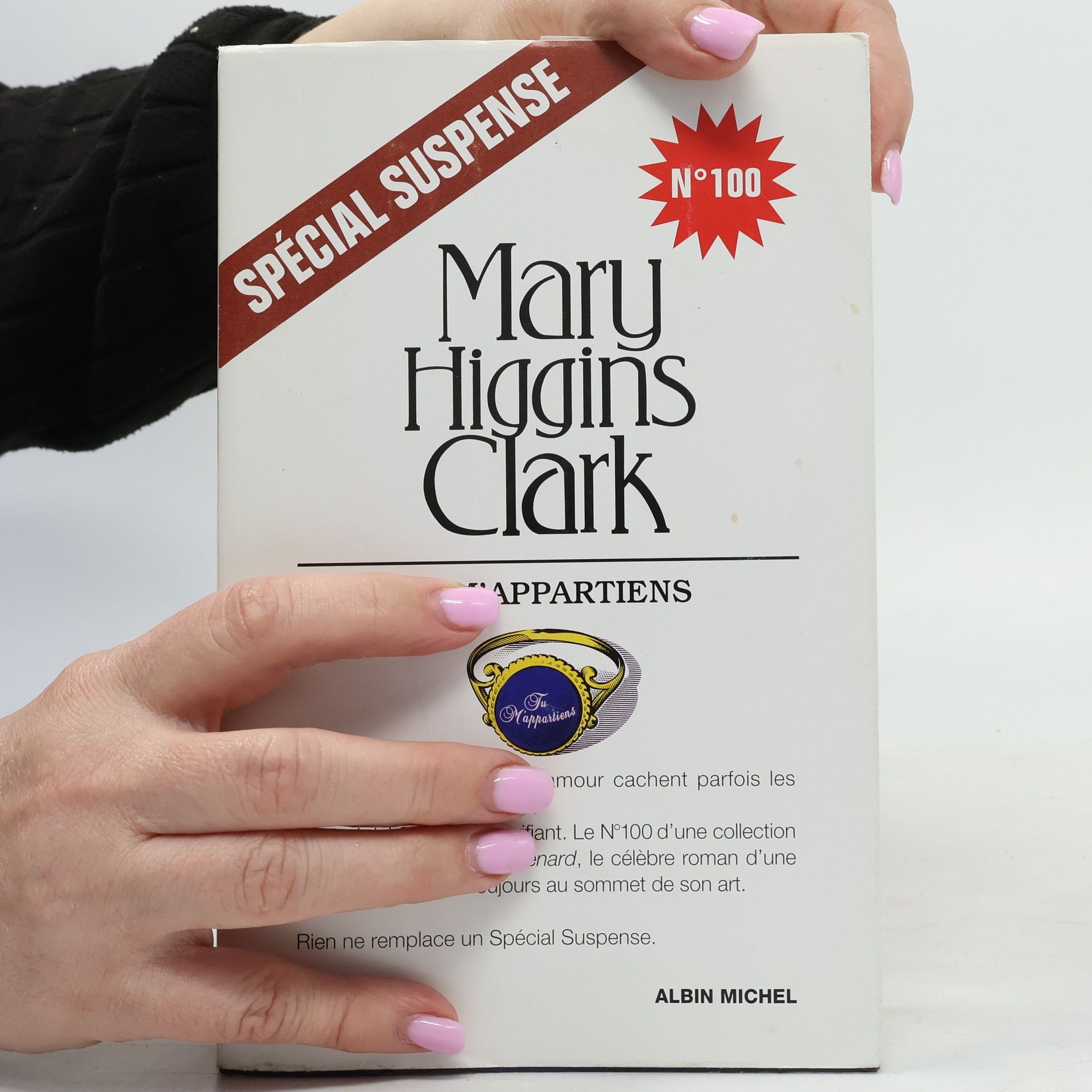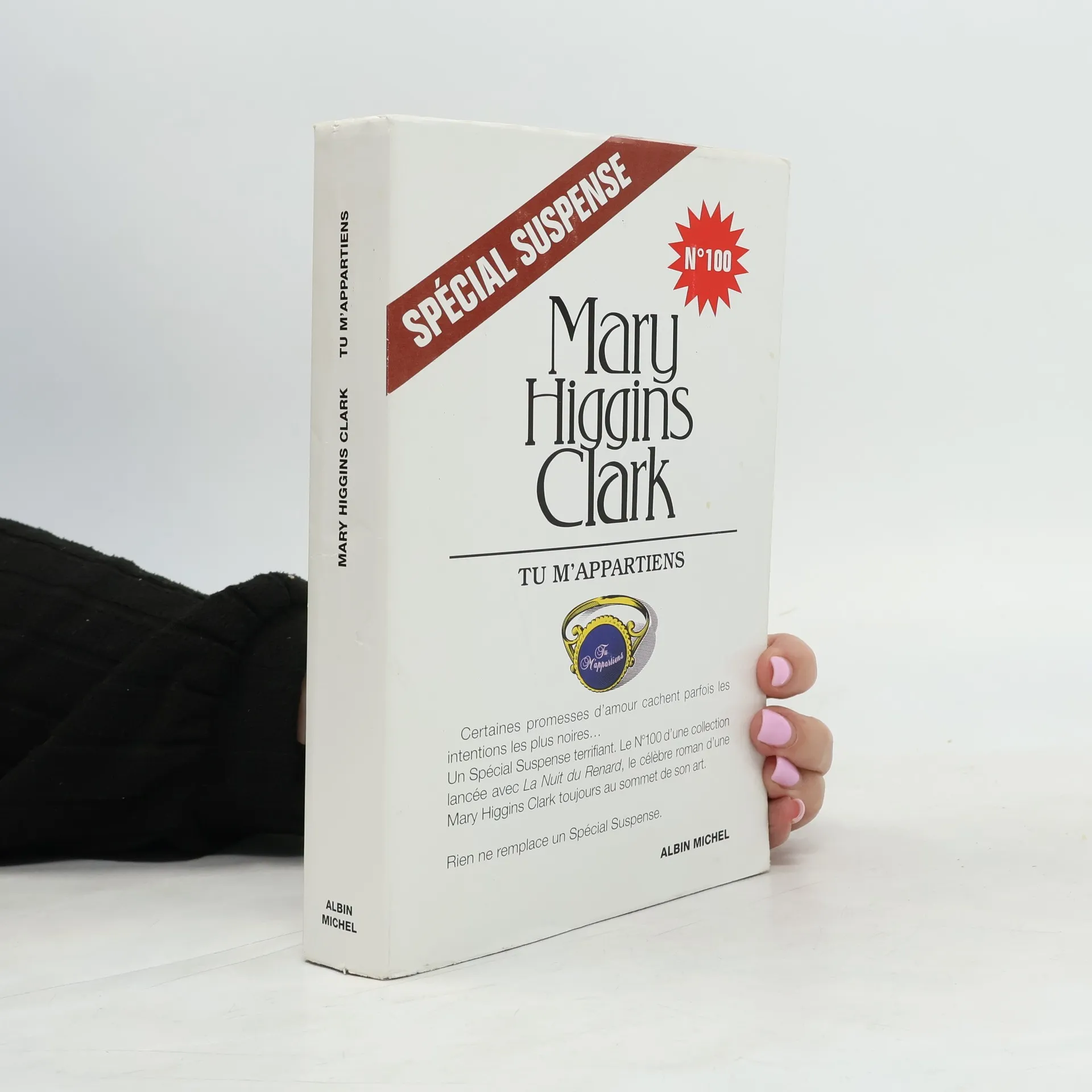 Certaines promesses d'amour cachent parfois les intentions les plus noires... Un spécial suspense terrifiant. Le N° 100 d'une collection lancée avec la Nuit du Renard, le célèbre roman d'une Mary Higgins Clark toujours au sommet de son art. Susan Chandler s'est bâti une solide réputation de psychologue. Notamment grâce à l'émission qu'elle anime sur une radio de New YorK. Mais rien ne la prépare aux dangers les plus extrêmes. Surtout pas à ceux que lui réserve l'enquête dans laquelle elle va devoir se lancer après avoir invité l'auteur d'un livre sur les mystérieuses disparitions de plusieurs femmes. Elle n'imagine pas qu'elle vient de mettre le doigt dans un terrible engrenage. Ni qu'elle va affronter la folie d'un psychopathe qui offre à ces futures victimes une bague où sont gravés les mots " tu m'appartiens ". En nous entraînant sur les traces d'un redoutable et insoupçonnable " serial killer ". Mary Higgins Clark prouve une fois encore toute sa maîtrise. Cette course poursuite d'une femme contre la mort est sans doute l'un des titres - le 100e Spécial suspense ! - qui marqueront la collection. Epoustouflant, implacable, un nouveau chef-d'œuvre du suspense qui vous surprendra.
