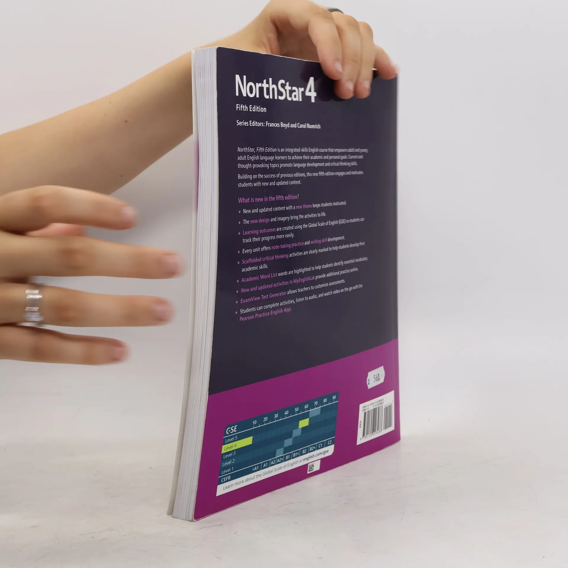 NorthStar , Fifth Edition is an integrated-skills English course that empowers adult and young adult English language learners to achieve their academic and personal goals. Current and thought-provoking topics promote language development and critical thinking skills. Building on the success of previous editions, this new fifth edition engages and motivates students with new and updated content. What is new in the fifth edition? • New and updated content with a new theme keeps students motivated. • The new design and imagery bring the activities to life. • Learning outcomes are created using the Global Scale of English (GSE) so students can see their progress more easily. • Every unit offers note-taking practice and writing skill development. • Scaffolded critical thinking activities are clearly marked to help students develop their academic skills. • Academic Word List words are highlighted to help students identify essential vocabulary. • New and updated activities in MyEnglishLab provide additional practice online. • ExamView Test Generator allows teachers to customize assessments. • Students can complete activities, listen to audio, and watch video on the go with the Pearson Practice English App.