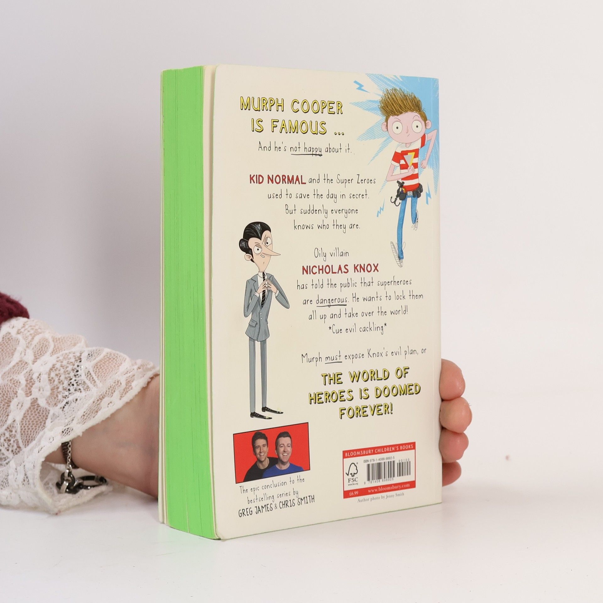 _______________The epic conclusion to the laugh-out-loud funny Kid Normal series for readers aged 8+, from radio stars Greg James and Chris Smith_______________Praise for Kid Normal:'So funny, it's almost criminal' - Independent'Outrageous capers' - Guardian_______________Murph Cooper is famous ... and he's not happy about it.Kid Normal and the Super Zeroes used to save the day in secret. But suddenly everyone knows who they are.Oily villain Nicholas Knox has told the public that superheroes are dangerous. He wants to lock them all up and take over the world! *Cue evil cackling*Murph must expose Knox's evil plan, or the world of heroes is doomed forever!