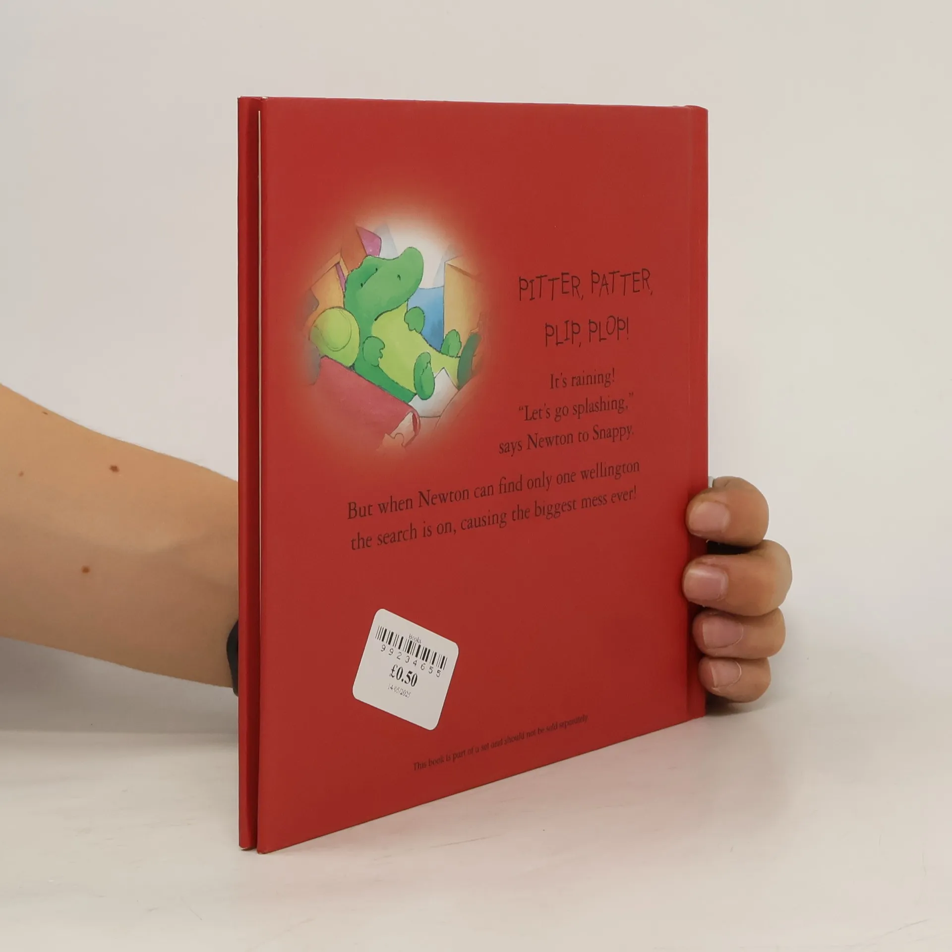 Pitter, patter, plip, plop! It's raining! 'Let's go splashing, ' says Newton to Snappy. But when Newton can find only one wellington the search is on, causing the biggest mess ever