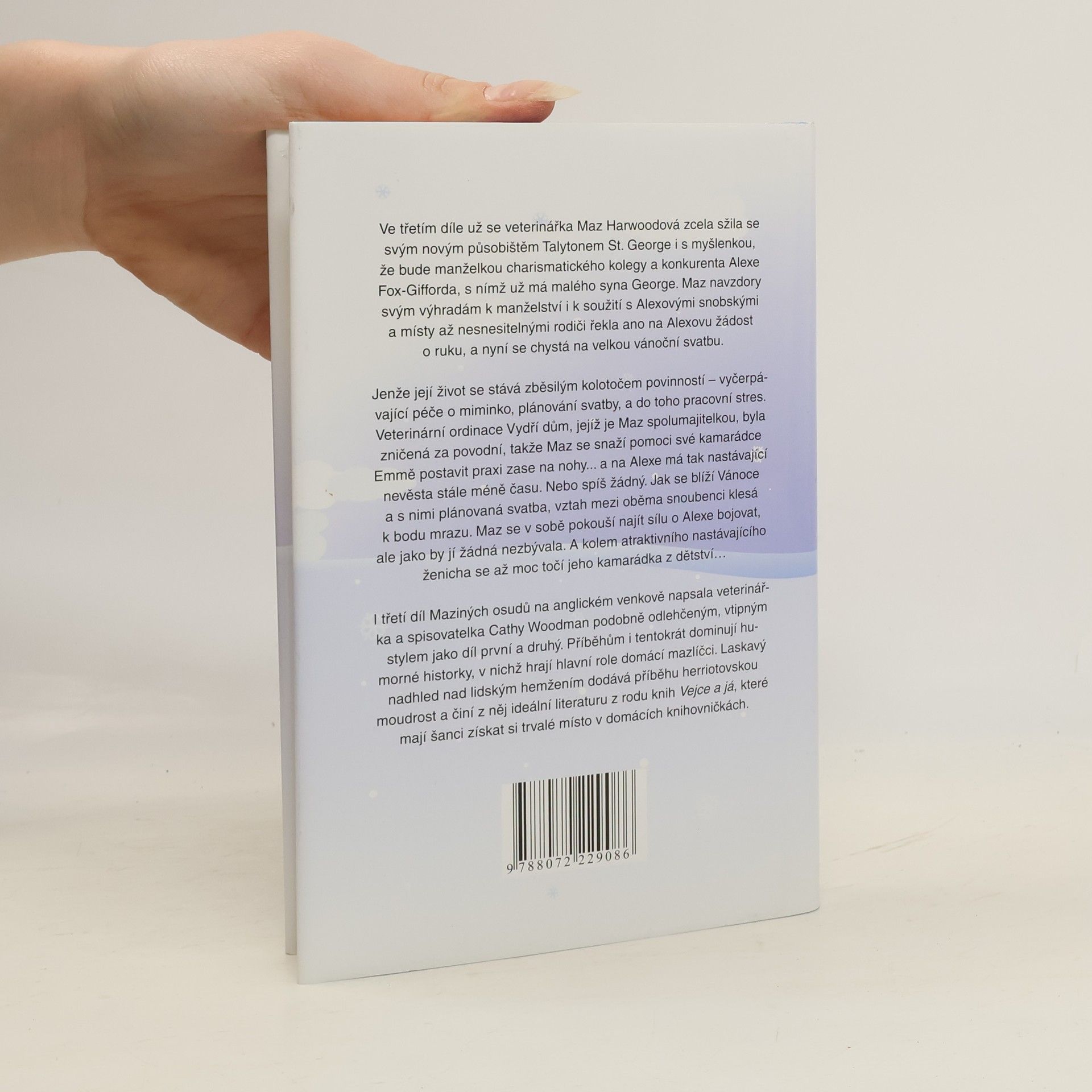 Ve třetím díle se veterinářka Maz Harwoodová plně adaptovala na své nové prostředí v Talytonu St. George a na roli snoubenky charismatického kolegy Alexe Fox-Gifforda, se kterým má syna George. Přes své pochybnosti o manželství a soužití s Alexovými náročnými rodiči řekla ano na jeho žádost o ruku a chystá se na velkou vánoční svatbu. Její život se však stává chaotickým kolotočem povinností – péče o miminko, plánování svatby a pracovní stres. Veterinární ordinace, kterou spoluvlastní, byla zničena povodní, a Maz se snaží pomoci kamarádce Emmě obnovit praxi, což jí bere čas na Alexe. Jak se blíží Vánoce a s nimi svatba, vztah mezi snoubenci se ochlazuje. Maz se snaží najít sílu o Alexe bojovat, ale zdá se, že jí žádná nezbývá. K tomu se kolem Alexe motá jeho kamarádka z dětství. Třetí díl Maziných osudů v anglickém venkově je psán odlehčeným a vtipným stylem, který dominují humorné příběhy se zvířaty. Příběh nese laskavý nadhled, který dodává herriotovskou moudrost a činí z něj ideální literaturu pro domácí knihovny.