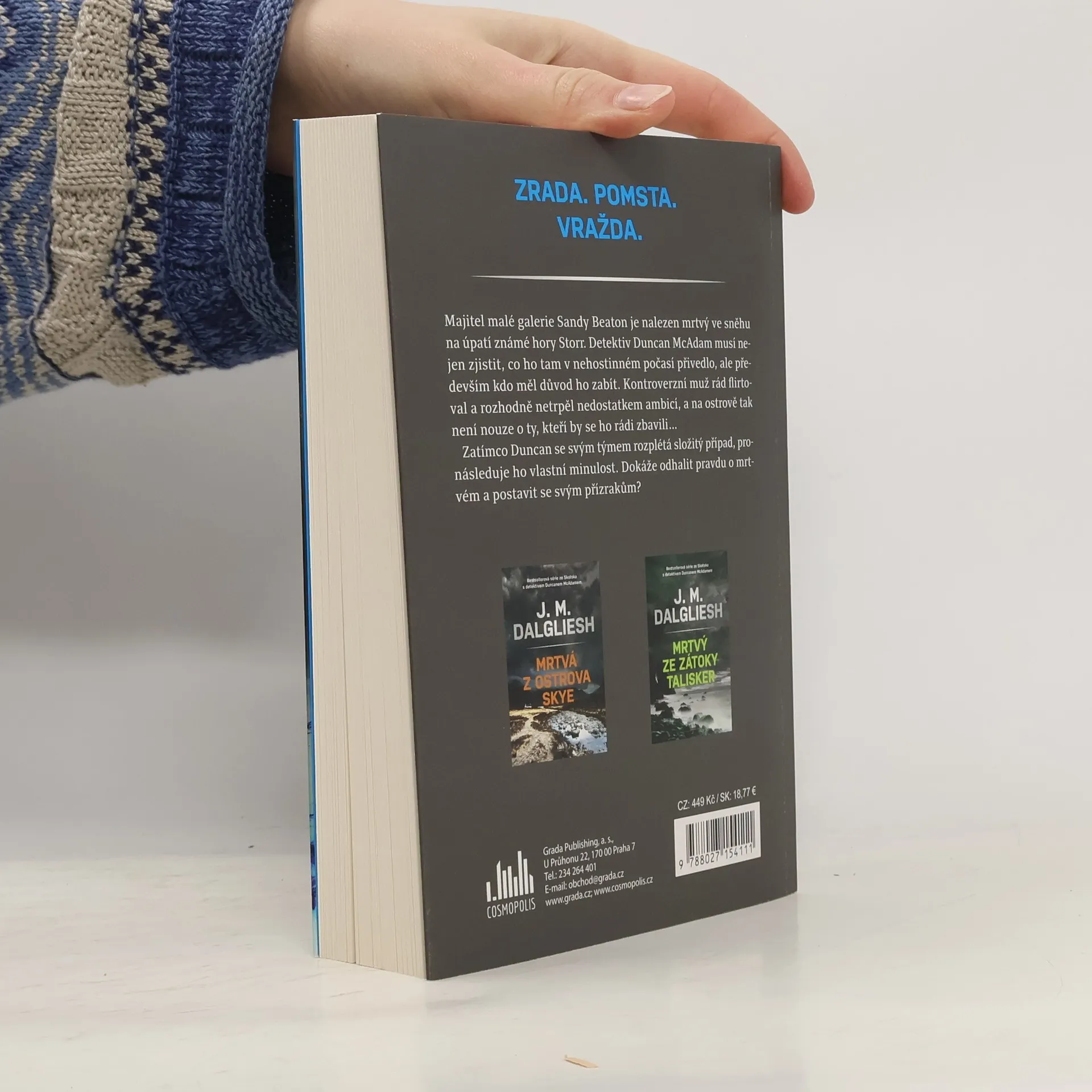 Majitel malé galerie Sandy Beaton je nalezen mrtvý ve sněhu na úpatí známé hory Storr. Detektiv Duncan McAdam musí nejen zjistit, co ho tam v nehostinném počasí přivedlo, ale především kdo měl důvod ho zabít. Kontroverzní muž rád flirtoval a rozhodně netrpěl nedostatkem ambicí, a na ostrově tak není nouze o ty, kteří by se ho rádi zbavili… Zatímco Duncan rozplétá složitý případ, pronásleduje ho vlastní minulost. Dokáže odhalit pravdu o mrtvém a postavit se svým přízrakům?