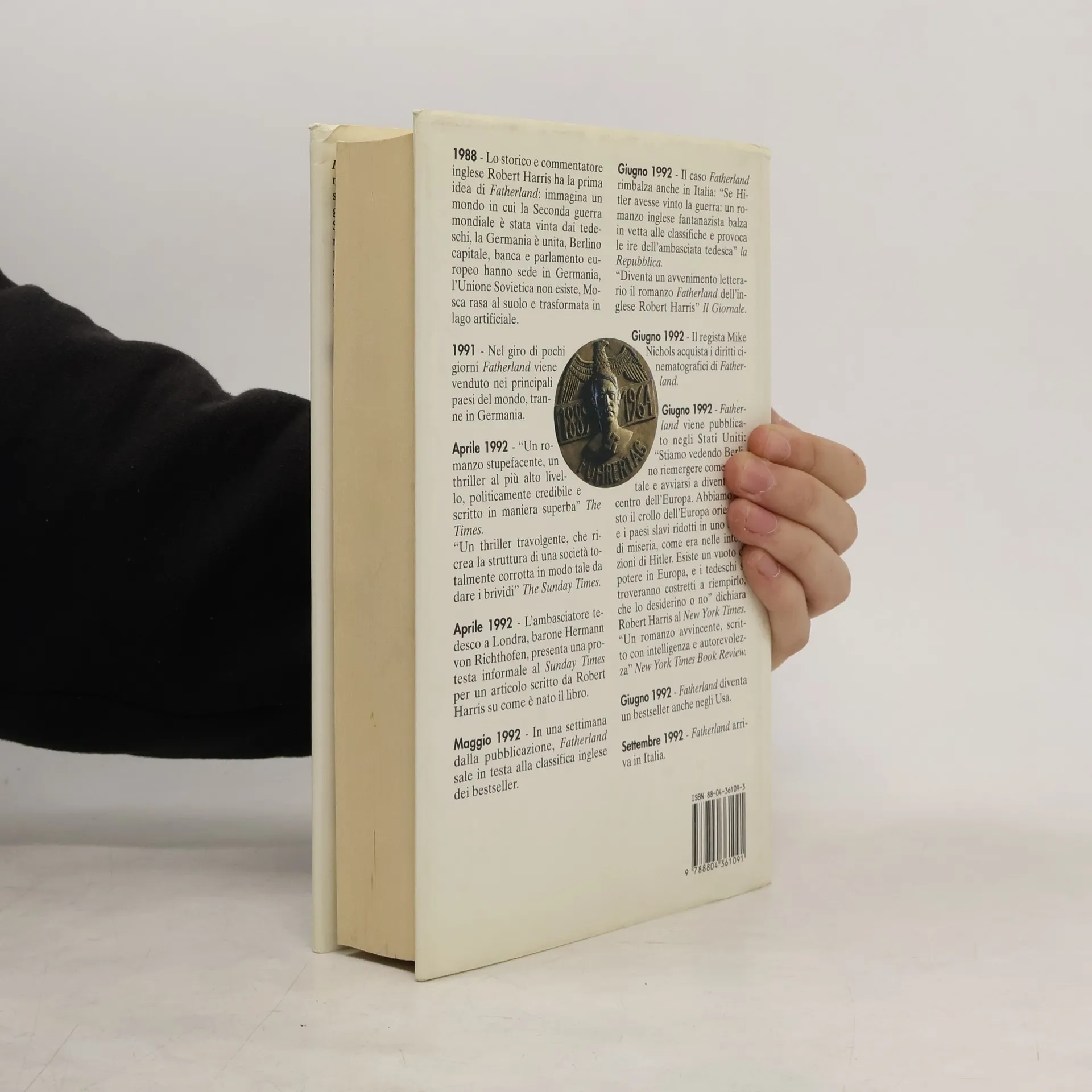 Fatherland è ambientato in un mondo che non è mai esistito ma che fu sul punto di esistere: la Berlino che Albert Speer aveva progettato per Hitler. Siamo nel 1964: la Germania ha vinto la guerra, l'Impero tedesco si estende dal Reno agli Urali, Hitler sta per compiere 75 anni, e il presidente americano Joseph Kennedy annuncia una visita a Berlino per negoziare la distensione. Ma l'Impero scricchiola: disillusione negli ideali del Partito, irrequietudine delle minoranze, violenza, corruzione. In una fredda mattina di aprile, il corpo di un gerarca nazista affiora da un lago negli eleganti sobborghi residenziali. Delitto o morte accidentale? A indagare sul caso è Xavier March della polizia criminale di Berlino: un brillante investigatore, senza simpatie politiche ma fortemente motivato dal bisogno di conoscere meglio la società in cui vive. Comincia così, con un'indagine destinata a portare lontano e a tenere incollato il lettore dalla prima all'ultima pagina, uno dei più originali e affascinanti romanzi di suspence degli ultimi anni. Già diventato evento internazionale, Fatherland ha istantaneamente proiettato Robert Harris nel ristretto gruppo di autori, da Forsyth a le Carré, che hanno ridefinito e ampliato i confini del thriller.