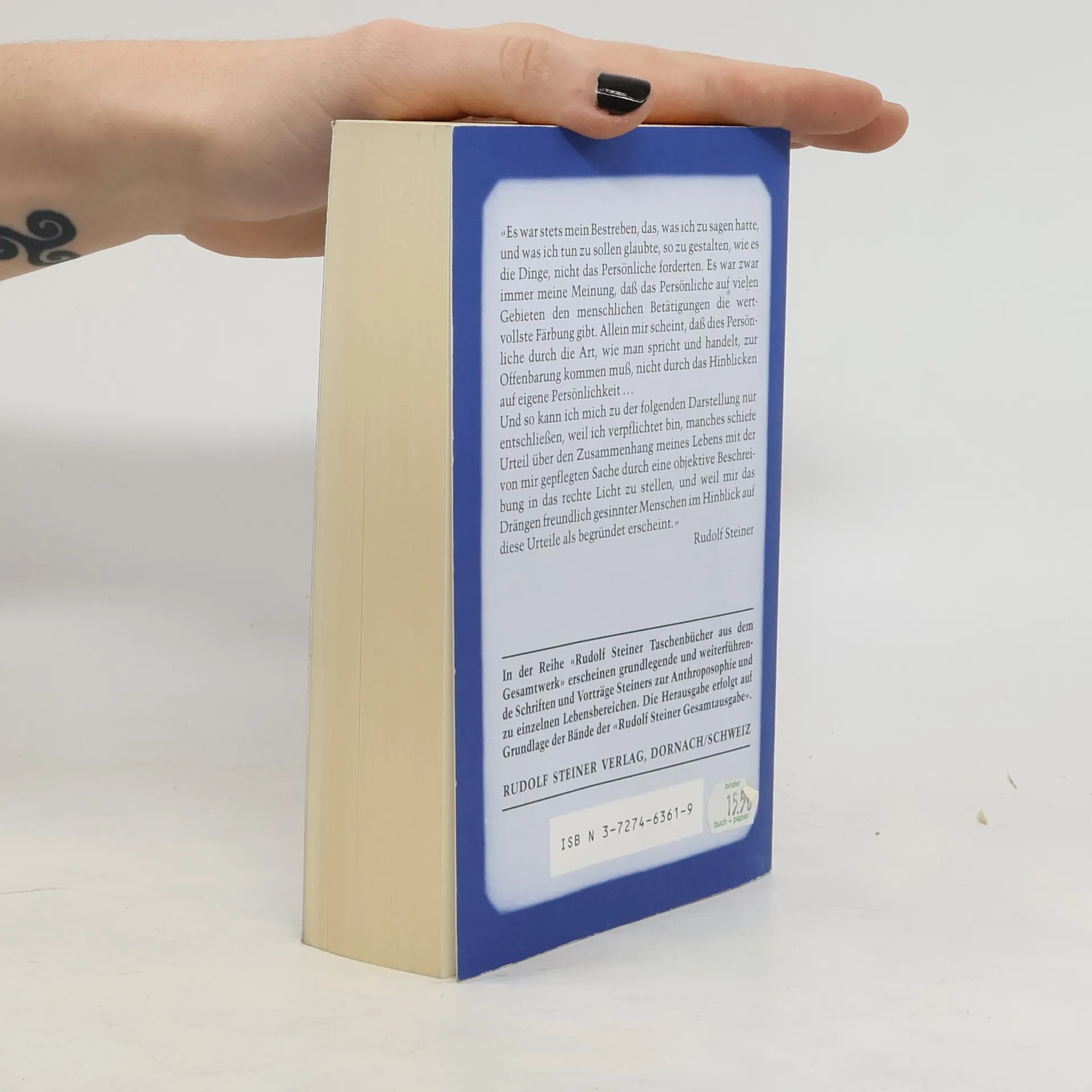 Die unvollendet gebliebene Autobiographie Rudolf Steiners, in welcher der Zusammenhang seines Lebens mit der Entstehung der Anthroposophie sichtbar wird. Steiner beschreibt in ihr seine Jugend-und Studienzeit in Österreich; die intensive Beschäftigung mit dem Werk und der Anschauungsweise Goethes, seine Herausgabetätigkeit für Goethes naturwissenschaftliches Werk, durch welche er nach Weimar geführt wird; das Eintauchen in die kulturellen Zeitströmungen im Berlin der Jahrhundertwende und schließlich das Eintreten für die anthroposophisch orientierte Geisteswissenschaft. Das Werk führt bis zum Jahre 1907, dem 46. Lebensjahr Steiners. Sein Tod (30. März 1925) verhinderte den Abschluß der Darstellungen. Mit zahlreichen Abbildungen und Handschriftenwiedergaben, sowie ausführlichen Hinweisen und Personenregister und einer Chronik.