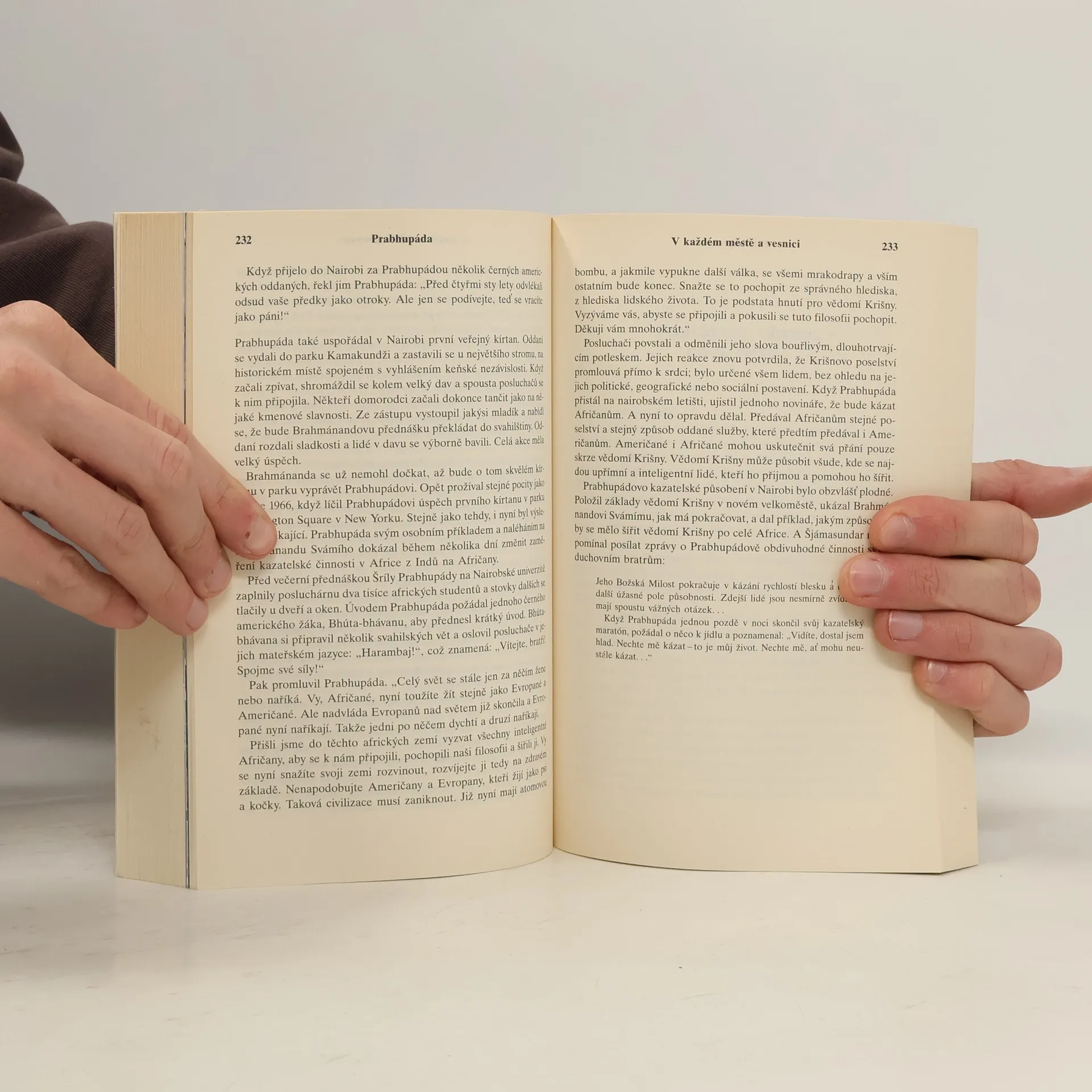 Tato působivá kniha Satsvarúpy dáse Gósvámího velice poutavě hovoří o životě a učení zcela neobyčejného světce, učence a duchovního učitele moderní doby – A.Č. Bhaktivédanty Svámího Prabhupády. Hnutí, které založil, je známo prakticky po celém světě, ale sám jako osobnost zůstal bez vlastních ambicí pouze v pozadí. Když Šríla Prabhupáda poprvé potkal svého duchovního učitele, Bhaktisiddhántu Sarasvatího Gósvámího, ihned jím byl požádán, aby rozšiřoval učení Čaitanji Maháprabhua v anglickém jazyce. To, čeho Bhaktivédanta Svámí později dosáhl, pak překvapilo celý svět. V posledních deseti letech svého života, navzdory pokročilému věku, kdy většina lidí myslí už jen na odpočinek, dvanáctkrát procestoval celou zeměkouli, aby ku prospěchu všech lidí předal celému světu poklad védské moudrosti i kultury. Ať už z pohledu sociologického, filozofického nebo náboženského studia je životní příběh Šríly Prabhupády jedinečným příspěvkem celému lidstvu. Čtenáře překvapí osobní vlastnosti Šríly Prabhupády – jeho cílevědomost, opravdová pokora a hluboká duchovnost… Život Šríly Prabhupády, jak je zde představen, je ztělesněním ideálu, který předložil k následování i všem ostatním. Ve věku všudypřítomného pokrytectví a cynizmu je to právě takový druh vzácného příkladu, který potřebujeme.