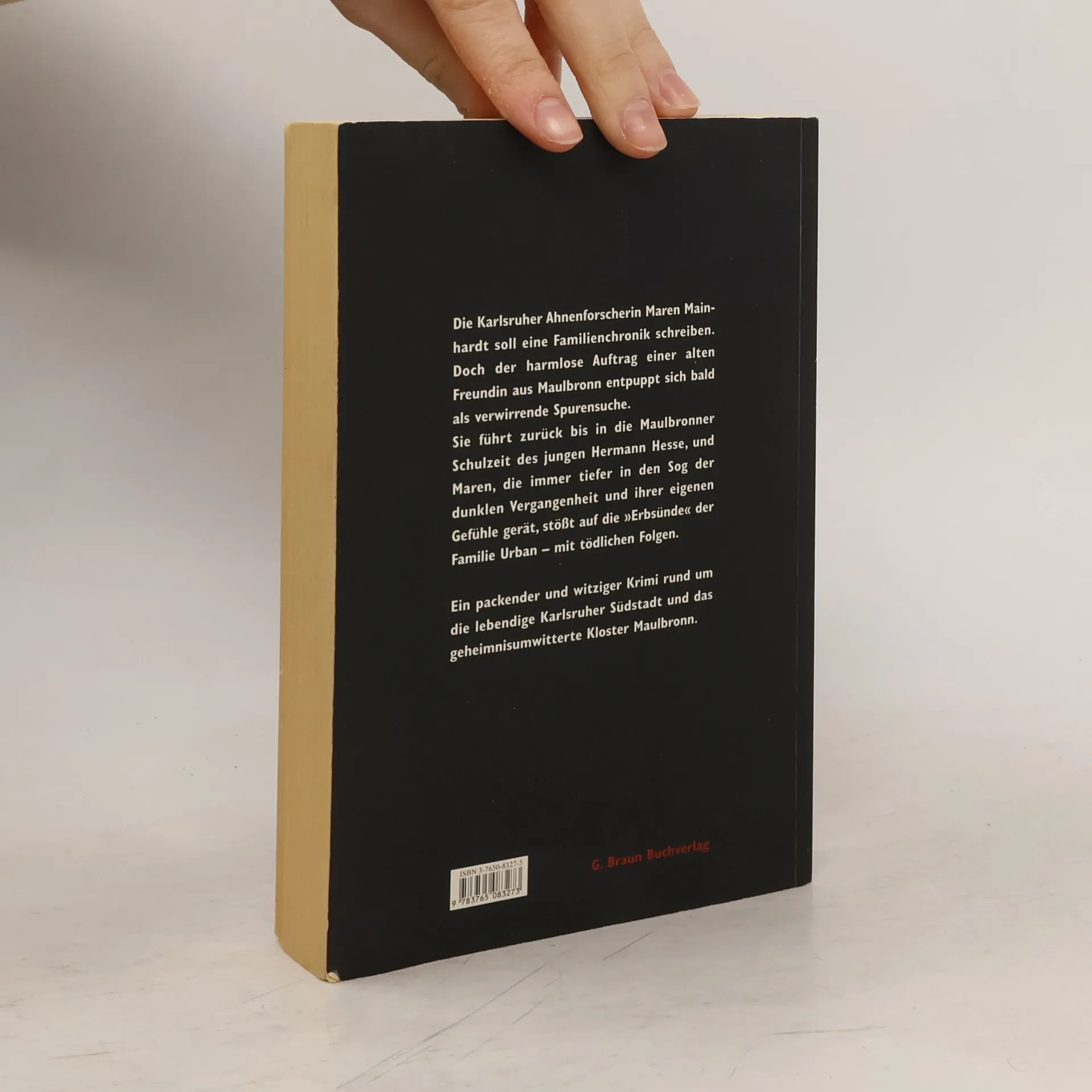 Maren Mainhardt - Karlsruher Ahnenforscherin - soll eine Familienchronik schreiben. Dieser harmlose Auftrag einer alten Freundin aus Maulbronn entpuppt sich jedoch bald als verwirrende Spurensuche. Sie führt zurück bis in die Maulbronner Schulzeit des jungen Hermann Hesse und Maren stößt auf die "Erbsünde" der Familie Urban - mit tödlichen Folgen.Ein packender und witziger Krimi rund um die lebendige Karlsruher Südstadt und das geheimnisumwitterte Kloster Maulbronn.