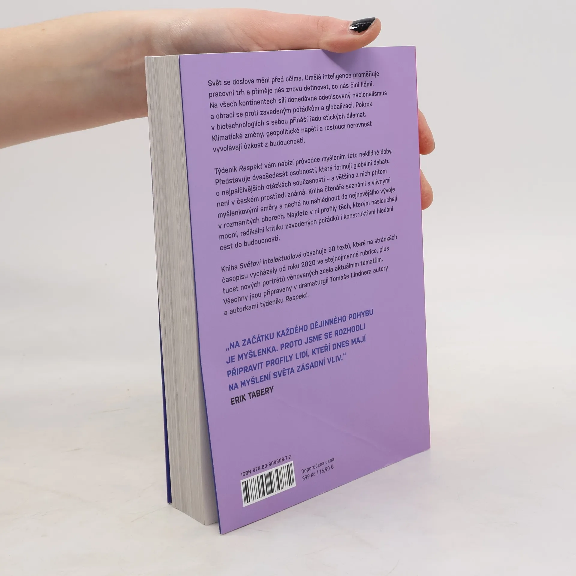 Svět se doslova mění před očima. Umělá inteligence proměňuje pracovní trh a přiměje nás znovu definovat, co nás činí lidmi. Na všech kontinentech sílí donedávna odepisovaný nacionalismus a obrací se proti zavedeným pořádkům a globalizaci. Pokrok v biotechnologiích s sebou přináší řadu etických dilemat. Klimatické změny, geopolitické napětí a rostoucí nerovnost vyvolávají úzkost z budoucnosti.Týdeník Respekt vám nabízí průvodce myšlením této neklidné doby. Představuje dvaašedesát osobností, které formují globální debatu o nejpalčivějších otázkách současnosti – a většina z nich přitom není v českém prostředí známá. Kniha čtenáře seznámí s vlivnými myšlenkovými směry a nechá ho nahlédnout do nejnovějšího vývoje v rozmanitých oborech. Najdete v ní profily těch, kterým naslouchají mocní, radikální kritiku zavedených pořádků i konstruktivní hledání cest do budoucnosti.Kniha Světoví intelektuálové obsahuje 50 textů, které na stránkách časopisu vycházely od roku 2021 ve stejnojmenné rubrice, plus tucet nových portrétů věnovaných zcela aktuálním tématům. Všechny jsou připraveny v dramaturgii Tomáše Lindnera autory a autorkami týdeníku Respekt.