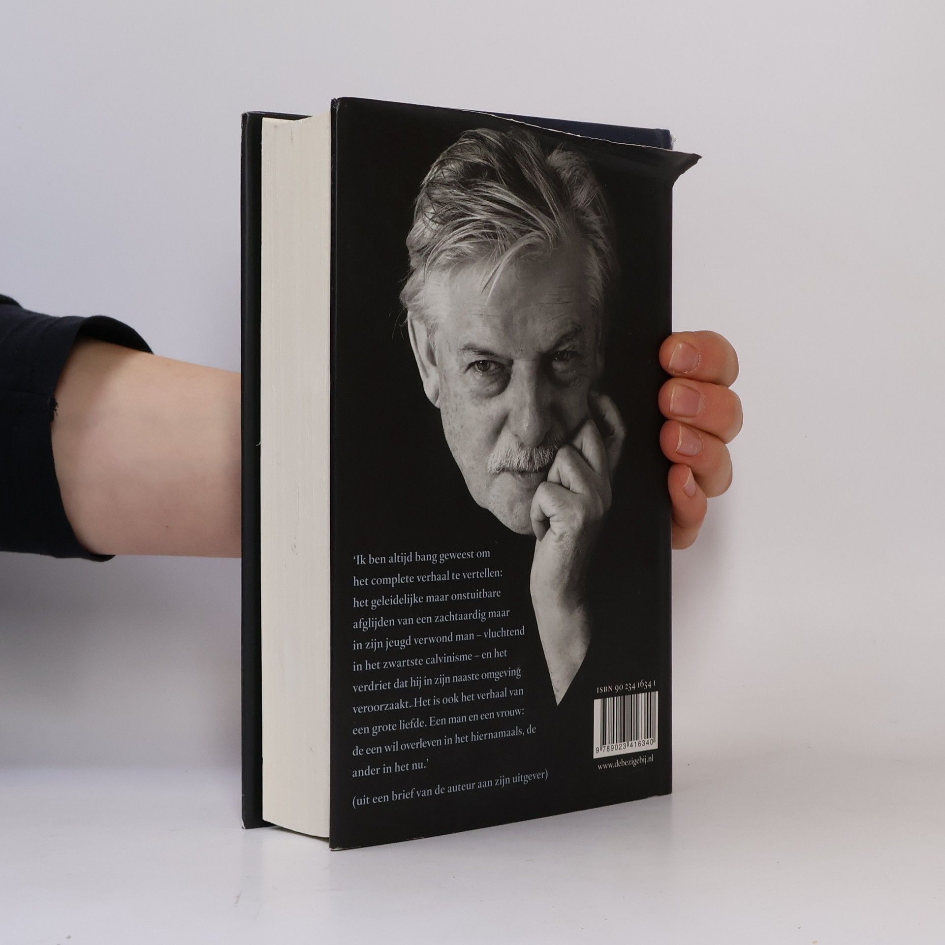 ´Ik ben altijd bang geweest om het complete verhaal te vertellen: het geleidelijke maar onstuitbare afglijden van een zachtaardig maar in zijn jeugd verwond man - vluchtend in het zwartste calvinisme - én het verdriet dat hij in zijn naaste omgeving veroorzaakt. Het is ook het verhaal van een grote liefde. Een man en een vrouw: de een wil overleven in het hiernamaals, de ander in het nu.´ (uit een brief van de auteur aan zijn uitgever) Bron: website auteur