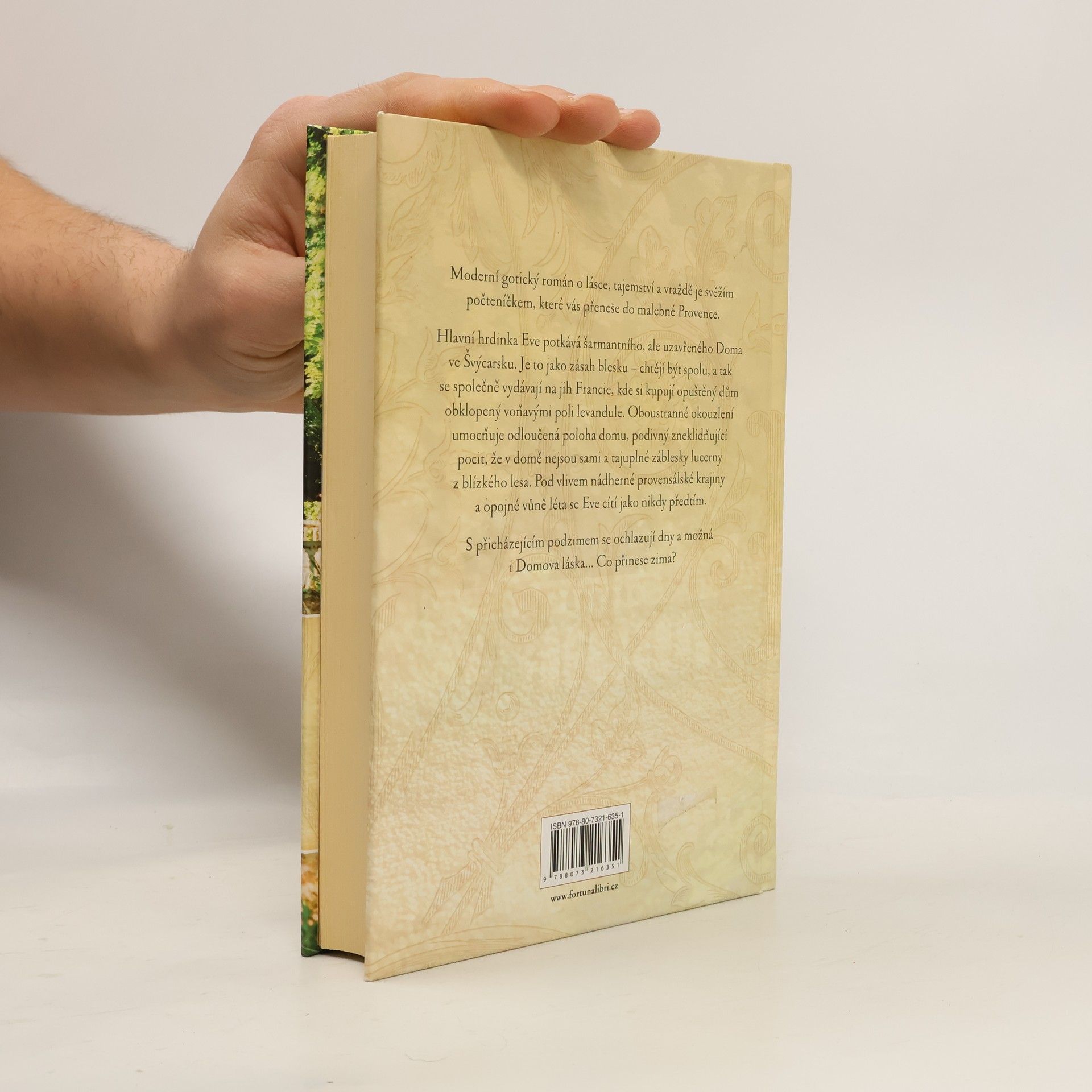 Moderní gotický román o lásce, tajemství a vraždě je svěžím počteníčkem, které vás přenese do malebné Provence. Hlavní hrdinka Eve potkává šarmantního, ale uzavřeného Dona ve Švýcarsku. Je to jako zásah blesku-chtějí být spolu, a tak se společně vydávají na jih Francie, kde si kupují opuštěný dům obklopený voňavými poli levandule. Oboustranné okouzlení umocňuje odloučená poloha domu, podivný zneklidňující pocit, že v domě nejsou sami a tajuplné záblesky lucerny z blízkého lesa. Pod vlivem nádherné provensálské krajiny a opojné vůně léta se Eve cítí jako nikdy předtím. S přícházejícím podzimem se ochlazují dny a možná i Domova láska... Co přinese zima?