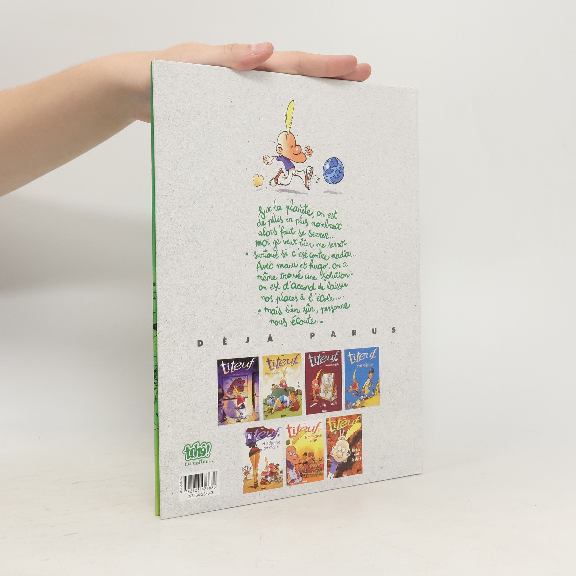 Sur la planète, on est de plus en plus nombreux, alors il faut se serrer... Moi, je veux bien me serrer, surtout si c'est contre Nadia... Avec Manu et Hugo, on a même trouvé une solution : on est d'accord pour laisser nos places à l'école... Mais bien sûr, personne ne nous écoute...Avec ce sixième volume, Titeuf continue sa découverte du monde et de ses secrets : les drôles de vêtements des filles, Supermégakillgore 3 sur la Game Boy à Manu, les piercings de la sœur à Vomito et, bien entendu, les réactions incompréhensibles des grandes personnes... Personnage incontournable de la bande dessinée de cette fin de siècle, Titeuf est un philosophe en culottes courtes dont chaque vérité est un gag irrésistible.