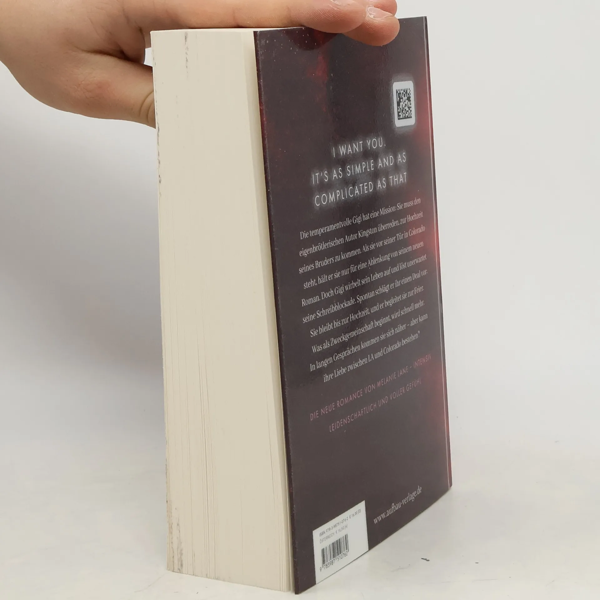 I want you. It's as simple and as complicated as that. Die temperamentvolle Gigi hat eine Mission: Sie muss den eigenbrötlerischen Autor Kingston überreden, zur Hochzeit seines Bruders zu kommen. Doch als sie vor seiner Tür in Colorado steht, hält er sie nur für eine Ablenkung von seinem neuen Roman. Doch Gigi wirbelt sein Leben auf und löst unerwartet seine Schreibblockade. Spontan schlägt er ihr einen Deal vor: Sie bleibt bis zur Hochzeit, und er begleitet sie zur Feier. Was als Zweckgemeinschaft beginnt, wird schnell mehr. In langen Gesprächen kommen sie sich näher – doch kann ihre Liebe zwischen LA und Colorado bestehen? Die neue Romance von Melanie Lane – intensiv, leidenschaftlich und voller Gefühl