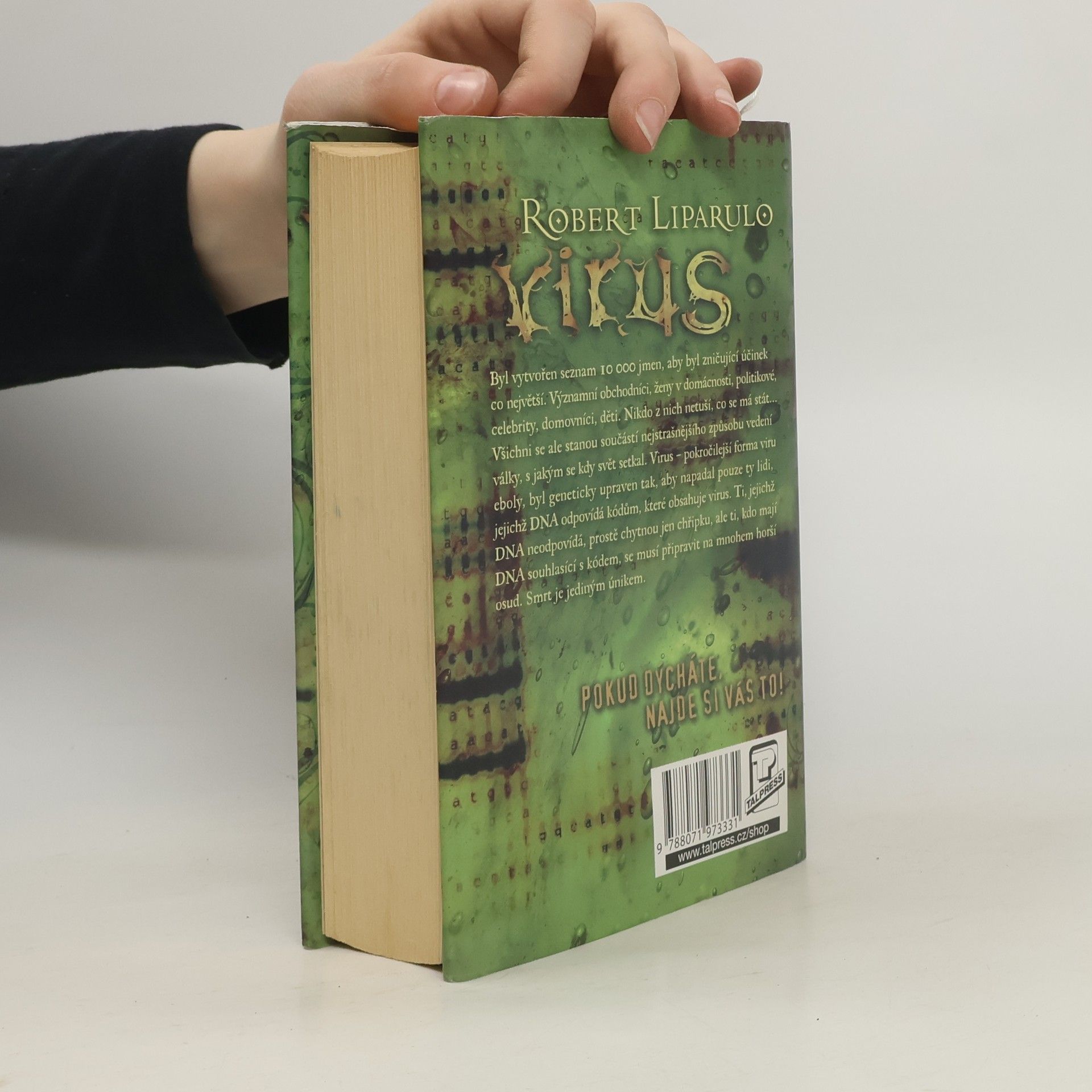 Tento strhující thriller je důstojným pokračovatelem vysoce ceněného debutu Roberta Liparula, románu Comes a Horseman (Jezdec přichází, Talpress 2007). Je to okouzlující horská dráha, na které vám bude bušit srdce a budete nervózně přemýšlet, kde končí skutečnost a kde začíná smyšlenka. Virus Roberta Liparula popisuje scénář tak děsivě reálný, že se šest hollywoodských producentů začalo ucházet o filmová práva ještě předtím, než byl román dokončen.