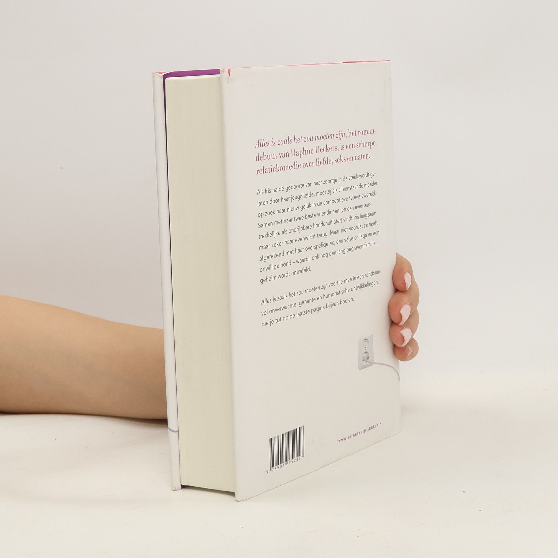Alles is zoals het zou moeten zijn is het enerverende en humoristische romandebuut van Daphne Deckers Iris Vandenberg heeft het prima voor elkaar. Ze is eindredacteur bij een hip productiebedrijf, de liefde van haar leven Pieter heeft een goedbetaalde baan als arts en als kers op de taart is haar droomwens om kinderen te krijgen in vervulling gegaan: ze is zwanger. Ineens wordt alles anders als Pieter haar vlak na de bevalling verlaat om met een jonge collega ontwikkelingswerk in Afrika te gaan doen. Daar zit ze, bijna dertig, in een te groot huis met een baby, een kwijlende hond, zwangerschapskilo’s en flinke concurrentie op haar werk. Met hulp van haar beste vriendinnen, haar moeder en een niet onaantrekkelijke hondenuitlater probeert ze zichzelf beetje bij beetje weer op het liefdespad te krijgen, maar dat gaat niet vanzelf…
