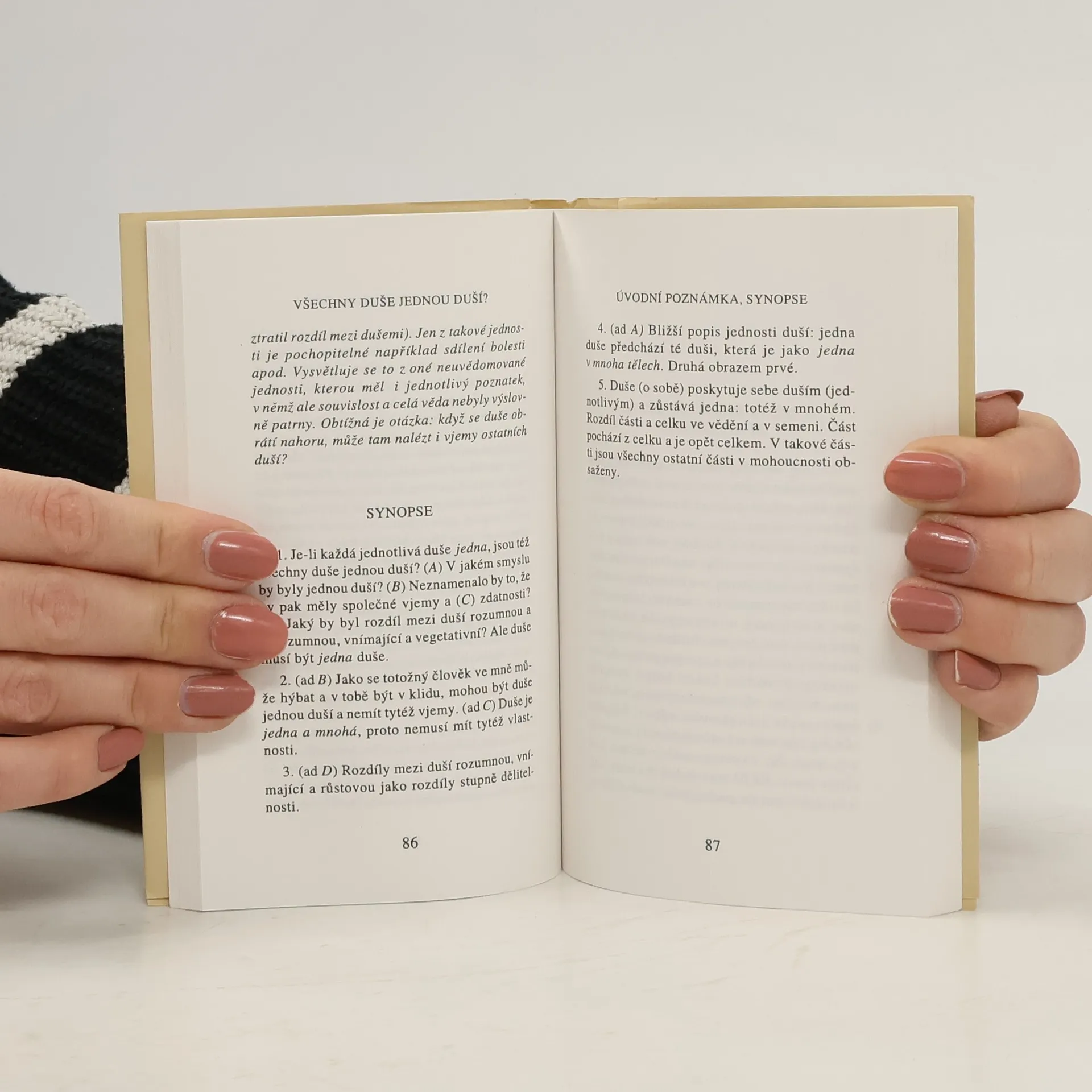 Řecko-český text. Výklad vztahu části duše, duše a těla a duší navzájem. Obsahuje následující čtyři pojednání: „O jsoucnosti duše I“ (Enn. IV 2), „O sestupu duše do těl“ (Enn. IV 8), „Zda jsou všechny duše jednou duší“ (Enn. V 9) a „Obtíže týkající se duše I“ (Enn. IV 3). Přeložil a poznámkami opatřil Petr Rezek.