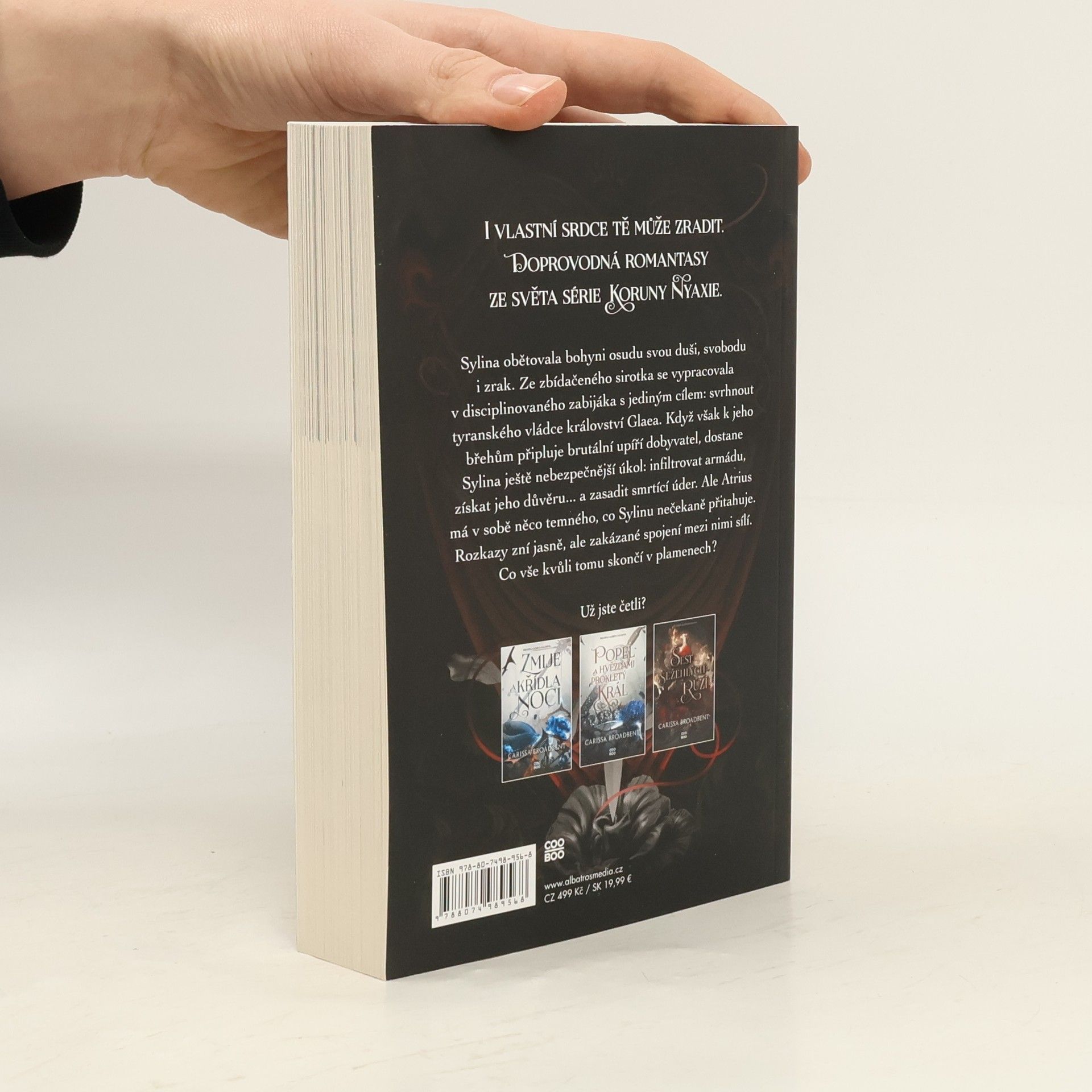 Sylina obětovala bohyni osudu svou duši, svobodu i zrak. Ze zbídačeného sirotka se vypracovala v disciplinovaného zabijáka s jediným cílem: svrhnout tyranského vládce království Glaea. Když však k jeho břehům připluje brutální upíří dobyvatel, dostane Sylina ještě nebezpečnější úkol: infiltrovat armádu, získat jeho důvěru... a zasadit smrtící úder. Ale Atrius má v sobě něco temného, co Sylinu nečekaně přitahuje. Rozkazy zní jasně, ale zakázané spojení mezi nimi sílí. Co vše kvůli tomu skončí v plamenech?