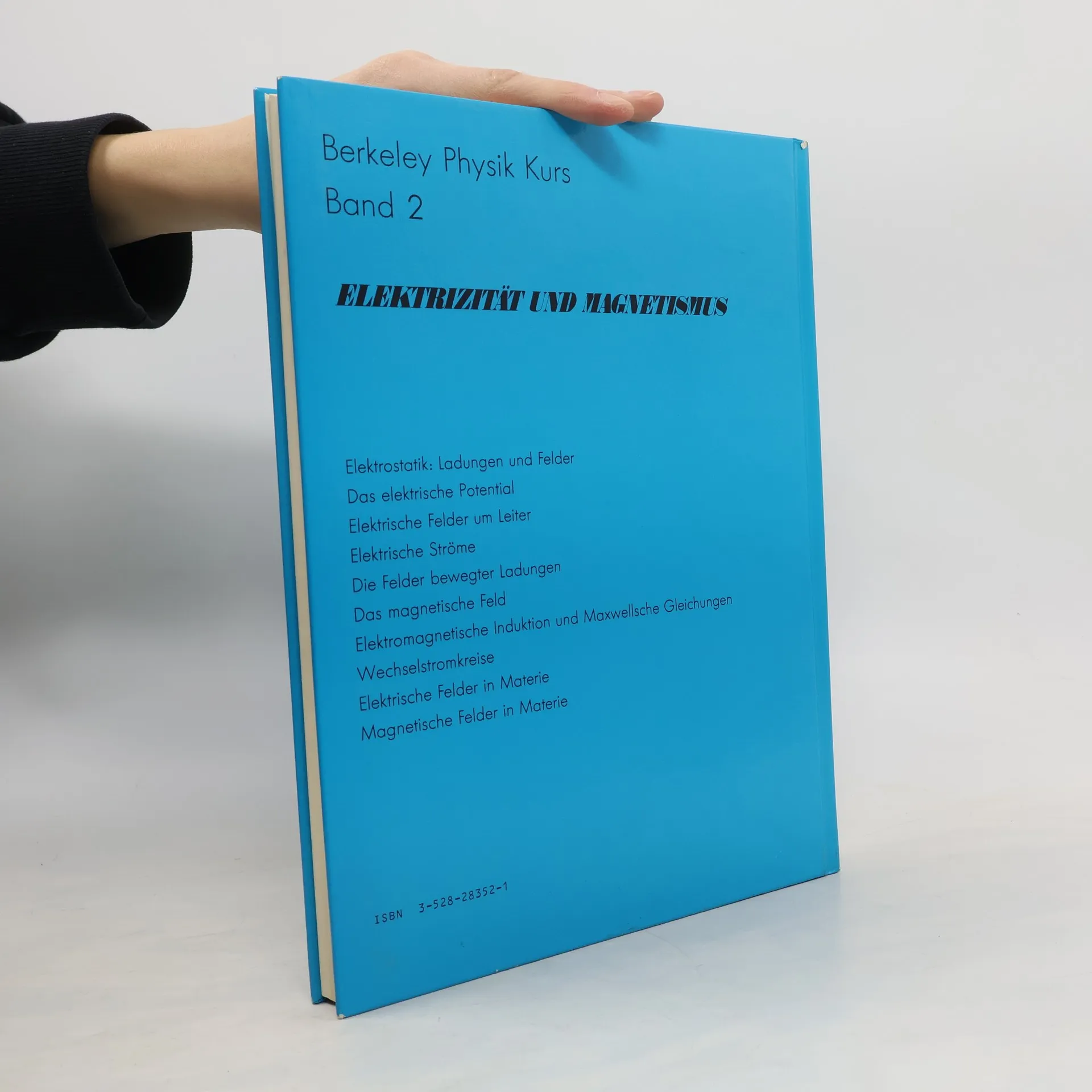 Berkeley Physik Kurs 2: Elektrizität und Magnetismus: Elektrostatik: Ladungen und Felder, elektr. Potential, elektr. Felder um Leiter, elektr. Ströme, Felder bewegter Ladungen, magnetische Felder, elektromagn. Induktion, Wechselstromkreise, Maxwell-Gleichung, elektromagn. Wellen, elektr. Felder in Materie, magnetische Felder in Materie.