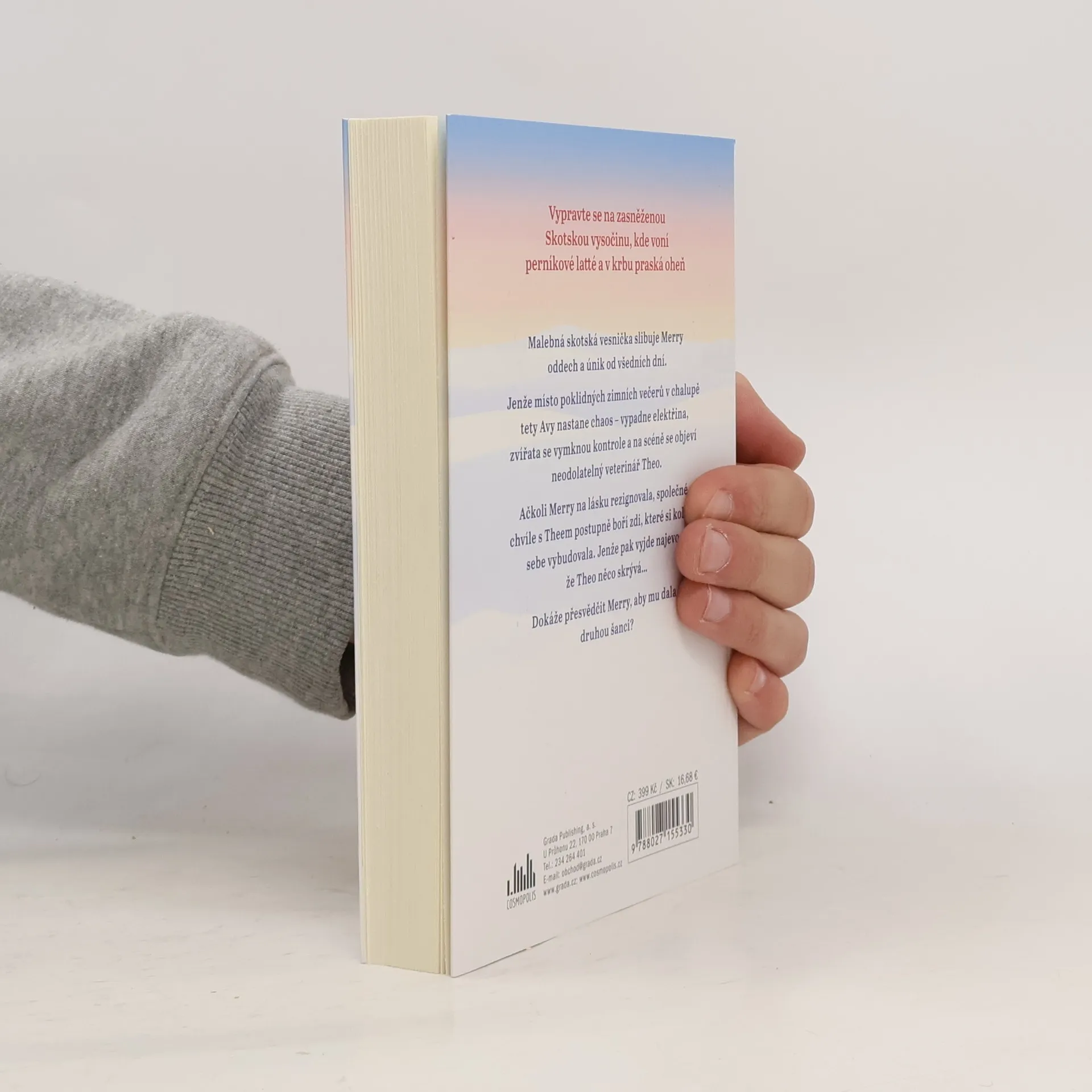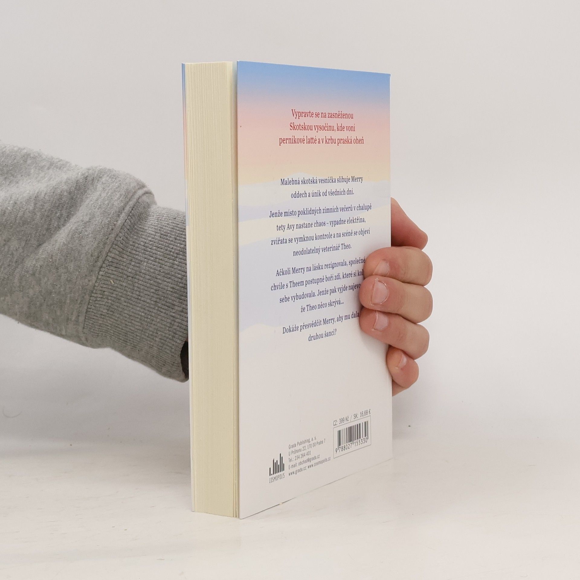 Zimní příběh plný humoru, emocí a vánoční pohody – ideální čtení s hrnkem horké čokolády. Zasněžená skotská vesnička slibuje Merry oddech a únik před zlomeným srdcem. Jenže místo poklidných zimních večerů v chalupě tety Avy nastane chaos – vypadne elektřina, zvířata se vymknou kontrole a na scéně se objeví neodolatelný veterinář Theo. Ačkoli Merry na lásku rezignovala, společné chvíle s Theem postupně boří zdi, které si kolem sebe vybudovala. Jenže pak vyjde najevo, že Theo něco skrývá… Dokáže přesvědčit Merry, aby mu dala druhou šanci?
