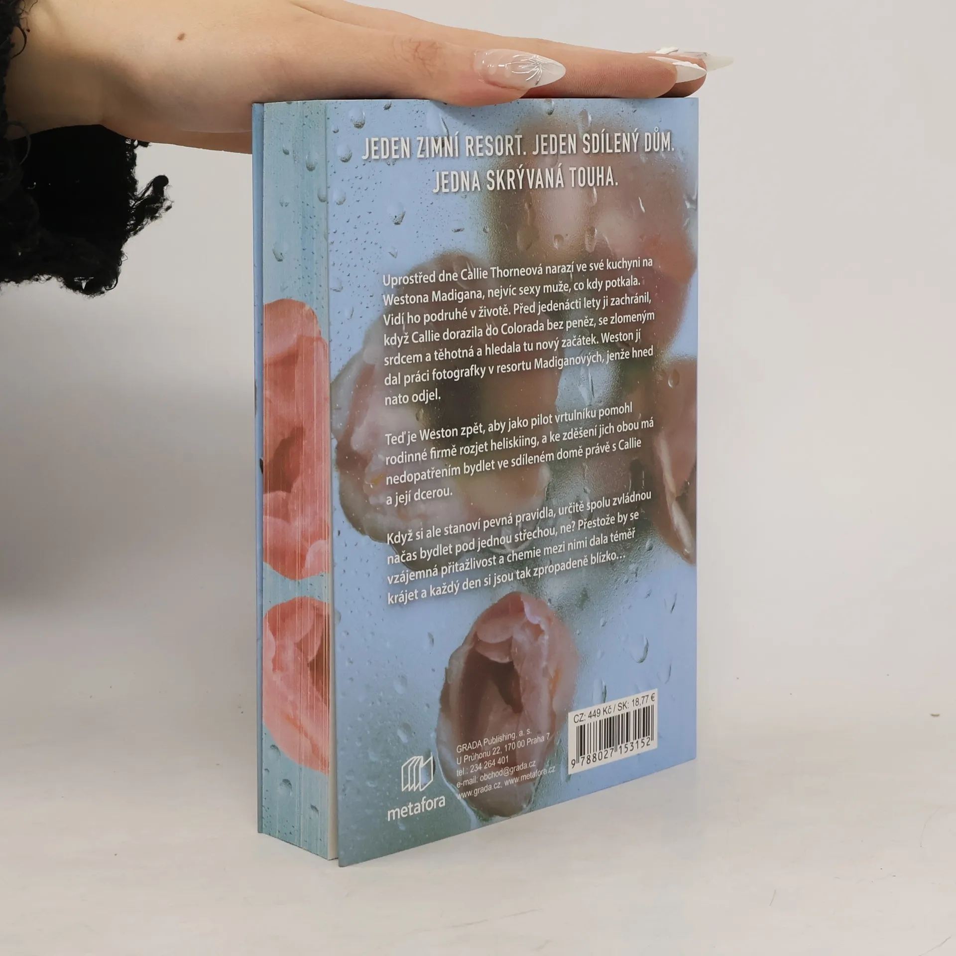 Když jsem poprvé potkala Westona Madigana, zachránil mě. Do Colorada jsem přišla za novým začátkem, bez dolaru v kapse, se zlomeným srdcem a těhotná. Weston mi dal práci fotografky v lyžařském středisku jeho rodiny a druhý den nato navždy odjel. Když ho po jedenácti letech spatřím podruhé, stojí v kuchyni mého domku pro zaměstnance okouzlující a od pasu nahoru nahý a opéká si slaninu k snídani. Vzhledem k šoku ve tvářích nás obou jsme ani jeden nečekali spolubydlícího, on dokonce rovnou dva. Mě a mou jedenáctiletou dceru. Nabručený pilot je zpět proto, aby nastartoval nový projekt v rodinném středisku – heliskiing pro klienty. Určitě zvládnu být jeho dočasná spolubydlící, ne? S několika jednoduchými pravidly by nemělo být těžké odolat té neuvěřitelné chemii, která mezi námi je. I vzhledem k tomu, že je to v podstatě chodící kakabus. No, možná kakabus, ale jeho oči říkají něco jiného. Hltá mě pohledem a já mám nutkavou potřebu se ho dotýkat. Kruci, je to ten nejzajímavější chlap na téhle planetě! Zvlášť když se baví s mojí jedenáctiletou dcerou, které tak pozorně naslouchá a která ho dokáže rozesmát. To pak vždycky rozesmějí i mě a veškerá zeď sebeovládání je pryč. Ach jo, vážně nevhodný čas i muž k zamilování. Ale tohle je jen dočasné poblouznění. Obyčejná touha. Nemůžu Westonovi propadnout. Ne-pro-pad-nu Westonovi. Jenže tohle pravidlo si fakt můžu strčit za klobouk, když jsme každý den tak blízko sebe...