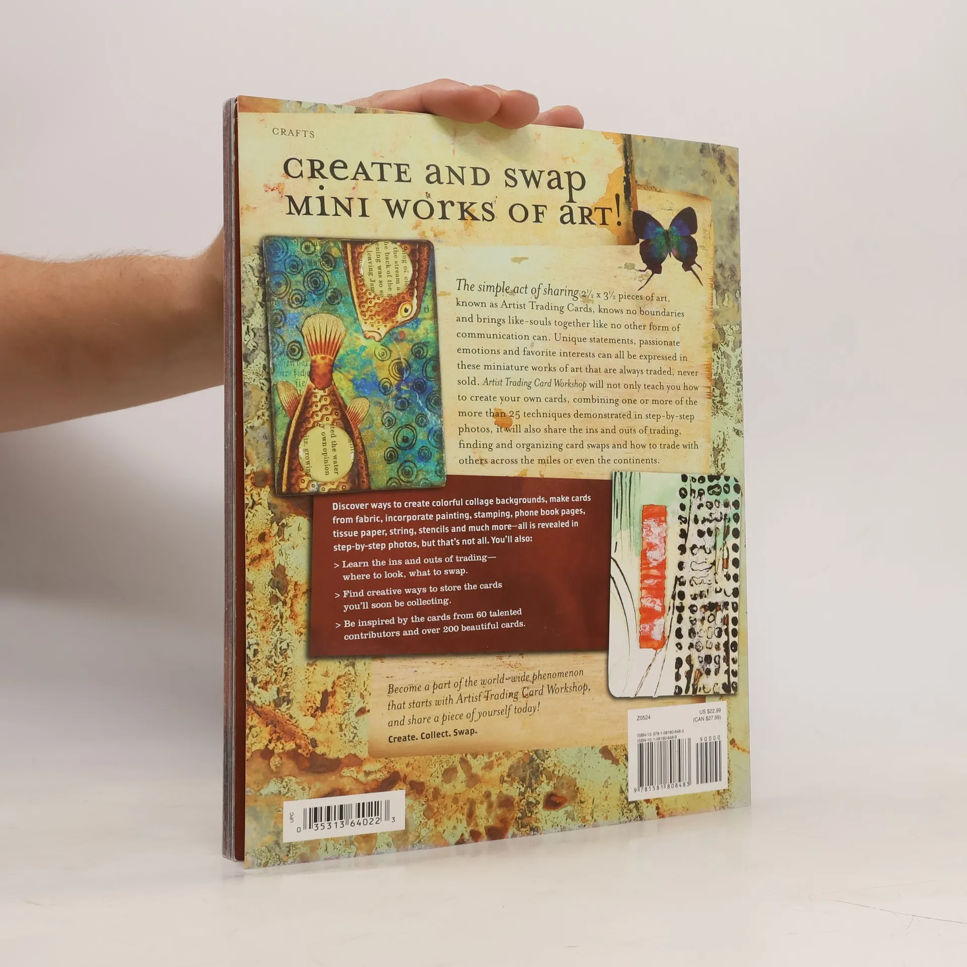 Create and swap mini works of art! The simple act of sharing 2½ x 3½ pieces of art, known as Artist Trading Cards, knows no boundaries and brings like-souls together like no other form of communication can. Unique statements, passionate emotions and favorite interests can all be expressed in these miniature works of art that are always traded, never sold. Artist Trading Cards Workshop will not only teach you how to create your own cards, combining one or more of the 25+ techniques demonstrated in step-by-step photos, it will also share the ins and outs of trading, finding and organizing card swaps and how to trade with others across the miles or even the continents. Discover ways to create colorful collage backgrounds, make cards from fabric, incorporate painting, stamping, phone book pages, tissue paper, string, stencils and much more—all is revealed in step-by-step photos, but that's not all. You'll also: Learn the ins and outs of trading—where to look, what to swap. Find creative ways to store the cards you'll soon be collecting. Be inspired by the cards from 60 talented contributors and over 200 beautiful cards. Become a part of the world-wide phenomenon that starts with Artist Trading Cards Workshop, and share a piece of yourself today! Create. Collect. Swap.