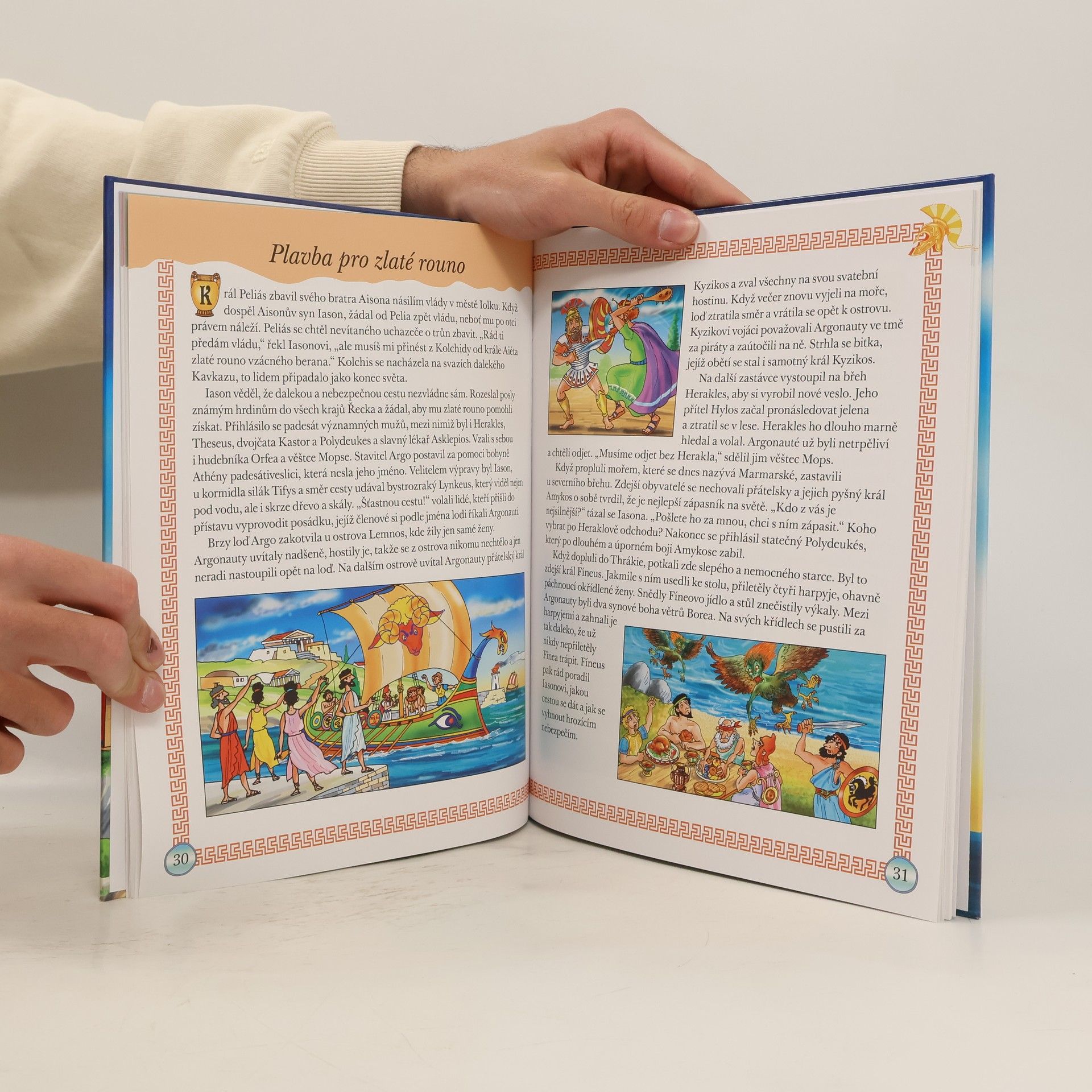 Řecké báje a pověsti patří mezi nejstarší příběhy na světě. Díky vyprávění se Řekové dozvídali mnohé o životě tak starých národů, jakými byli Babylóňané, Chetité a Egypťané. Příběhy sloužily jako inspirace básní, her a epických děl řeckým autorům, kteří žili před více než dvěma tisíci lety, a tvoří součást kulturního dědictví lidstva. Jsou plné odvážných hrdinů, mocných bohů i hrozných netvorů a odehrává se v nich řada bojů a slavných dobrodružství. Nádherné příběhy jsou citlivě převyprávěné, aby je malé děti mohly s porozuměním poslouchat a aby je starší už mohly samostatně číst. Krásně a nápaditě ilustrovaná kniha s jednoduchým textem a kouzelnými obrázky se jistě stane zdrojem zájmu a potěšení celé rodiny.