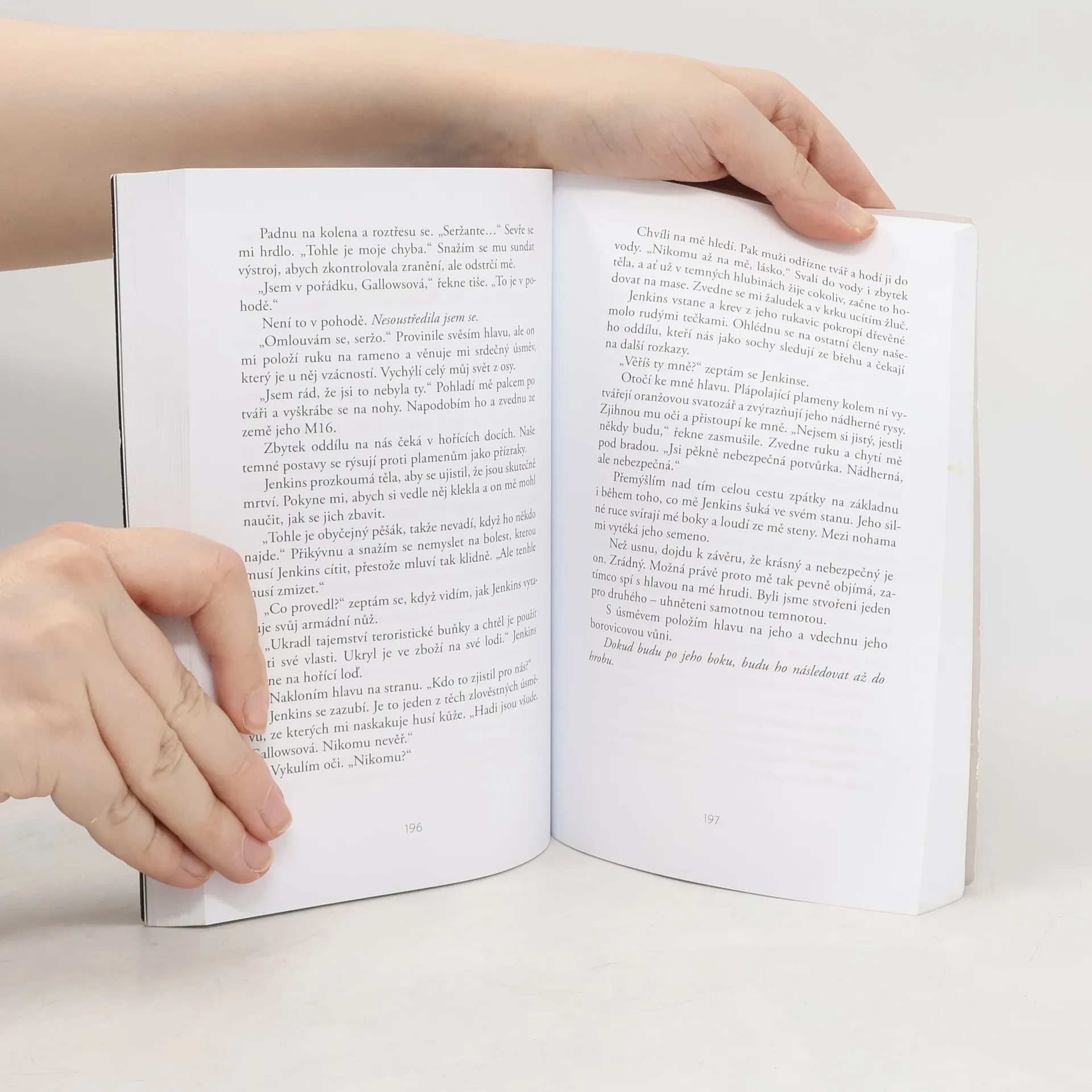 Nell Gallowsová je poslední přeživší tajné elitní jednotky Riot, která před dvěma lety čelila devastujícímu útoku. Teď je dosazena do jiné speciální jednotky. Malum je tým, který se vydává tam, kam se nikdo jiný neodváží nebo kam nikdo jiný nemůže. Jenže zabijáci z Malum obviňují jednotku Riot z úmrtí jednoho ze svých členů během neúspěšné mise v Patagonii. Nell tuší, že s otevřenou náručí na ni nikdo nečeká. Když se ocitne na palubě letadla směřujícího do Kalifornie, kde má potkat nové kolegy, nic už ji netrápí. Během poslední noci svobody prožije žhavý románek s neznámým mužem. Netuší ale, že tajemný Bradshaw je nejen člen Malum, ale také její největší noční můra – ten nejobávanější démon na bojišti. Bones. Už během výcviku zažívá Nell peklo na zemi. Bones je krutý a dává jí najevo své pohrdání. Chce ji donutit, aby to vzdala. A i když jejich mise končí opakovaným fiaskem, rozhodne se Nell zůstat po jeho boku do poslední chvíle. Je to jediná věc, kterou může udělat, když už není komu věřit. Dojít až tam, kde končí její zdravý rozum. Kde mají jen jeden druhého.