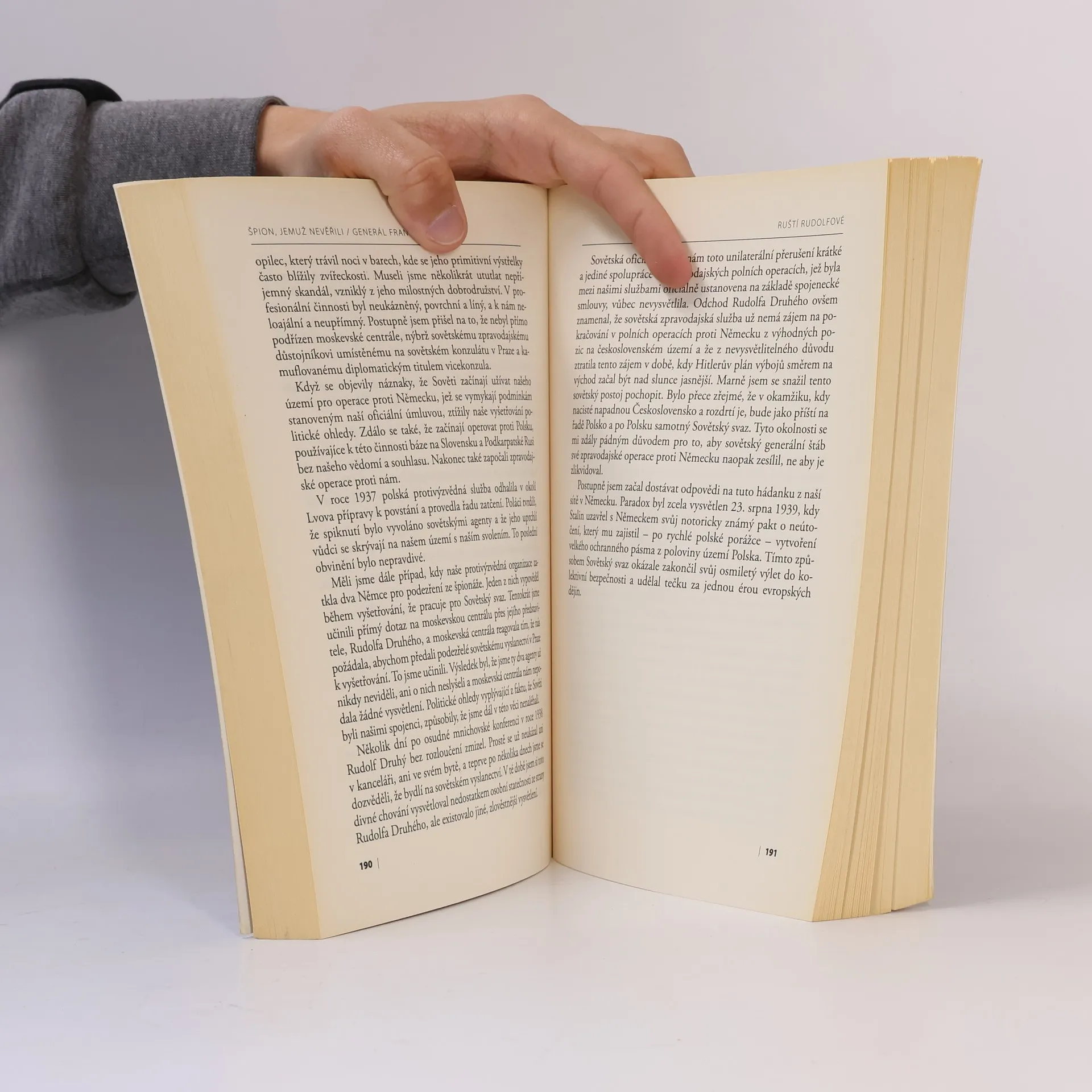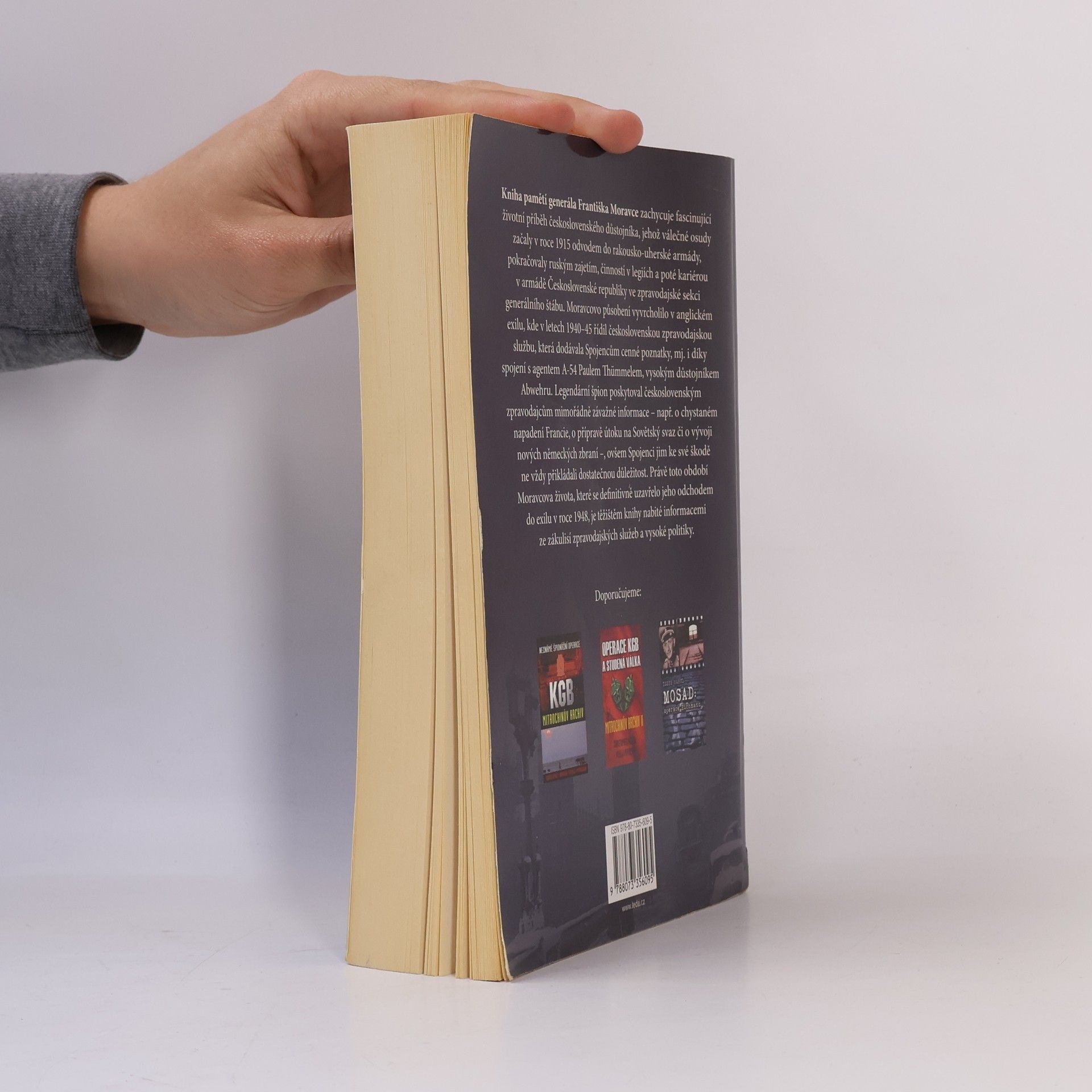 Kniha pamětí generála Františka Moravce zachycuje fascinující životní příběh československého důstojníka, jehož válečné osudy začaly v roce 1915 odvodem do rakousko-uherské armády, pokračovaly ruským zajetím, činností v legiích a poté kariérou v armádě Československé republiky ve zpravodajské sekci generálního štábu. Moravcovo působení vyvrcholilo v anglickém exilu, kde v letech 1940–45 řídil československou zpravodajskou službu, která dodávala Spojencům cenné poznatky, mj. i díky spojení s agentem A-54 Paulem Thümmelem, vysokým důstojníkem Abwehru. Legendární špion poskytoval československým zpravodajcům mimořádně závažné informace – např. o chystaném napadení Francie, o přípravě útoku na Sovětský svaz či o vývoji nových německých zbraní –, ovšem Spojenci jim ke své škodě ne vždy přikládali dostatečnou důležitost. Právě toto období Moravcova života, které se definitivně uzavřelo jeho odchodem do exilu v roce 1948, je těžištěm knihy nabité informacemi ze zákulisí zpravodajských služeb a vysoké politiky.