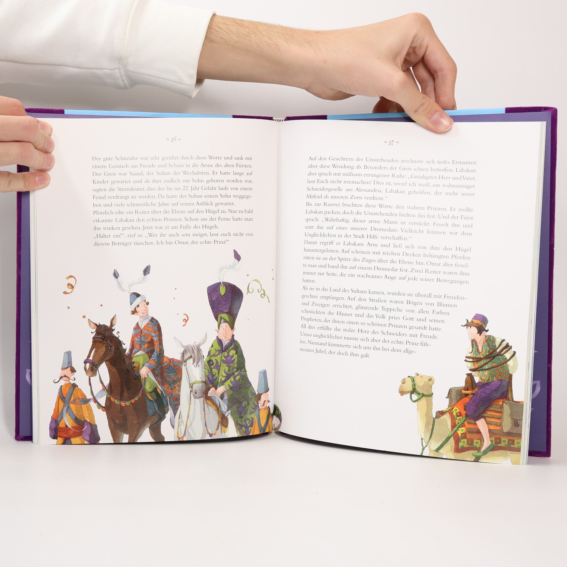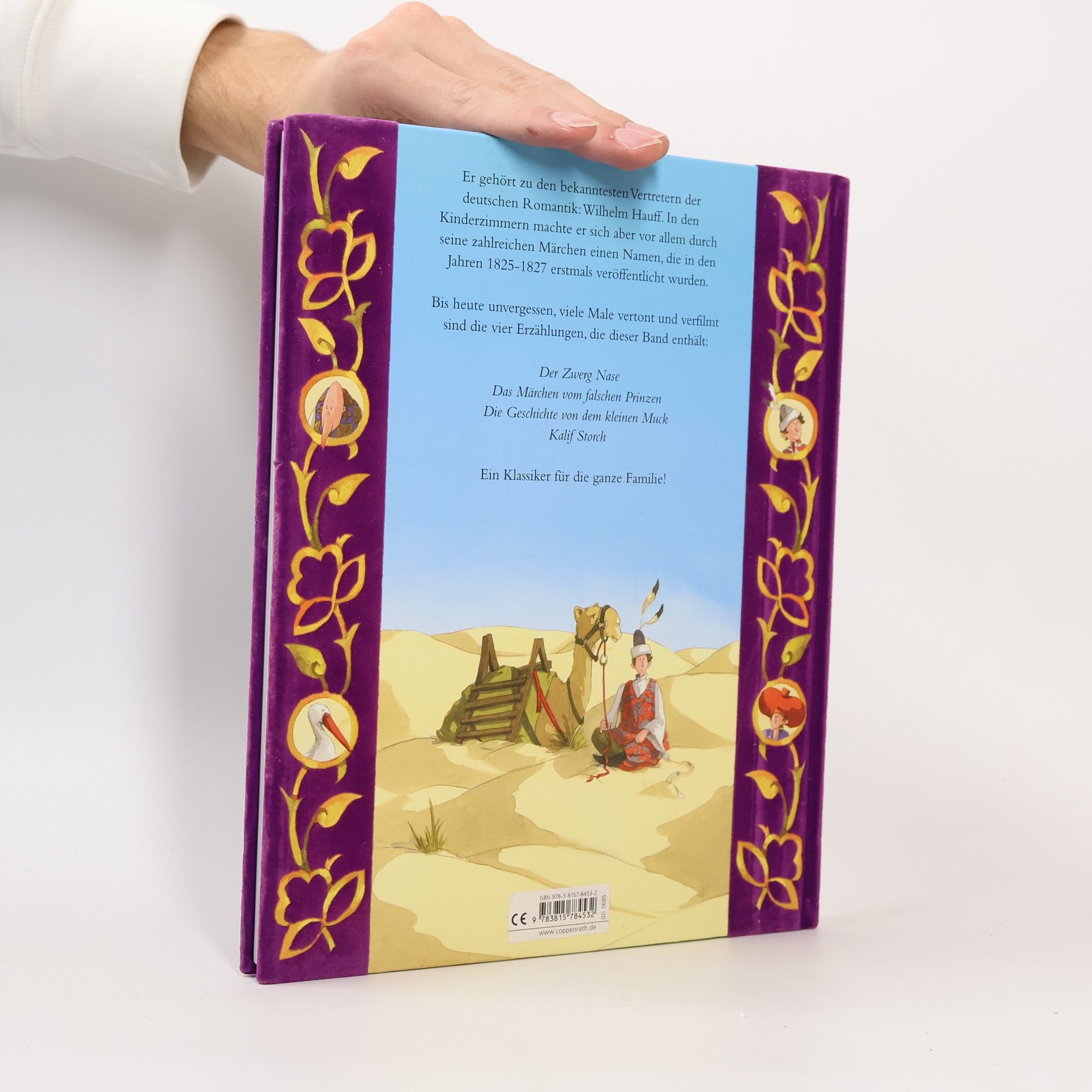 Kunst der Wandlung: Für seine verärgerte Bemerkung einer alten Hexe gegenüber, die respektlos an der Ware am Stand seiner Mutter herumdrückt, muss der Junge Jakob hart bezahlen. Die Alte lässt ihn zum hässlichen Zwerg mit langer Nase werden und es dauert bis er sich wieder davon befreien kann. Ebenfalls verzaubert wird der Kalif zu Bagdad. Verwandlung, die erst als Spass beginnt, wird bitterer Ernst. Der kleine Muck hingegen bekommt durch eine Wohltäterin die Schnellläuferpantoffeln und das Goldfindestöckchen. Das will ihm der König abluchsen, doch der kleine Muck ist ein listiges Kerlchen. Listig ist auch der Schneider, der es schafft sich als falschen Prinzen auszugeben, wenn da nicht die kluge Sultanin gewesen wäre... Die Märchen Hauffs entführen auf stimmungsvolle Weise in den alten Orient, in dem der jung verstorbene Autor nie gewesen ist. Sie sind voller Weisheit, Verspieltheit und Humor. Ein sorgfältig gestaltetes Cover, eine gut lesbare Schrift und phantasievolle Farbaquarellbilder machen den in vereinfachter Sprache verfasste Märchenband zu einem Buch, das man gern in die Hand nimmt. Ab 6 Jahren, *****, Denise Racine.