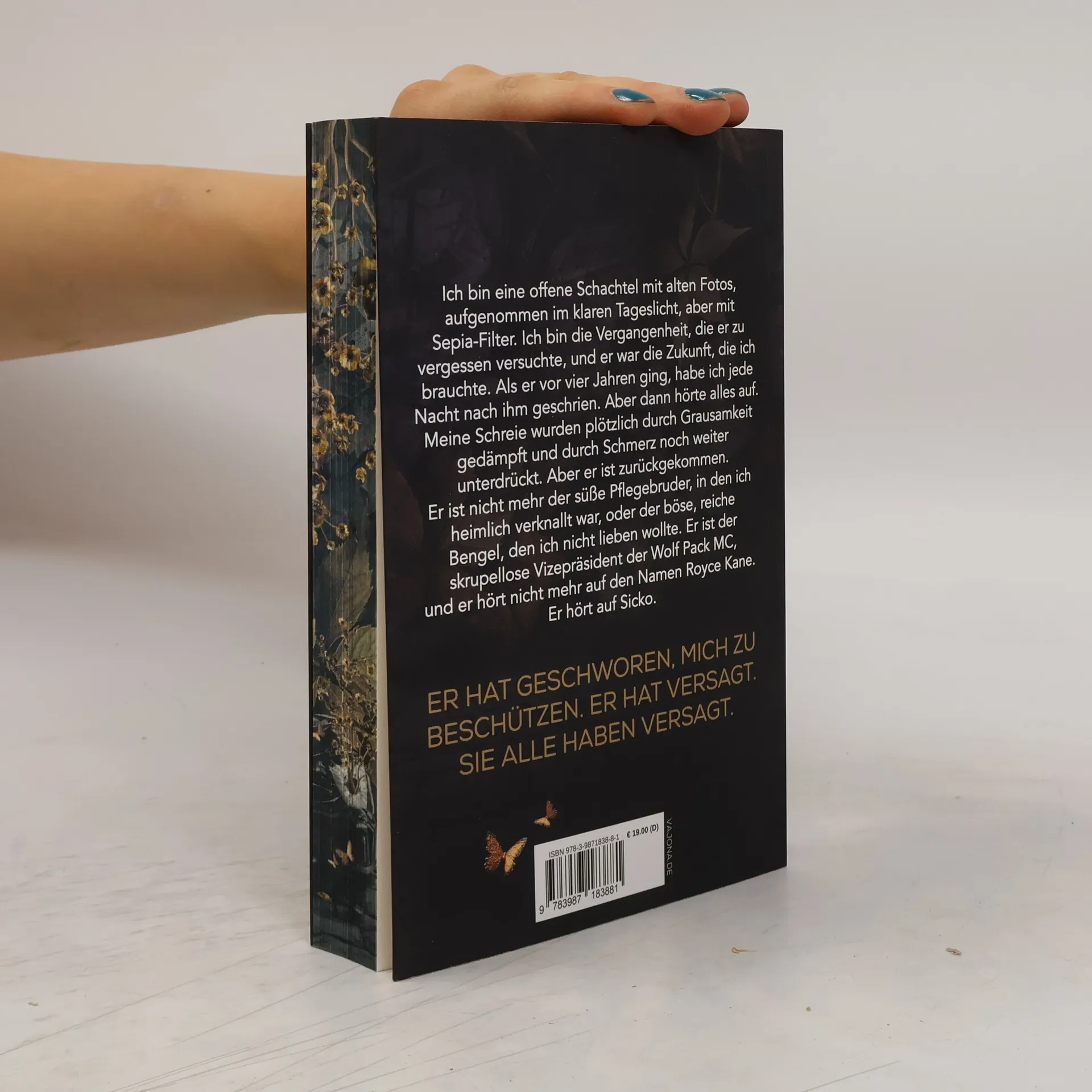 Die fesselnde Biker-Dark-Romance von Bestsellerautorin AMO JONES! Mit farbigem Buchschnitt - limitiert - Er hat geschworen, mich zu beschützen. Er hat versagt. Sie alle haben versagt. Ich bin eine offene Schachtel mit alten Fotos, aufgenommen im klaren Tageslicht, aber mit Sepia-Filter. Ich bin die Vergangenheit, die er zu vergessen versuchte, und er war die Zukunft, die ich brauchte. Als er vor vier Jahren ging, habe ich jede Nacht nach ihm geschrien. Aber dann hörte alles auf. Meine Schreie wurden plötzlich durch Grausamkeit gedämpft und durch Schmerz noch weiter unterdrückt. Aber er ist zurückgekommen. Er ist nicht mehr der süße Pflegebruder, in den ich heimlich verknallt war, oder der böse, reiche Bengel, den ich nicht lieben wollte. Er ist der skrupellose Vizepräsident der Wolf Pack MC, und er hört nicht mehr auf den Namen Royce Kane. Er hört auf Sicko.