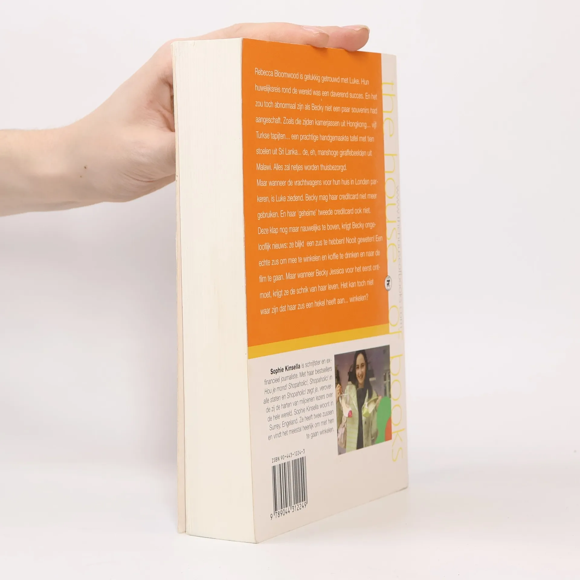 Rebecca Bloomwood is gelukkig getrouwd met Luke. Hun huwelijksreis rond de wereld was een daverend succes. En het zou toch abnormaal zijn als Becky niet een paar souvenirs had aangeschaft. Zoals die zijden kamerjassen uit Hong Kong... vijf Turkse tapijten... een prachtige handgemaakte tafel met tien stoelen uit Sri Lanka... de, eh, manshoge giraffebeelden uit Malawi. Alles zal netjes worden thuisbezorgd. Maar wanneer de vrachtwagens voor hun huis in Londen parekren, is Luke ziedend. Becky mag haar creditcard niet meer gebruiken. En haar 'geheime' tweede creditcard ook niet. Deze klap nog maar nauwelijks te boven, krijgt Becky ongelooflijk nieuws: ze blijkt een zus te hebben! Nooit geweten! Een echte zus om mee te winkelen en koffie te drinken en naar de film te gaan. Maar wanneer Becky Jessica voor het eerst ontmoet, krijgt ze de schrik van haar leven. Het kan toch niet waar zijn dat haar zus een hekel heeft aan... winkelen? Sophie Kinsella is schrijfster en ex-financieel journaliste. Met haar bestsellers Hou je mond!, Shopaholic!, Shopaholic! in alle staten en Shopaholic! zegt ja, veroverde zij de harten van miljoenen lezers over de hele wereld. Kinsella woont in Surrey, Engeland. Ze heeft twee zussen en vindt het meestal heerlijk om met hen te gaan winkelen.