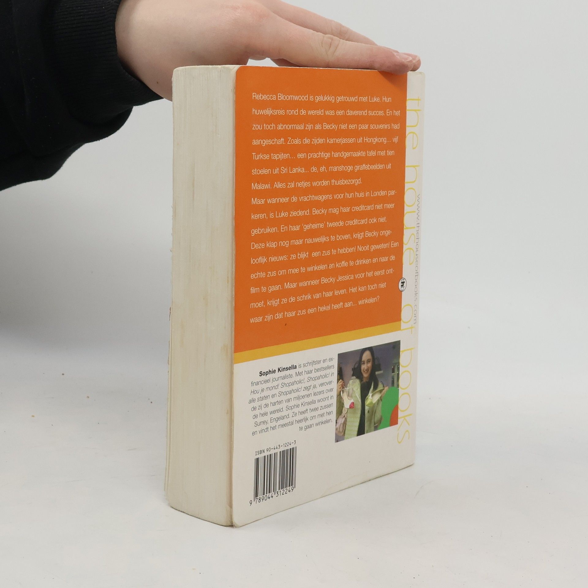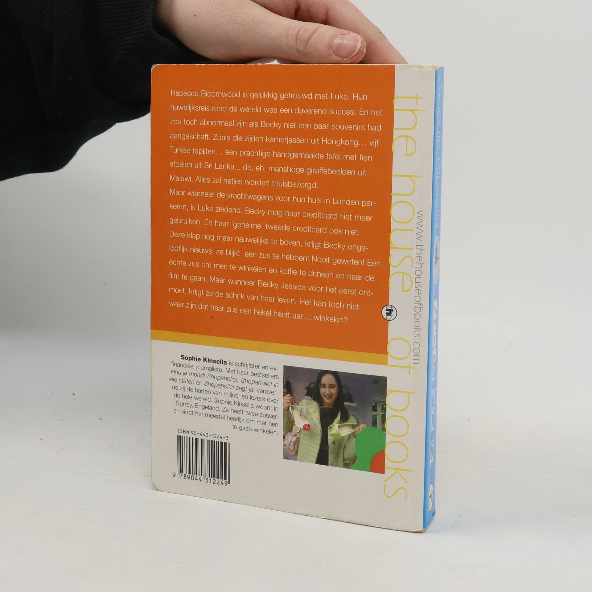Rebecca Bloomwood is gelukkig getrouwd met Luke. Hun huwelijksreis rond de wereld was een daverend succes. En het zou toch abnormaal zijn als Becky niet een paar souvenirs had aangeschaft. Zoals die zijden kamerjassen uit Hong Kong... vijf Turkse tapijten... een prachtige handgemaakte tafel met tien stoelen uit Sri Lanka... de, eh, manshoge giraffebeelden uit Malawi. Alles zal netjes worden thuisbezorgd. Maar wanneer de vrachtwagens voor hun huis in Londen parekren, is Luke ziedend. Becky mag haar creditcard niet meer gebruiken. En haar 'geheime' tweede creditcard ook niet. Deze klap nog maar nauwelijks te boven, krijgt Becky ongelooflijk nieuws: ze blijkt een zus te hebben! Nooit geweten! Een echte zus om mee te winkelen en koffie te drinken en naar de film te gaan. Maar wanneer Becky Jessica voor het eerst ontmoet, krijgt ze de schrik van haar leven. Het kan toch niet waar zijn dat haar zus een hekel heeft aan... winkelen? Sophie Kinsella is schrijfster en ex-financieel journaliste. Met haar bestsellers Hou je mond!, Shopaholic!, Shopaholic! in alle staten en Shopaholic! zegt ja, veroverde zij de harten van miljoenen lezers over de hele wereld. Kinsella woont in Surrey, Engeland. Ze heeft twee zussen en vindt het meestal heerlijk om met hen te gaan winkelen.