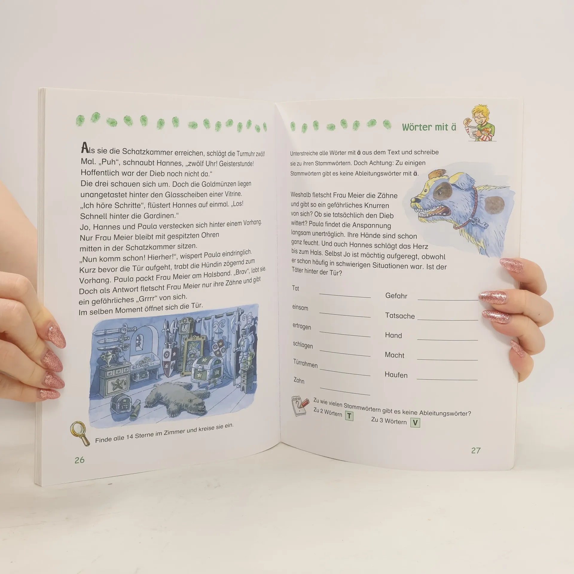 Schaffst du es, die Fälle zu knacken? Löse die Aufgaben und sammle zusammen mit den Detektiven wichtige Indizien.Zwei spannende Fälle warten nur darauf, von schlauen Meisterdetektiven gelöst zu werden! Knifflige Krimigeschichten werden durch abwechslungsreiche Rätsel ergänzt, deren Lösung zur Aufklärung der Verbrechen führt. Schulkinder können so spielerisch den Unterrichtsstoff in Deutsch wiederholen - genau abgestimmt auf den Lehrplan der dritten Klasse . Lösungsseiten in Spiegelschrift bestätigen den Rätselerfolg.- Jeweils eine durchgehende Krimigeschichte- Aufgaben aus dem Fach Deutsch führen zur Lösung des Falls- Genau abgestimmt auf den Lehrplan der 3. Klasse- Wiederholung des Unterrichtsstoffes, Leseförderung und Stärkung der Konzentrationsfähigkeit in einemGefahr auf Burg SchreckenfelsAuf Schreckenfels herrscht große Aufregung, denn die Schätze der Burg sind in Gefahr. Wer ist der mysteriöse Einbrecher, dem scheinbar jeder Raub gelingt? Paula, Jo und Hannes setzen alles daran, den Dieb zu fassen.Die Rache der SchulgeisterWährend der Lesenacht geschehen unheimliche Dinge. Werden die Schüler wirklich von Geistern heimgesucht oder erlaubt sich jemand einen gespenstischen Streich? Das Detektiv-Team beginnt seine Ermittlungen, um dem Spuk ein Ende zu setzen.