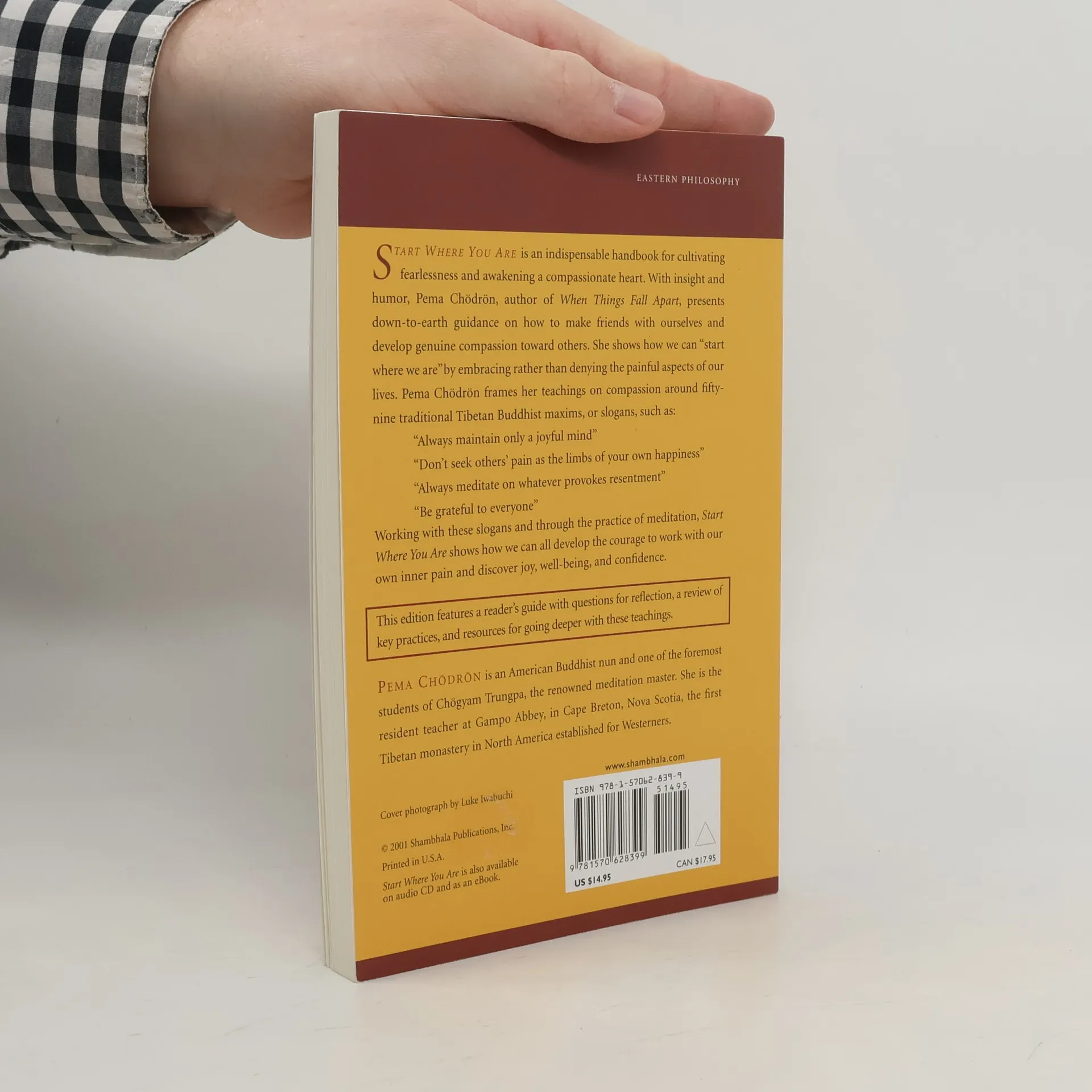 Start Where You Are is an indispensable handbook for cultivating fearlessness and awakening a compassionate heart. With insight and humor, Pema Chödrön presents down-to-earth guidance on how we can "start where we are"—embracing rather than denying the painful aspects of our lives. Pema Chödrön frames her teachings on compassion around fifty-nine traditional Tibetan Buddhist maxims, or slogans, such as: "Always apply only a joyful state of mind," "Don't seek others' pain as the limbs of your own happiness," and "Always meditate on whatever provokes resentment." Working with these slogans and through the practice of meditation, Start Where You Are shows how we can all develop the courage to work with our inner pain and discover joy, well-being, and confidence.