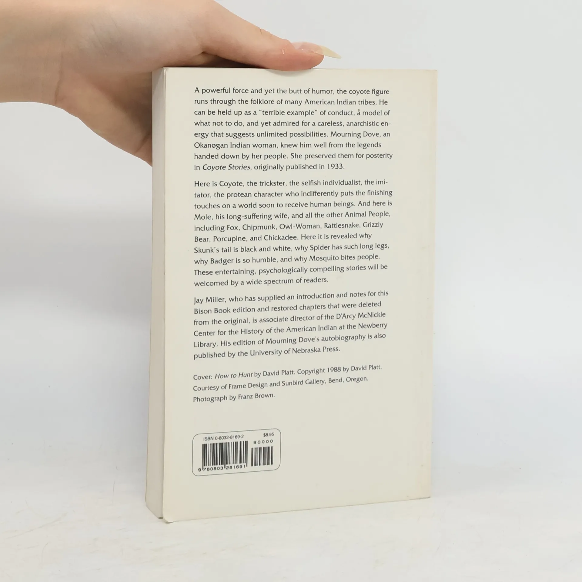 A powerful force and yet the butt of humor, the coyote figure runs through the folklore of many American Indian tribes. He can be held up as a "terrible example" of conduct, a model of what not to do, and yet admired for a careless. anarchistic energy that suggests unlimited possibilities. Mourning Dove, an Okanagan, knew him well from the legends handed down by her people. She preserved them for posterity in Coyote Stories , originally published in 1933. Here is Coyote, the trickster, the selfish individualist, the imitator, the protean character who indifferently puts the finishing touches on a world soon to receive human beings. And here is Mole, his long-suffering wife, and all the other Animal People, including Fox, Chipmunk, Owl-Woman, Rattlesnake, Grizzly Bear, Porcupine, and Chickadee. Here it is revealed why Skunk's tail is black and white, why Spider has such long legs, why Badger is so humble, and why Mosquito bites people. These entertaining, psychologically compelling stories will be welcomed by a wide spectrum of readers. Jay Miller has supplied an introduction and notes for this Bison Books edition and restored chapters that were deleted from the original.