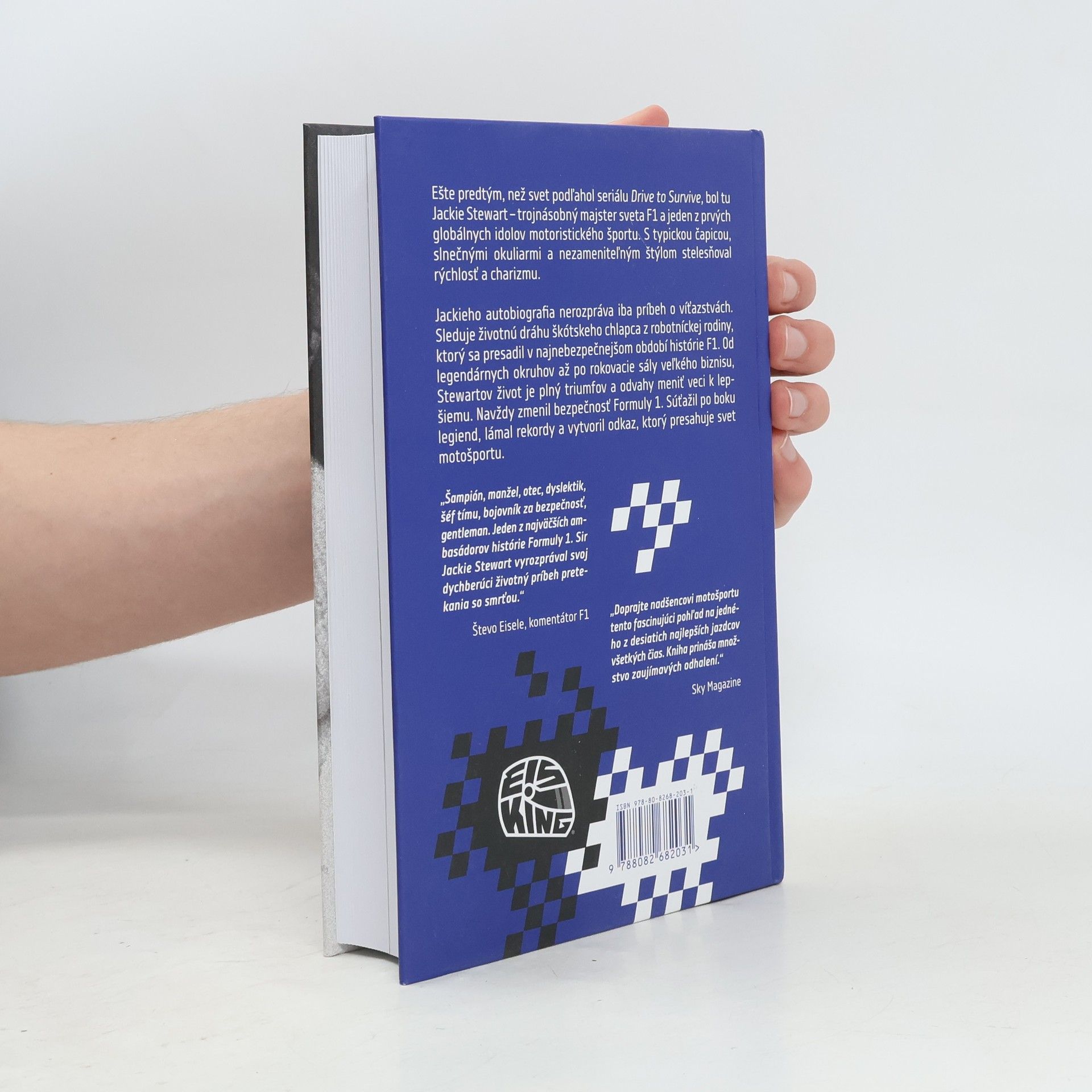 Ešte predtým, než svet podľahol seriálu Drive to Survive, bol tu Jackie Stewart – trojnásobný majster sveta F1 a jeden z prvých globálnych idolov motoristického športu. V typickej čapici, so slnečnými okuliarmi a nezameniteľným štýlom stelesňoval rýchlosť a charizmu. Jackieho autobiografia nerozpráva iba príbeh o víťazstvách. Sleduje životnú dráhu škótskeho chlapca z robotníckej rodiny, ktorý sa presadil v najnebezpečnejšom období histórie F1. Od legendárnych okruhov až po rokovacie sály veľkého biznisu, Stewartov život je plný triumfov a odvahy meniť veci k lepšiemu. Navždy zmenil bezpečnosť Formuly 1. Súťažil po boku legiend, lámal rekordy a vytvoril odkaz, ktorý presahuje svet motošportu.