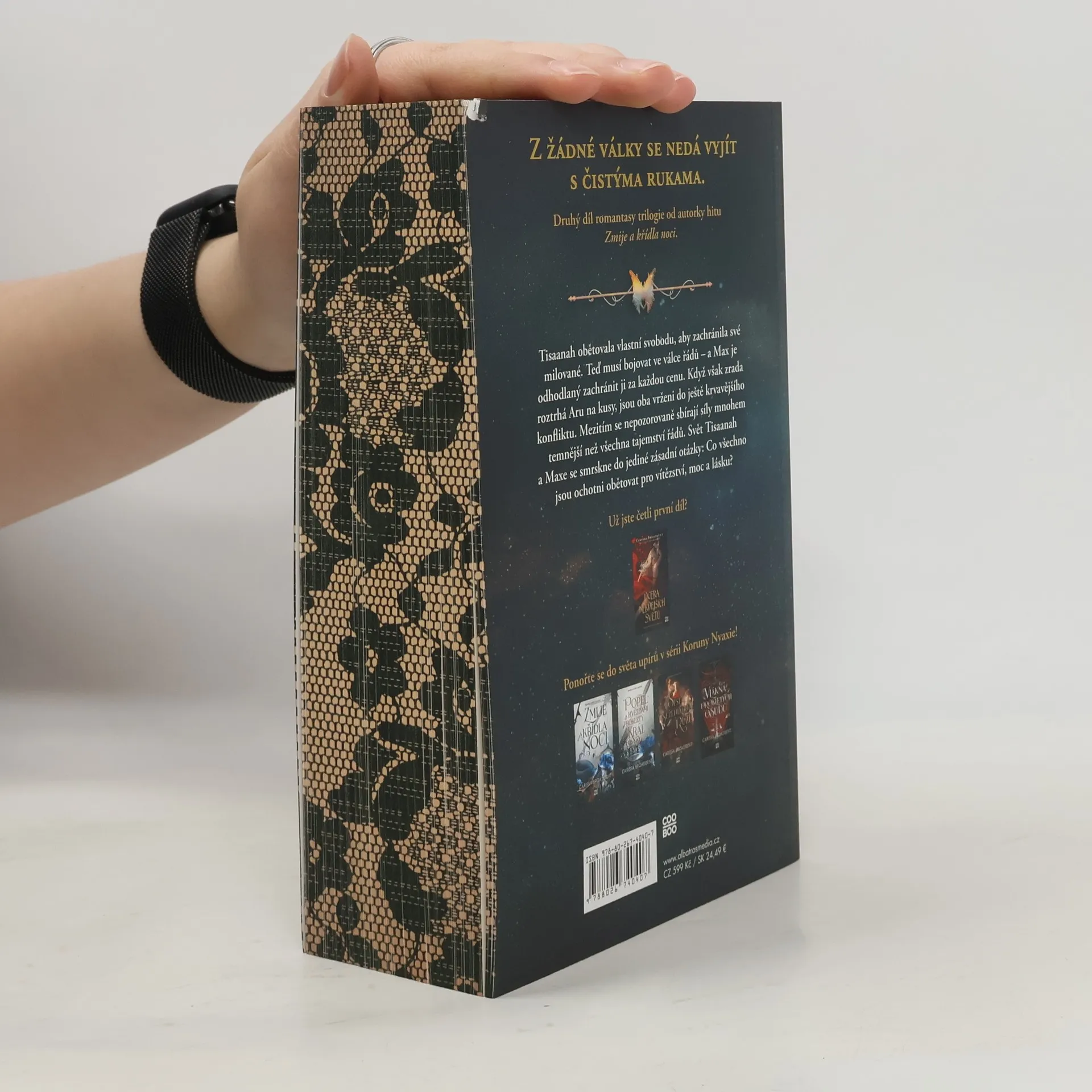 Z žádné války se nedá vyjít s čistýma rukama. Druhý díl romantasy trilogie od autorky hitu Zmije a křídla noci. Tisaanah obětovala vlastní svobodu, aby zachránila své milované. Teď musí bojovat ve válce Řádů – a Max je odhodlaný zachránit ji za každou cenu. Když však zrada roztrhá Aru na kusy, jsou oba vrženi do ještě krvavějšího konfliktu. Mezitím se nepozorovaně sbírají síly mnohem temnější než všechna tajemství Řádů. Ve chvíli, kdy se Tisaanah a Max zaplétají do sítě prastaré magie a pokřivených tajemství, jejich svět se smrskne do jediné zásadní otázky: Co všechno jsou ochotni obětovat pro vítězství, moc a lásku?