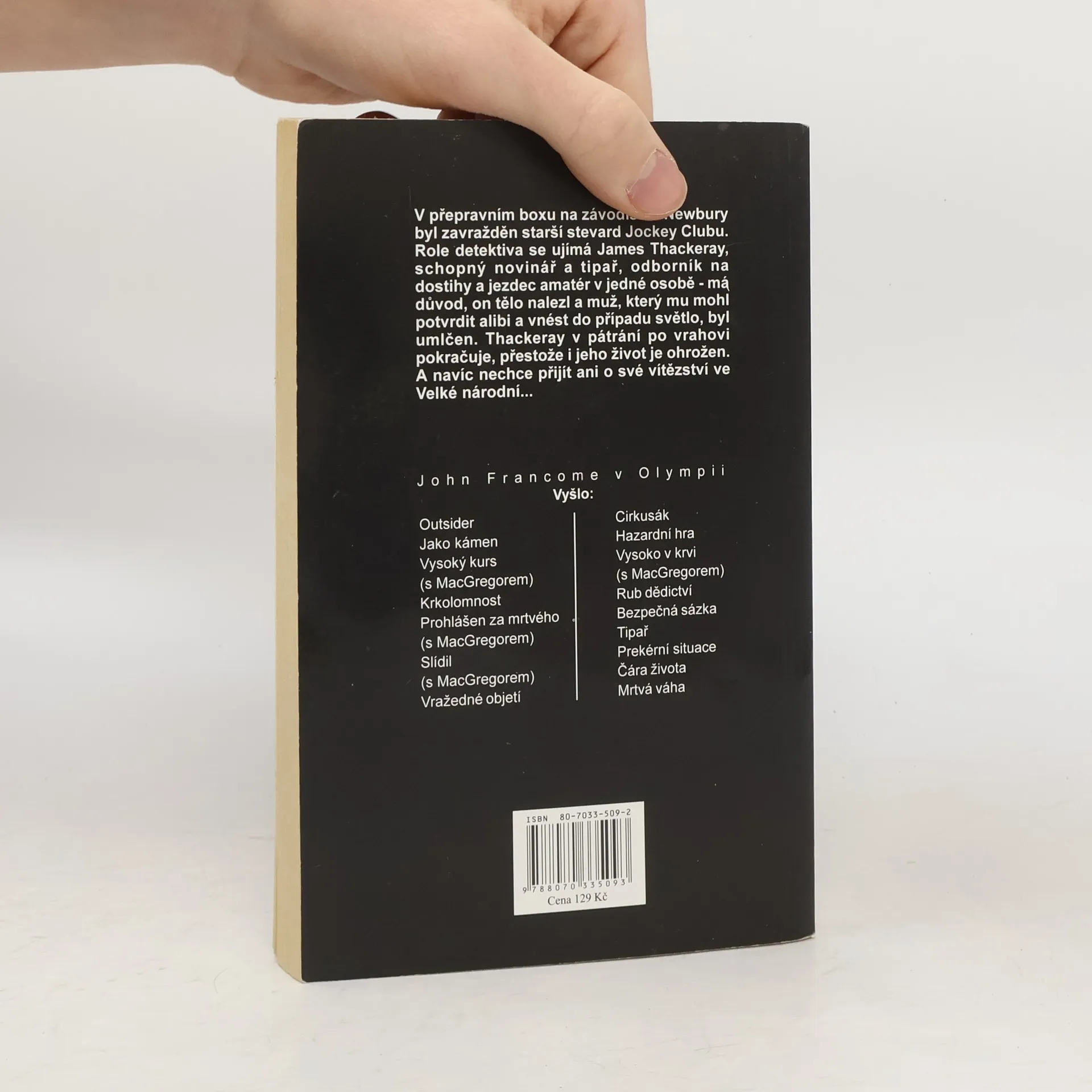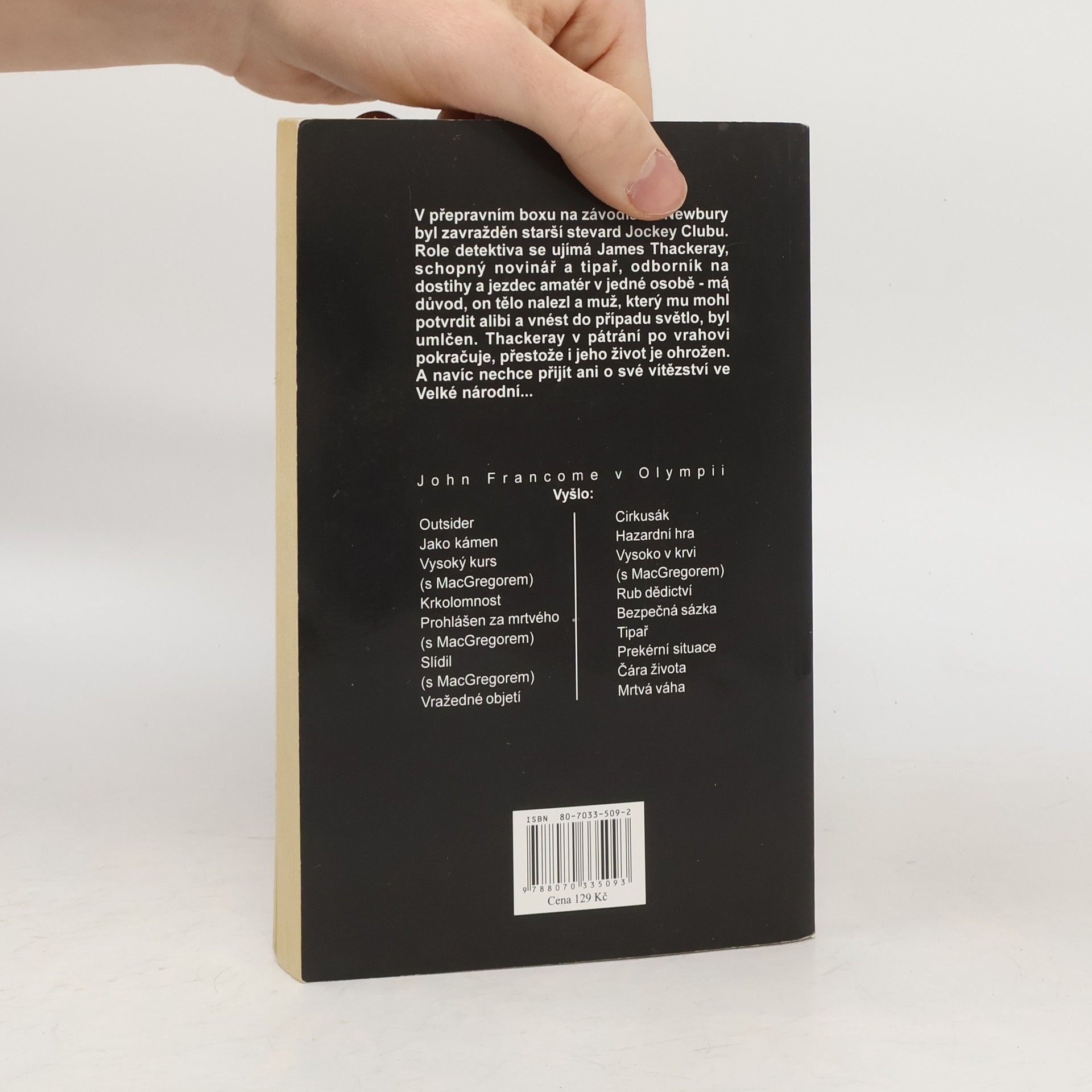 V přepravním boxu na závodišti v Newbury byl zavražděn starší stevard Jockey Clubu. Role detektiva se ujímá James Thackeray, schopný novinář a tipař, odborník na dostihy a jezdec amatér v jedné osobě – má důvod, on tělo nalezl a muž, který mu mohl potvrdit alibi a vnést do případu světlo, byl umlčen. Thackeray v pátrání po vrahovi pokračuje, přestože i jeho život je ohrožen. A navíc nechce přijít ani o své vítězství ve Velké národní…
