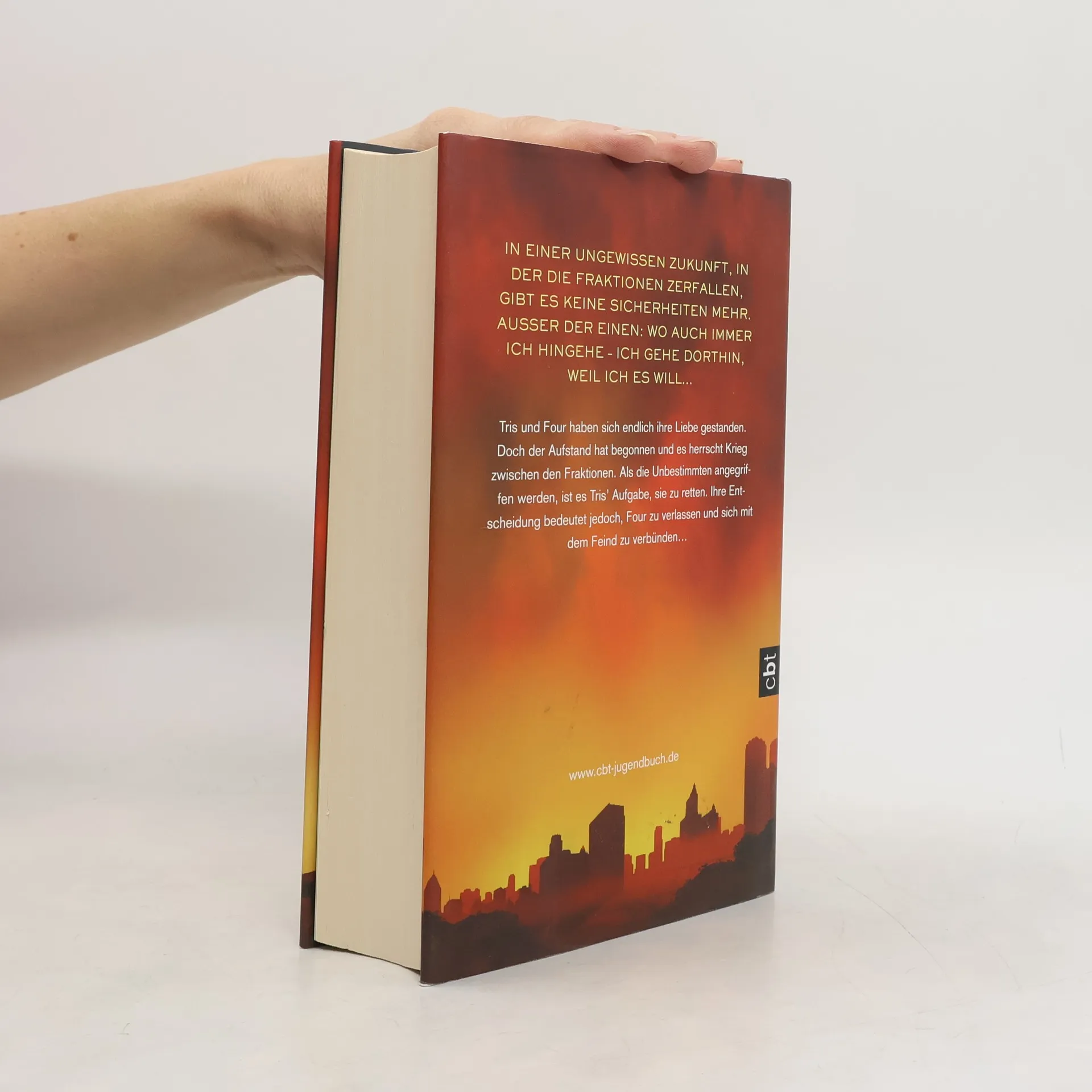 Der Aufstand hat begonnen ... In einer ungewissen Zukunft, in der die Fraktionen zerfallen, gibt es keine Sicherheiten mehr. Außer der einen: Wo auch immer ich hingehe – ich gehe dorthin, weil ich es will… Drei Tage ist es her, seit die Ken mithilfe der ferngesteuerten Ferox-Soldaten unzählige Altruan umgebracht haben. Drei Tage, seit Tris' Eltern starben. Drei Tage, seit sie selbst ihren Freund Will erschossen hat – und aus Scham und Entsetzen darüber schweigt. Mit den überlebenden Altruan haben Tris und Tobias sich zu den Amite geflüchtet – doch dort sind sie nicht sicher, denn der Krieg zwischen den Fraktionen hat gerade erst begonnen. Wieder einmal muss Tris entscheiden, wo sie hingehört – selbst wenn es bedeutet, sich gegen die zu stellen, die sie am meisten liebt. Und wieder einmal kann es nur Tris in ihrer Rolle als Unbestimmte gelingen, die Katastrophe abzuwenden...