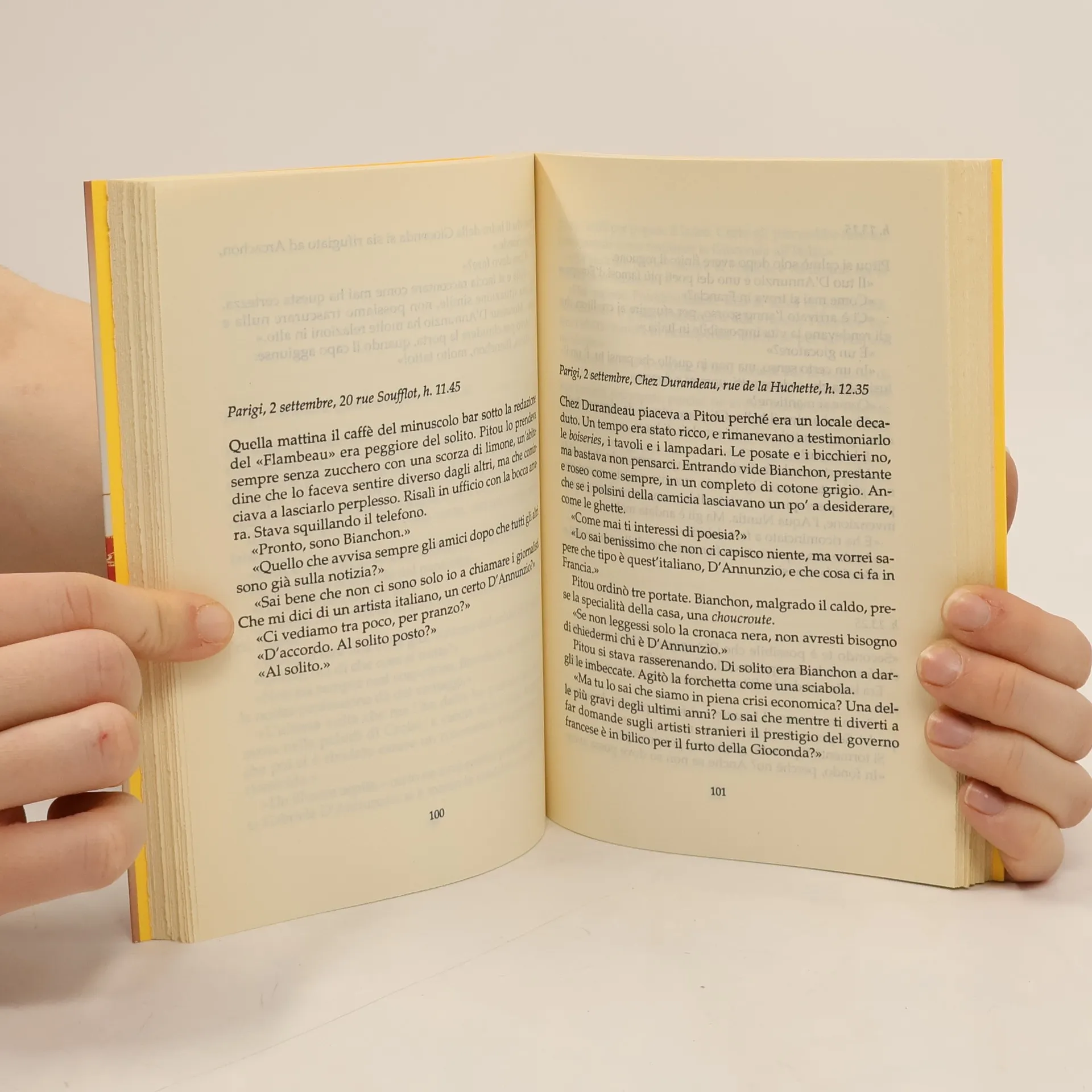 Francesista, docente all'Università di Roma La Sapienza dal 1976, Giuseppe Scaraffia ha costruito un giallo sullo sfondo di una Parigi affascinante di inizio Novecento. È il 1911 e nella capitale francese avviene un furto epocale: i soliti ignoti hanno rubato dalla Grand Galerie del Louvre nientemeno che la Gioconda. Coinvolti nell'indagine saranno i migliori intelletti dell'epoca: pittori, da Chagall a Modigliani a Picasso, poeti, da Apollinaire a d'Annunzio, e poi giornalisti, sarti, mercanti d'arte, poliziotti e prostitute...