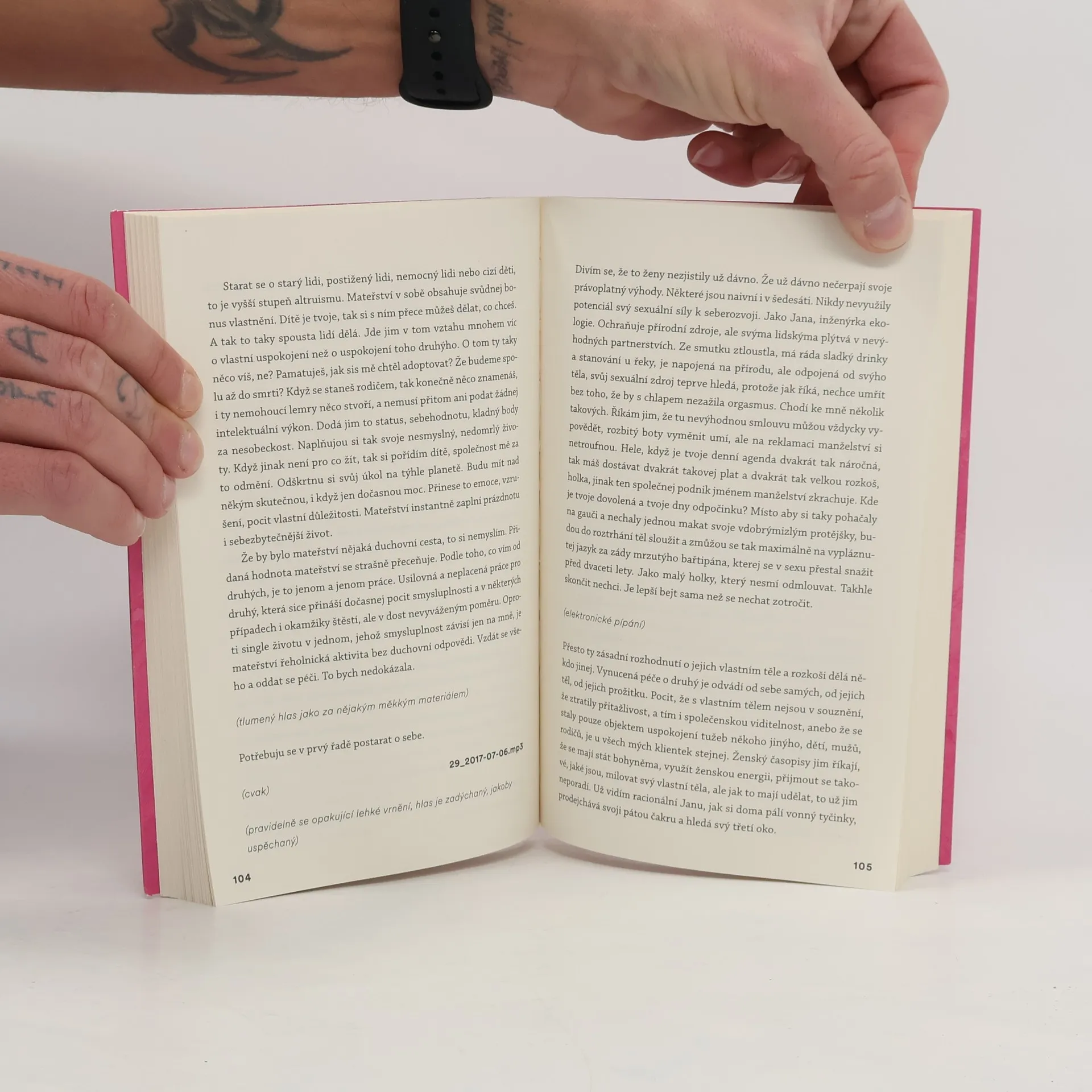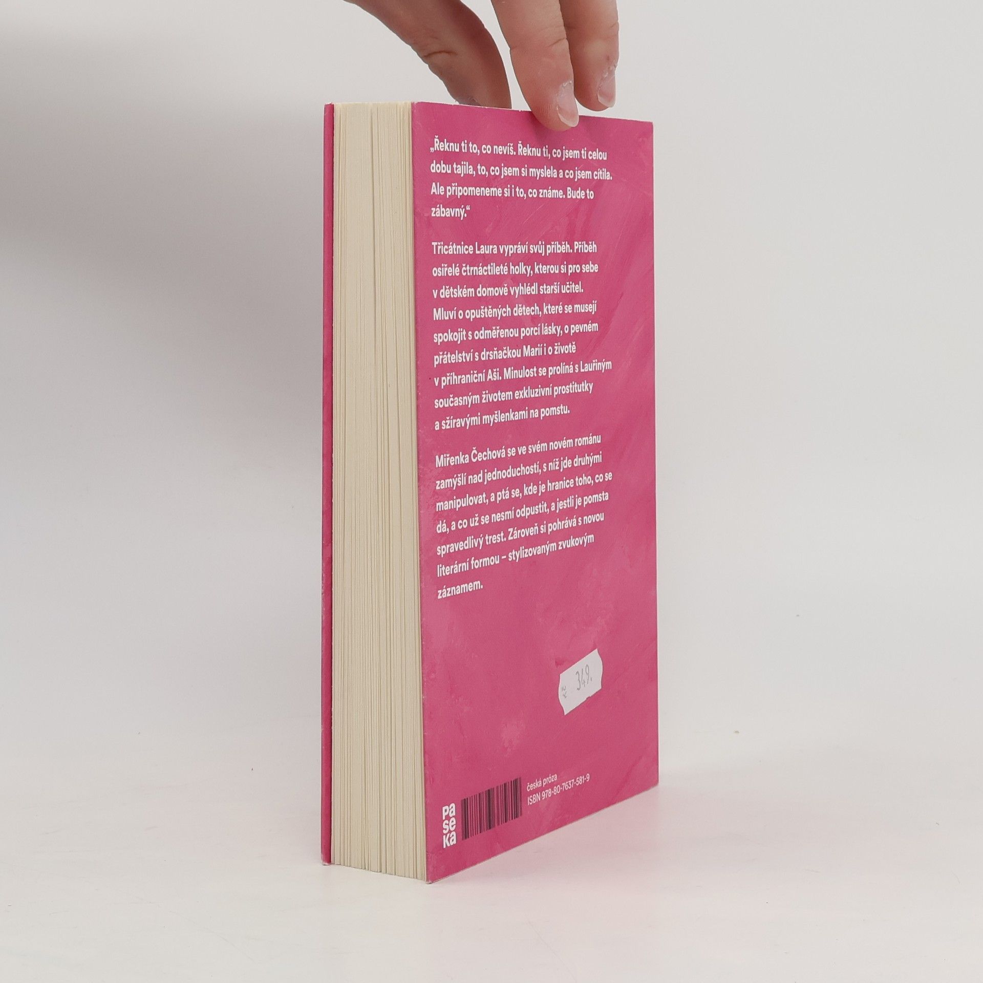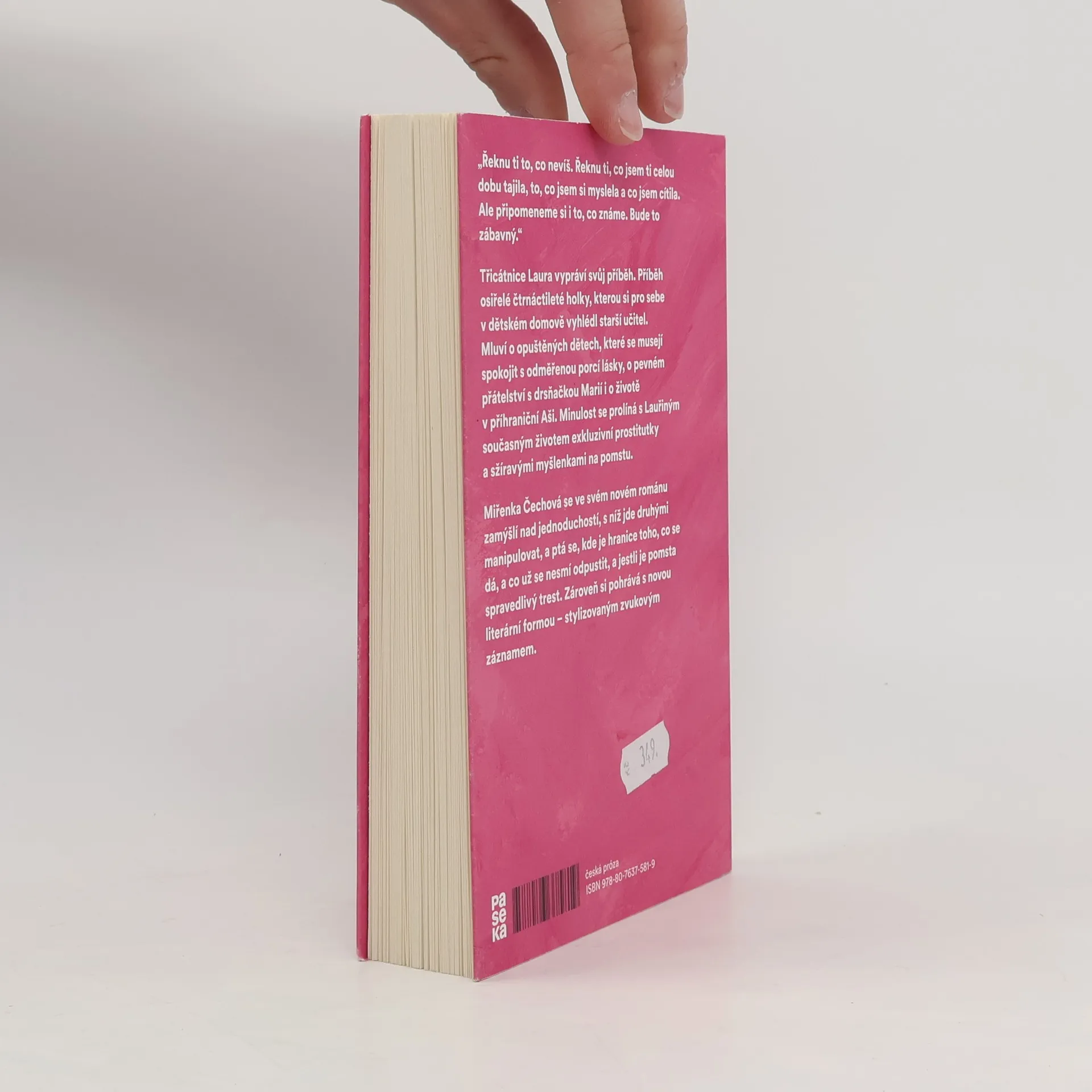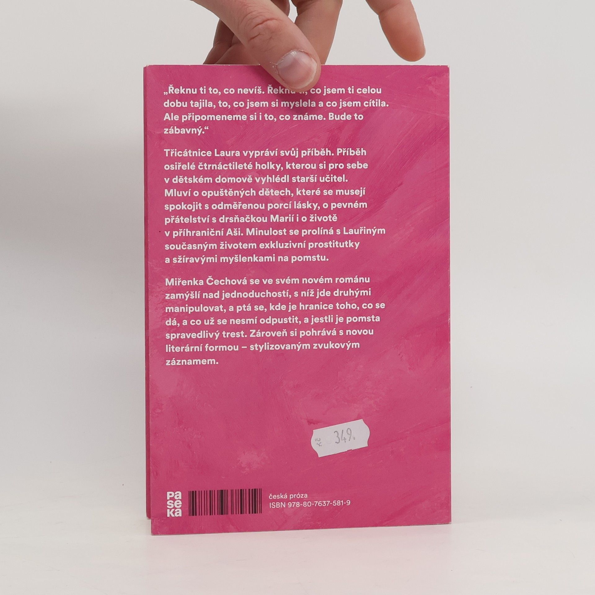 „Řeknu ti to, co nevíš. Řeknu ti, co jsem ti celou dobu tajila, to, co jsem si myslela a co jsem cítila. Ale připomeneme si i to, co známe. Bude to zábavný.“ Třicátnice Laura vypráví svůj příběh. Příběh osiřelé čtrnáctileté holky, kterou si pro sebe v dětském domově vyhlédl starší učitel. Mluví o opuštěných dětech, které se musejí spokojit s odměřenou porcí lásky, o pevném přátelství s drsňačkou Marií i o životě v příhraniční Aši. Minulost se prolíná s Lauřiným současným životem exkluzivní prostitutky a sžíravými myšlenkami na pomstu. Miřenka Čechová se ve svém novém románu zamýšlí nad jednoduchostí, s níž jde druhými manipulovat, a ptá se, kde je hranice toho, co se dá, a co už se nesmí odpustit, a jestli je pomsta spravedlivý trest. Zároveň si pohrává s novou literární formou – stylizovaným zvukovým záznamem.