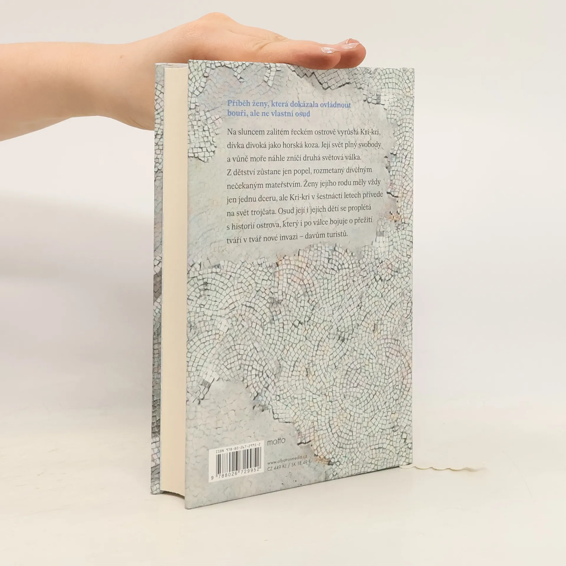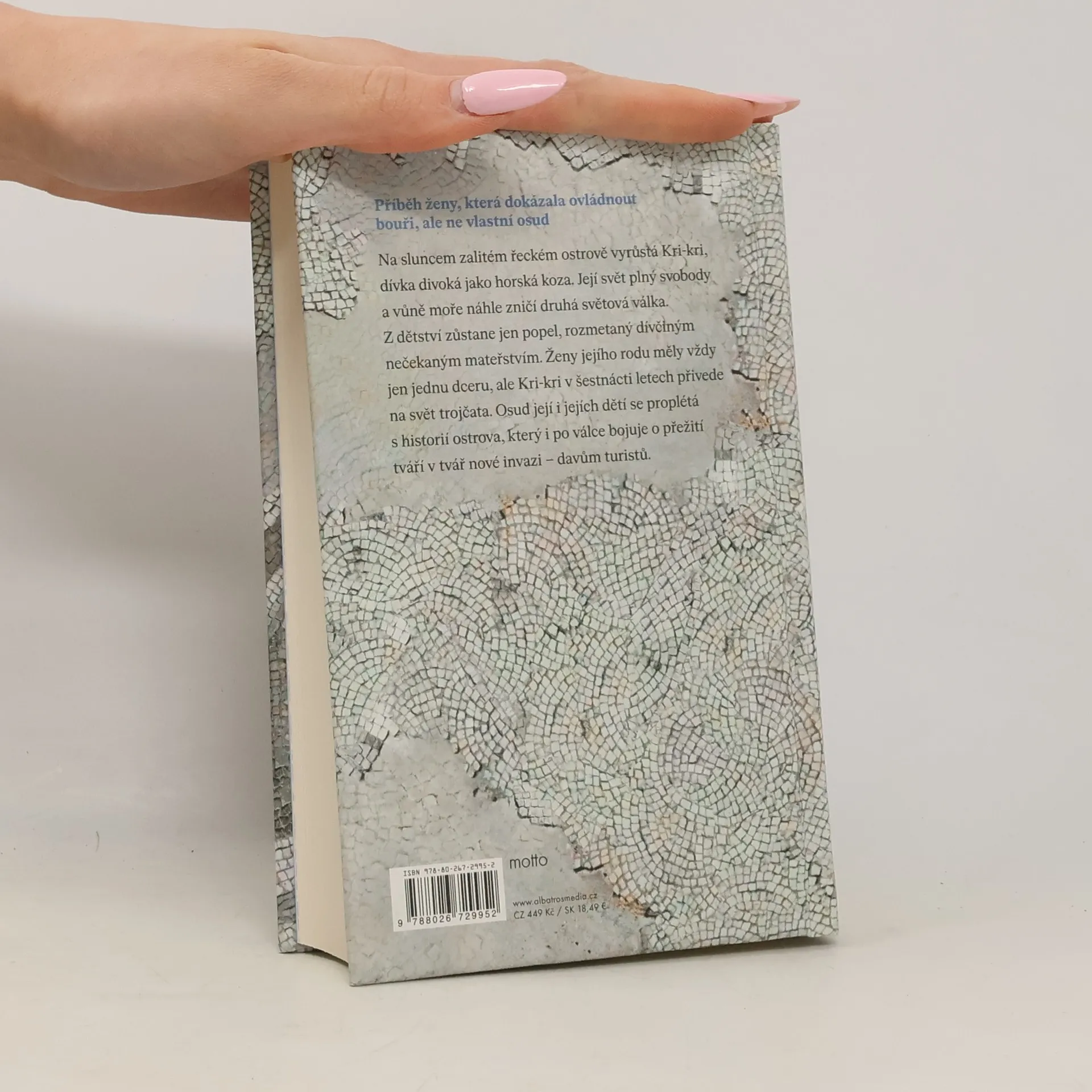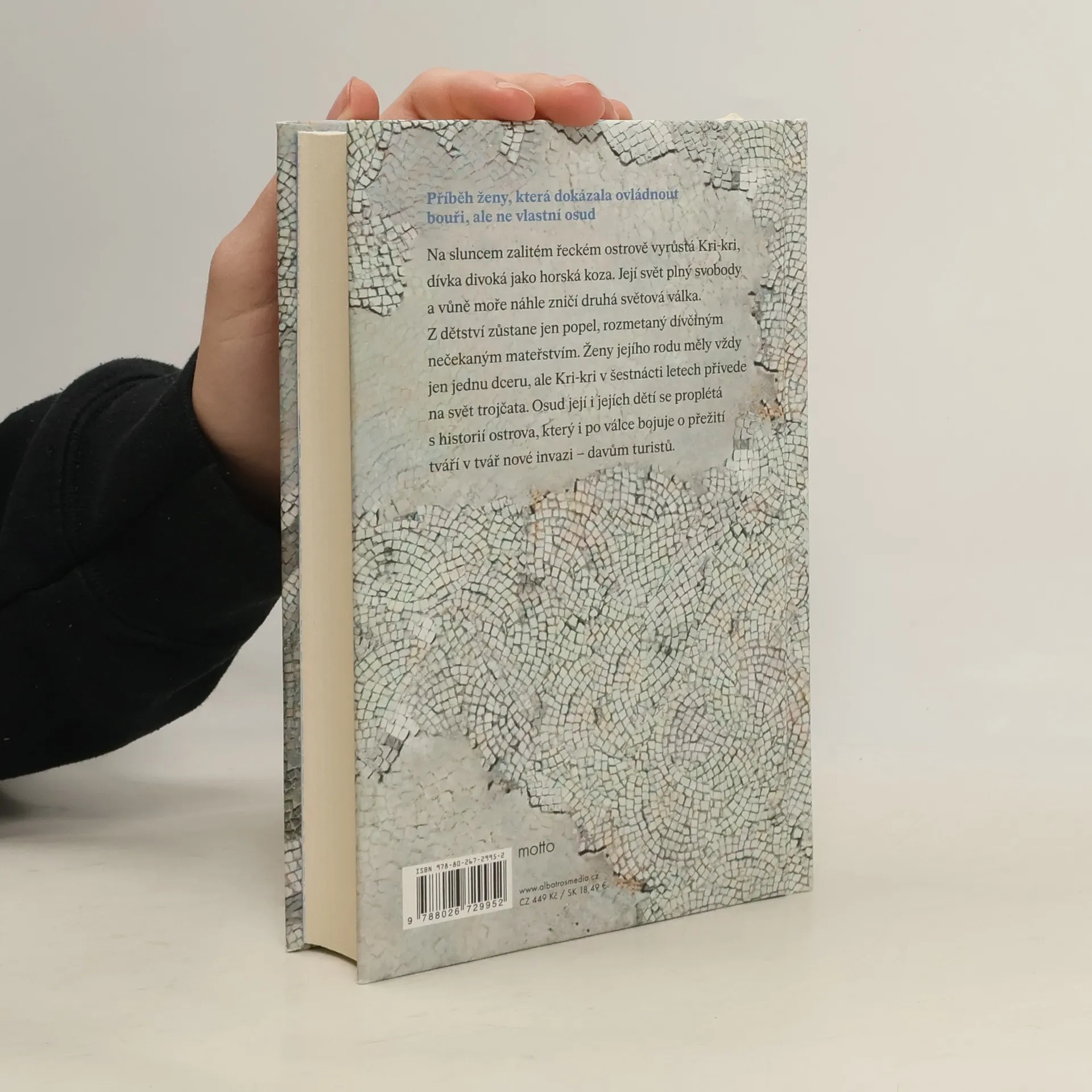 Příběh ženy, která dokázala ovládnout bouři, ale ne vlastní osud Na sluncem zalitém řeckém ostrově vyrůstá Kri-kri, dívka divoká jako horská koza. Její svět plný svobody a vůně moře náhle zničí druhá světová válka. Z dětství zůstane jen popel, rozmetaný dívčiným nečekaným mateřstvím. Ženy jejího rodu měly vždy jen jednu dceru, ale Kri-kri v šestnácti letech přivede na svět trojčata. Osud její i jejích dětí se proplétá s historií ostrova, který i po válce bojuje o přežití tváří v tvář nové invazi – davům turistů.
