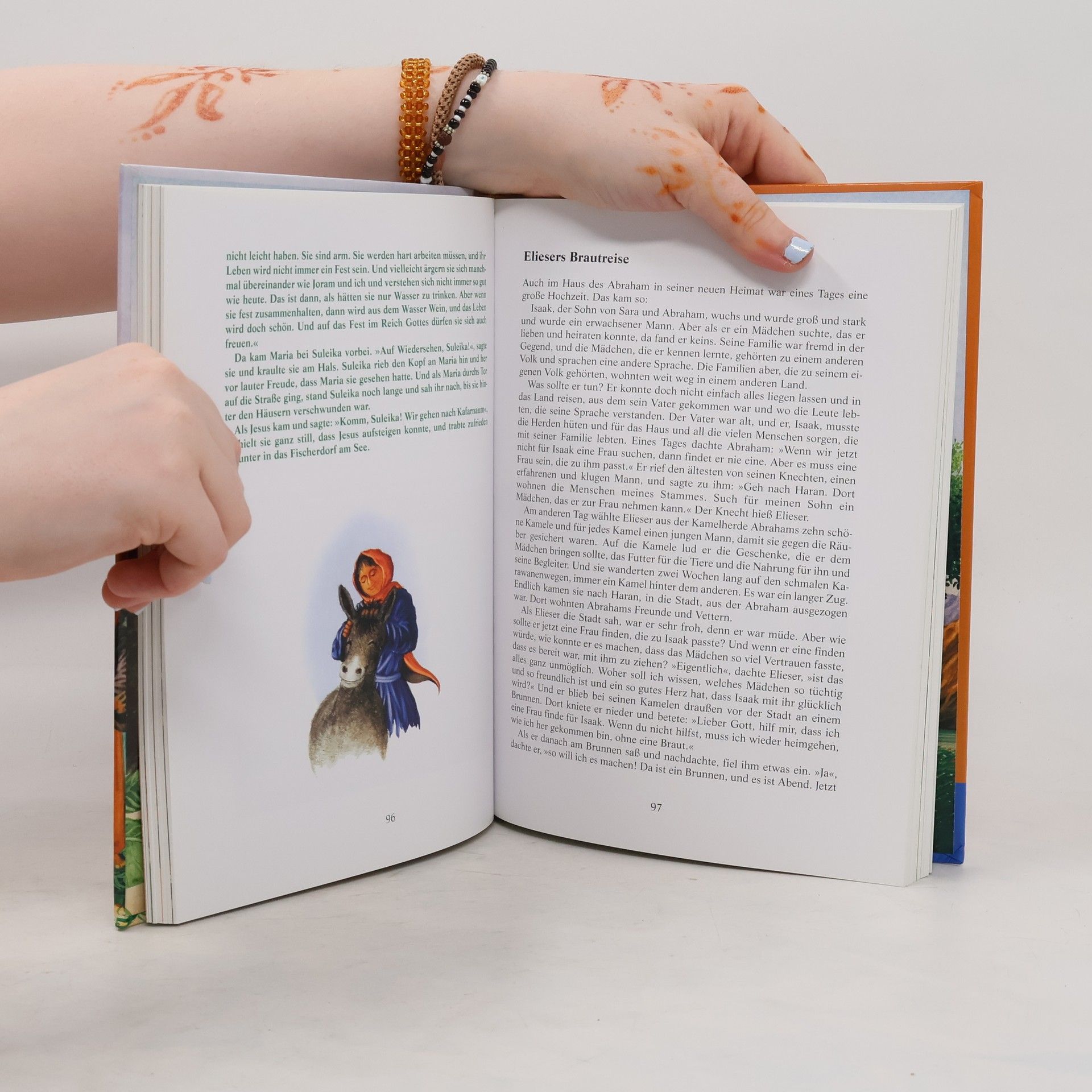 Kindern sollte man grundsätzlich keine Geschichten auftischen, an denen ihre noch zarten Seelen Schaden nehmen könnten. So sollten liebende Eltern ihren Kleinen unter keinen Umständen (womöglich vor dem Schlafengehen) die Geschichte vom Erlöser der Christenheit erzählen, den man an Füßen und Händen an ein Kreuz genagelt hat. Überhaupt scheint die Frage berechtigt, ob die Bibel denn das rechte Buch sei, um daraus Kindern "Gute-Nacht-Geschichten" vorzulesen. Ganz abgesehen davon, dass Bücher ohne Bilder, auf denen das Kind seine Augen ausruhen könnte, bei den Kleinen meist nicht so gut ankommen. All das weiß Jörg Zink natürlich. Und seine Kinderbibel ist die Antwort auf all diese Zweifel. Er hat mit der kongenialen Unterstützung des Illustrators Pieter Kunstreich (sowie dreier "Esel", die uns durch das ganze Buch begleiten) eine Kinderbibel vorgelegt, die alles hat, was ein gutes Kinderbuch braucht und doch nichts anderes tut als -- in einer souveränen, ausgesprochen gelungenen Auswahl! -- zu berichten, was in der Bibel steht. In grüner Schrift von den authentischen Bibelgeschichten abgehoben werden die Erzählungen von Zink fortgesponnen, miteinander verbunden und ergänzt und so erst recht "verdaulich". Spannend, über die Illustrationen hinaus voller phantastischer Bilder, lehrreich und auch für Erwachsende eine ausgesprochen erbauliche Lektüre! --Alexander Dohnberg