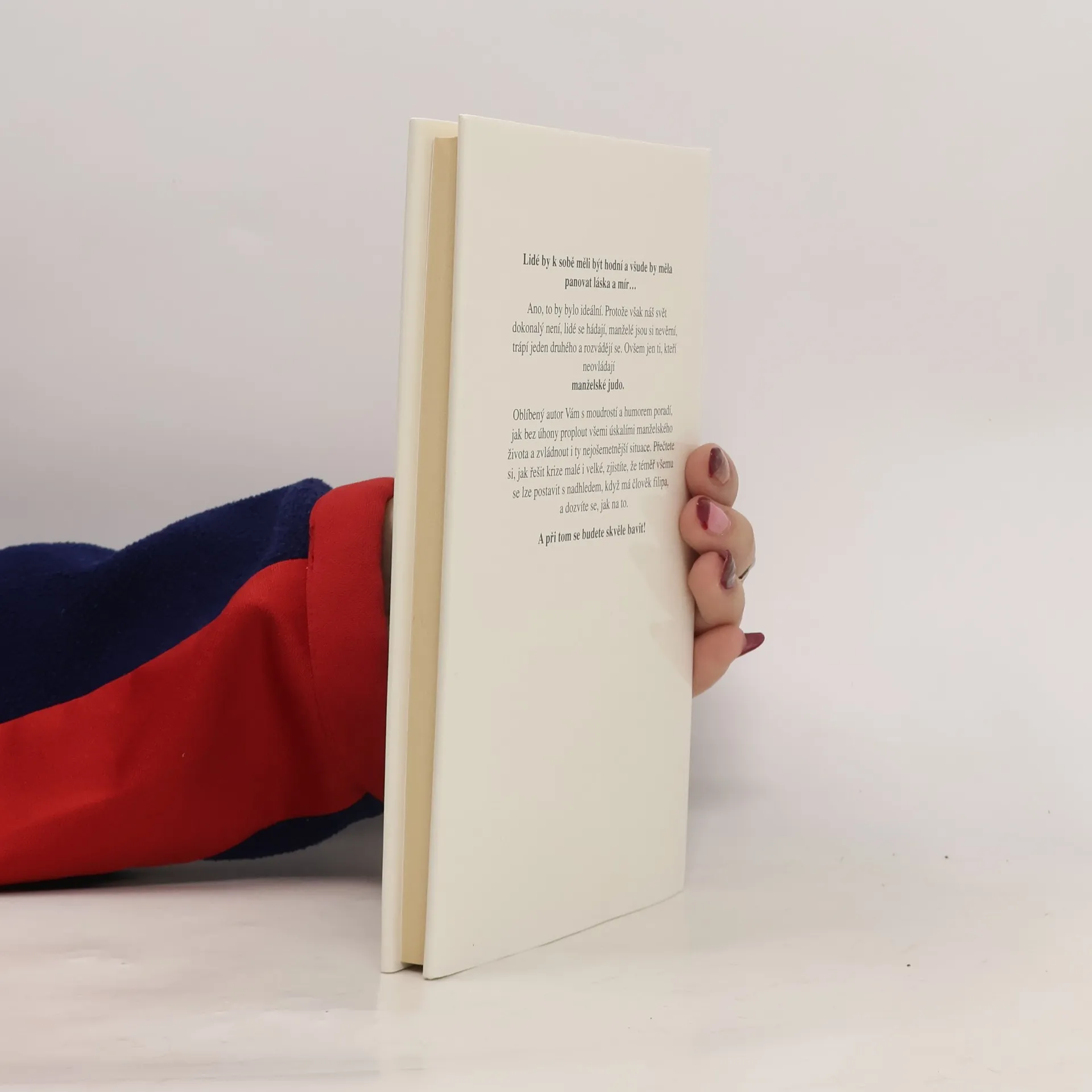 3. vydání. Dotisk r. 2002 s jinou obálkou. Lidé by k sobě měli být hodní a všude by měla panovat láska a mír… Ano, to by bylo ideální. Protože však náš svět dokonalý není, manželé jsou si nevěrní, trápí jeden druhého a rozvádějí se. Ovšem jen ti, kteří neovládají manželskéjudo. Oblíbený autor Vám s moudrostí a humorem poradí, jak bez úhony proplout všemi úskalími manželského života a zvládnout i ty nejošemetnější situace. Přečtěte si, jak řešit krize malé i velké. Zjistíte, že téměř všemu se lze postavit s nadhledem – a dozvíte se, jak na to.