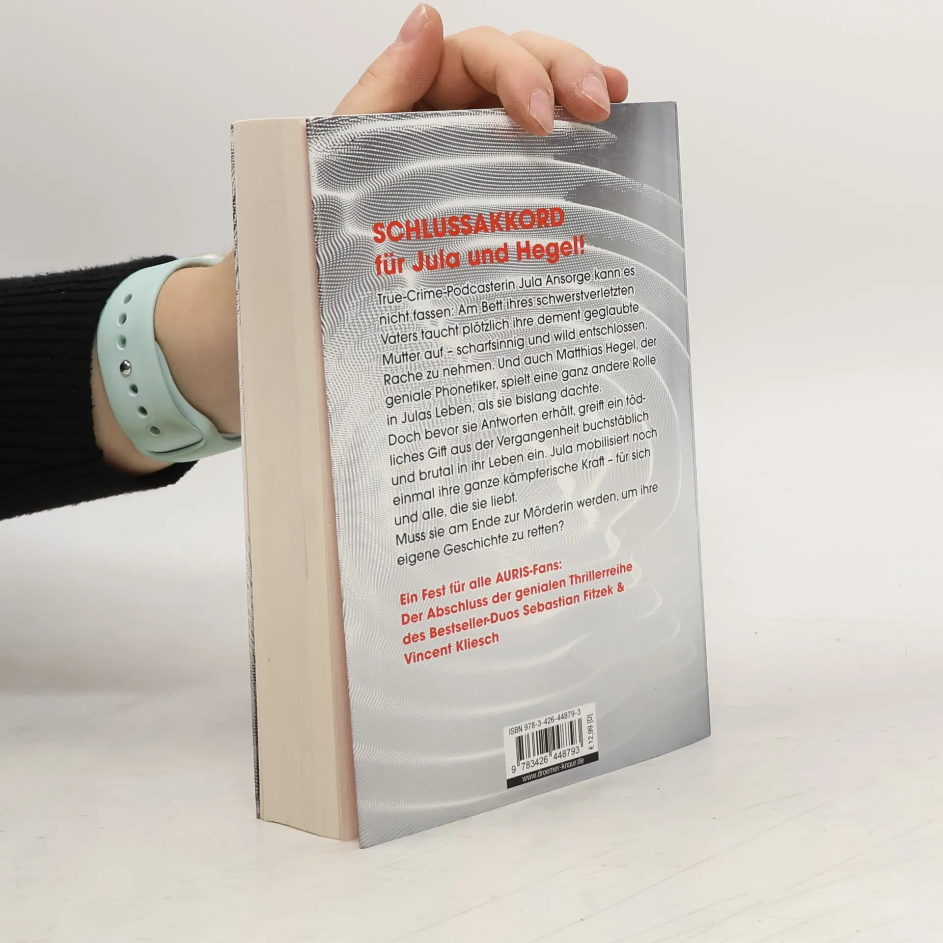 Ein Fest für alle AURIS-Fans: der Abschluss der genialen Thriller-Reihe Im 6. Band der Thriller-Reihe des Bestseller-Duos Sebastian Fitzek & Vincent Kliesch wird das Leben von Podcasterin Jula komplett auf den Kopf gestellt. True-Crime-Podcasterin Jula Ansorge kann es nicht fassen: Ihre eigene Mutter hat sie belogen, die Demenz war nur vorgespielt! Und das war noch die kleinste Lüge. Denn Matthias Hegel, der forensische Phonetiker mit dem absoluten Gehör, spielt eine gänzlich andere Rolle in Julas Vergangenheit, als sie bislang dachte. Doch bevor Jula echte Antworten erhält, werden Hegel und ihre Mutter vergiftet. Die Terroristen machen deutlich: Es existiert noch genau eine Dosis des Gegengifts – doch wer sie bekommen will, muss zu den Terroristen überlaufen. Könnte Jula wirklich zur Mörderin werden? Und selbst wenn sie dazu fähig ist – wen soll sie mit dem Gegengift retten, wen im Stich lassen? Um die größte Katastrophe in Julas Leben zu verhindern, ist Matthias Hegel bereit, über jede Grenze zu gehen und das Unvorstellbare zu tun … Atemlose Pageturner, die süchtig machen Die Thriller um das ungleiche Ermittler-Duo Jula und Hegel – den Mann, der das Verbrechen hört – erobern regelmäßig die SPIEGEL-Bestsellerliste. Wenn dir vor lauter Spannung die Nerven flattern und du bis zum Morgengrauen weiterlesen musst, dann hast du einen AURIS-Thriller in der Hand! Die Thriller-Bestseller von Vincent Kliesch und Sebastian Fitzek sind in folgender Reihenfolge erschienen: Auris Die Frequenz des Todes Todesrauschen Der Klang des Bösen Tödlicher Schall Puls der Angst