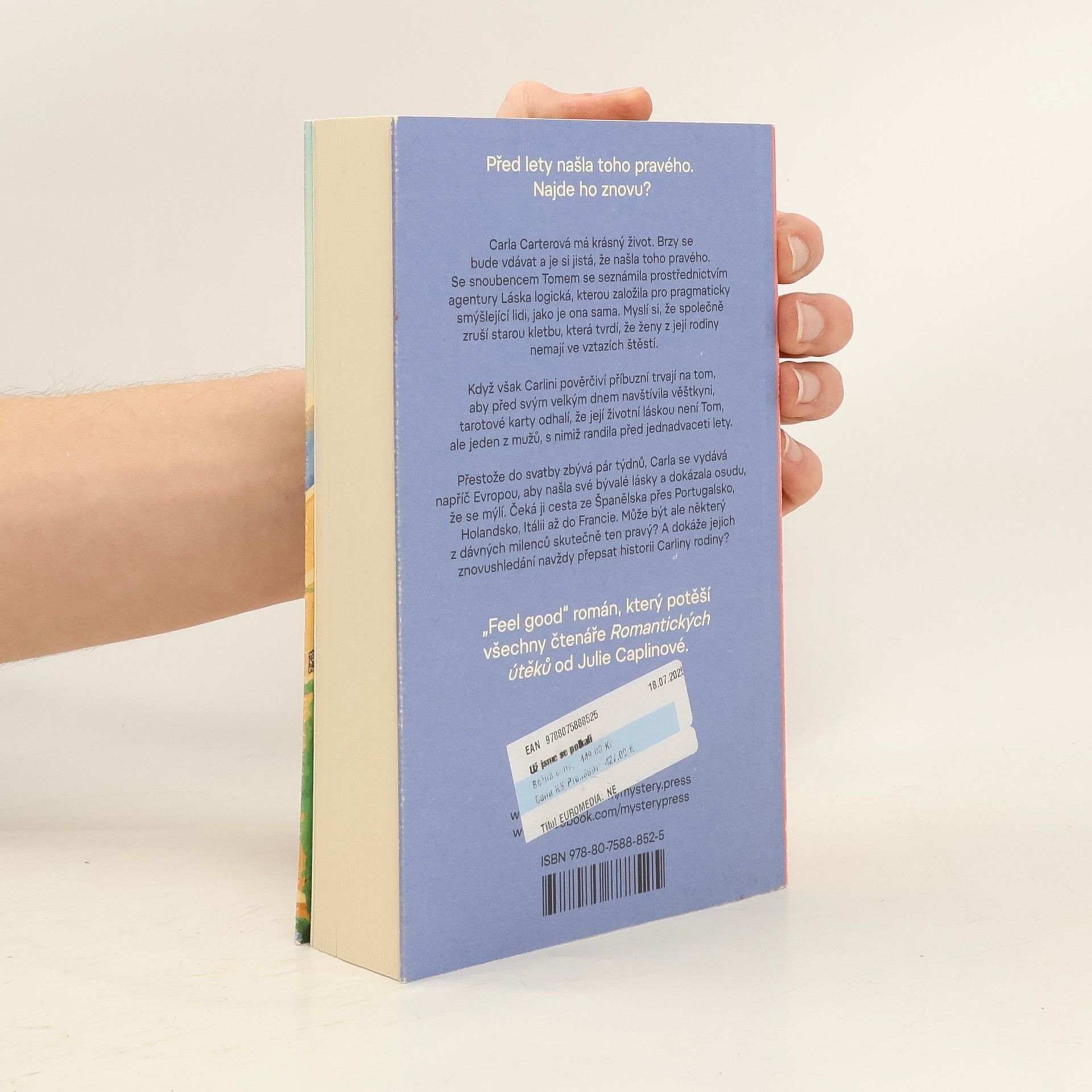 Carla Carterová se celý život řídí logikou – jako zakladatelka úspěšné seznamovací agentury věří, že láska je záležitostí rozumu, nikoli náhody. Když se však její rodina rozhodne před svatbou otestovat její osud u věštkyně, Carla je postavena před znepokojivou předpověď: její skutečná životní láska se skrývá v minulosti. S blížící se svatbou a nečekanými pochybnostmi se Carla vydává na cestu plnou vzpomínek, otázek a možných odpovědí. Co kdyby existovala jiná budoucnost, než jakou si naplánovala? Dojemný a humorný román o lásce, rodině a nečekaných druhých šancích napsala autorka oblíbeného románu Hotýlek v Itálii.