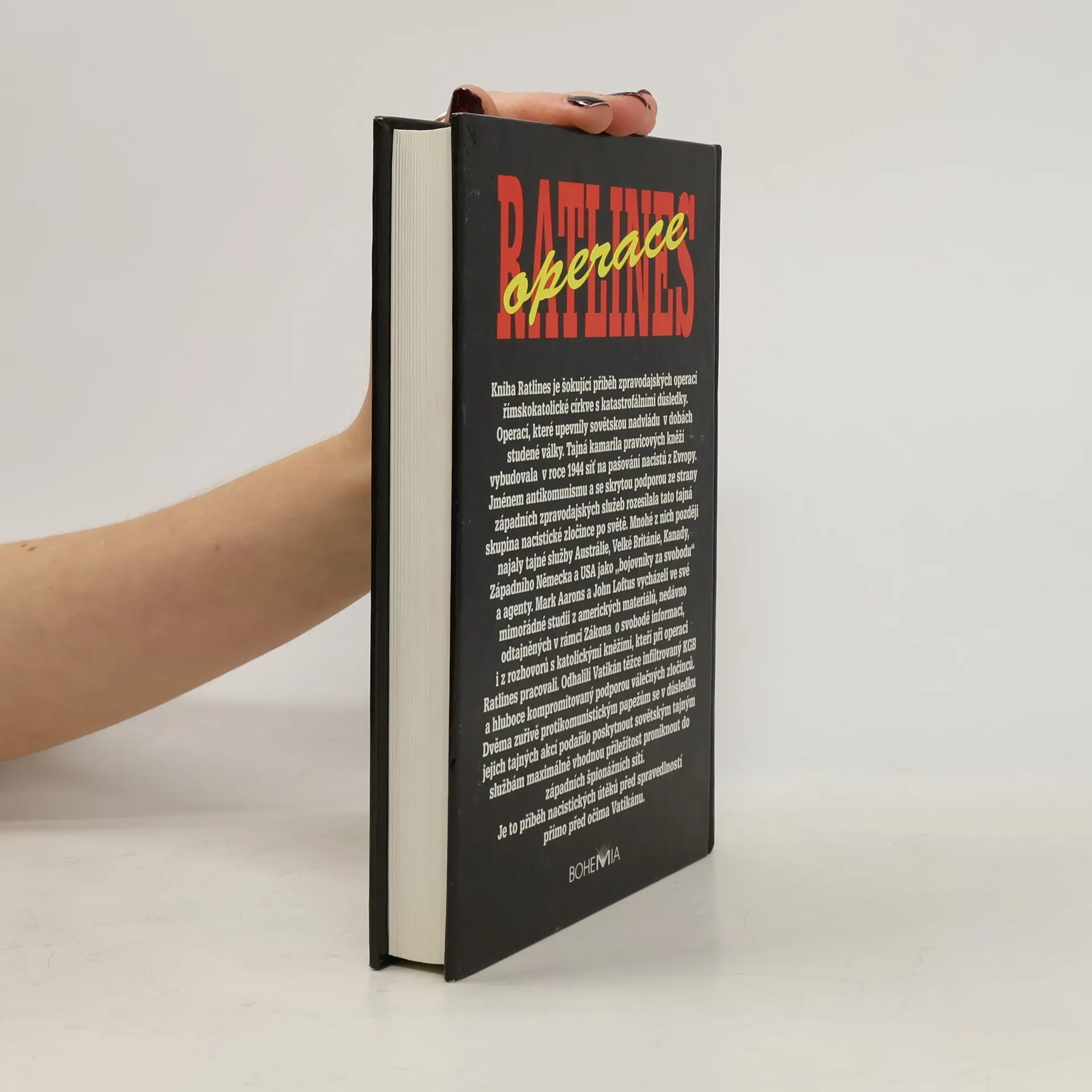 Šokující fakta o nacistických sítích upředených Vatikánem a vyzrazených západními zpravodajskými službami Moskvě. Kniha Ratlines je šokující příběh zpravodajských operací římskokatolické církve s katastrofálními důsledky. Operací, které upevnily sovětskou nadvládu v dobách studené války. Tajná kamarila pravicových kněží vybudovala v roce 1944 síť na pašování nacistů z Evropy. Jméneme antikomunismu a se skrytou podporou ze strany západních zpravodajských služeb rozesílala tato tajná skupina nacistické zločince po světe. Mnohé z nich později najaly tajné služby Austrálie, Velké Británie, Kanady, Západního Německa a USA jako „bojovníky za svobodu“ a agenty. Mark Aarons a John Loftus vycházeli ve své mimořádné studii z amerických materiálů, nedávno odtajněných v rámci Zákona o svobodě informací, i z rozhovorů s katolickými kněžími, kteří pri operaci Ratlines pracovali. Odhalili Vatikán těžce infiltrovaný KGB a hluboce kompromitovaný podporou válečných zločinců. Dvěma zuřivě protikomunistickým papežům se v důsledku jejich tajných akcí podařilo poskytnout sovětským tajným službám maximálně vhodnou příležitost proniknout do západních špionážních sítí. Je to přiběh nacistických útěků před spravedlností přímo před očima Vatikánu.