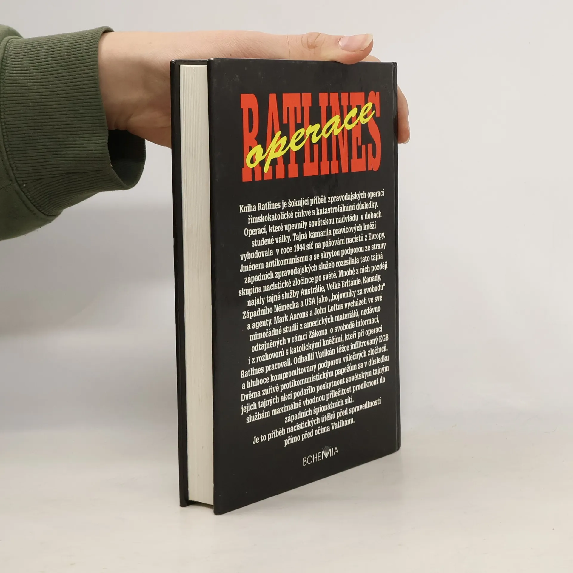 Šokující fakta o nacistických sítích upředených Vatikánem a vyzrazených západními zpravodajskými službami Moskvě. Kniha Ratlines je šokující příběh zpravodajských operací římskokatolické církve s katastrofálními důsledky. Operací, které upevnily sovětskou nadvládu v dobách studené války. Tajná kamarila pravicových kněží vybudovala v roce 1944 síť na pašování nacistů z Evropy. Jméneme antikomunismu a se skrytou podporou ze strany západních zpravodajských služeb rozesílala tato tajná skupina nacistické zločince po světe. Mnohé z nich později najaly tajné služby Austrálie, Velké Británie, Kanady, Západního Německa a USA jako „bojovníky za svobodu“ a agenty. Mark Aarons a John Loftus vycházeli ve své mimořádné studii z amerických materiálů, nedávno odtajněných v rámci Zákona o svobodě informací, i z rozhovorů s katolickými kněžími, kteří pri operaci Ratlines pracovali. Odhalili Vatikán těžce infiltrovaný KGB a hluboce kompromitovaný podporou válečných zločinců. Dvěma zuřivě protikomunistickým papežům se v důsledku jejich tajných akcí podařilo poskytnout sovětským tajným službám maximálně vhodnou příležitost proniknout do západních špionážních sítí. Je to přiběh nacistických útěků před spravedlností přímo před očima Vatikánu.