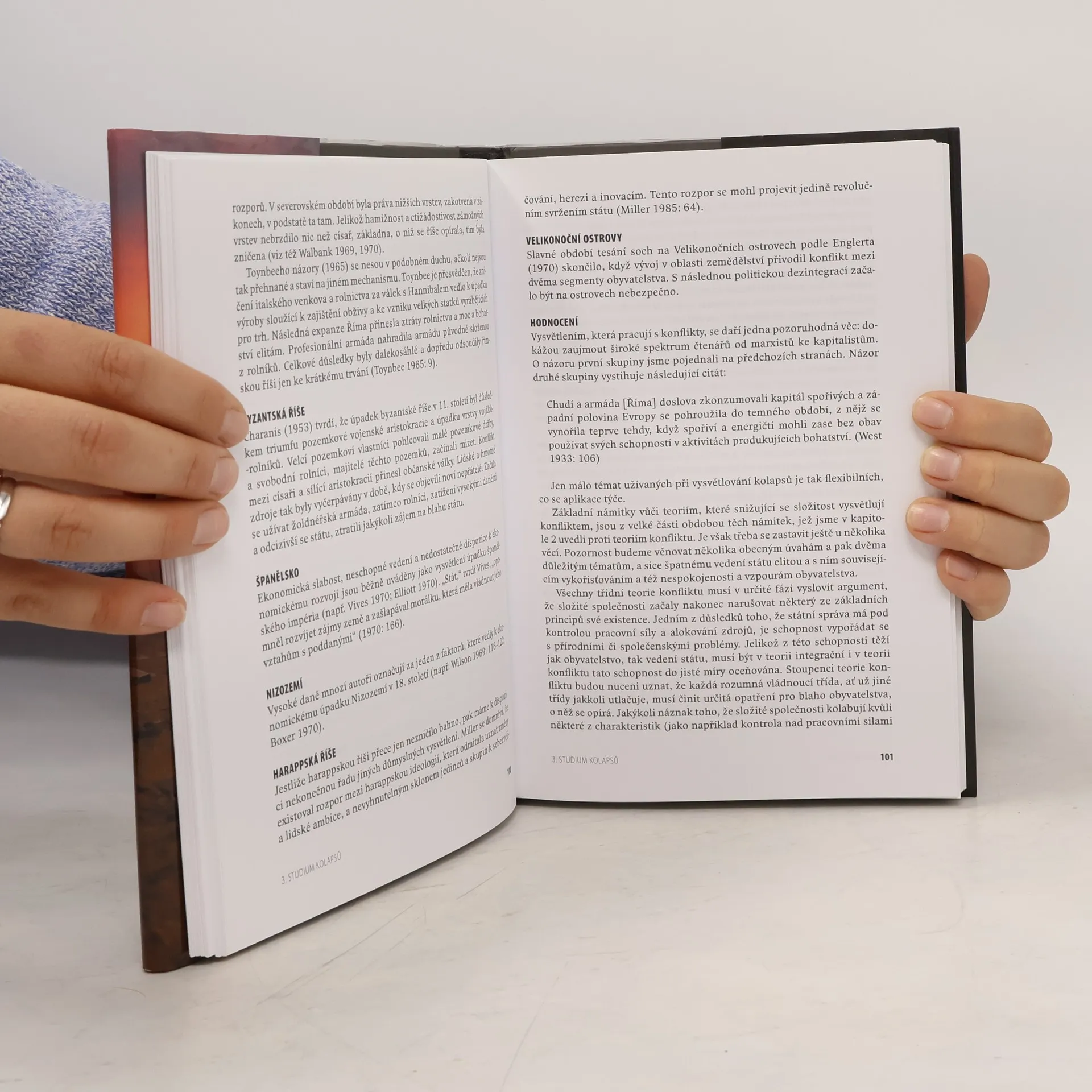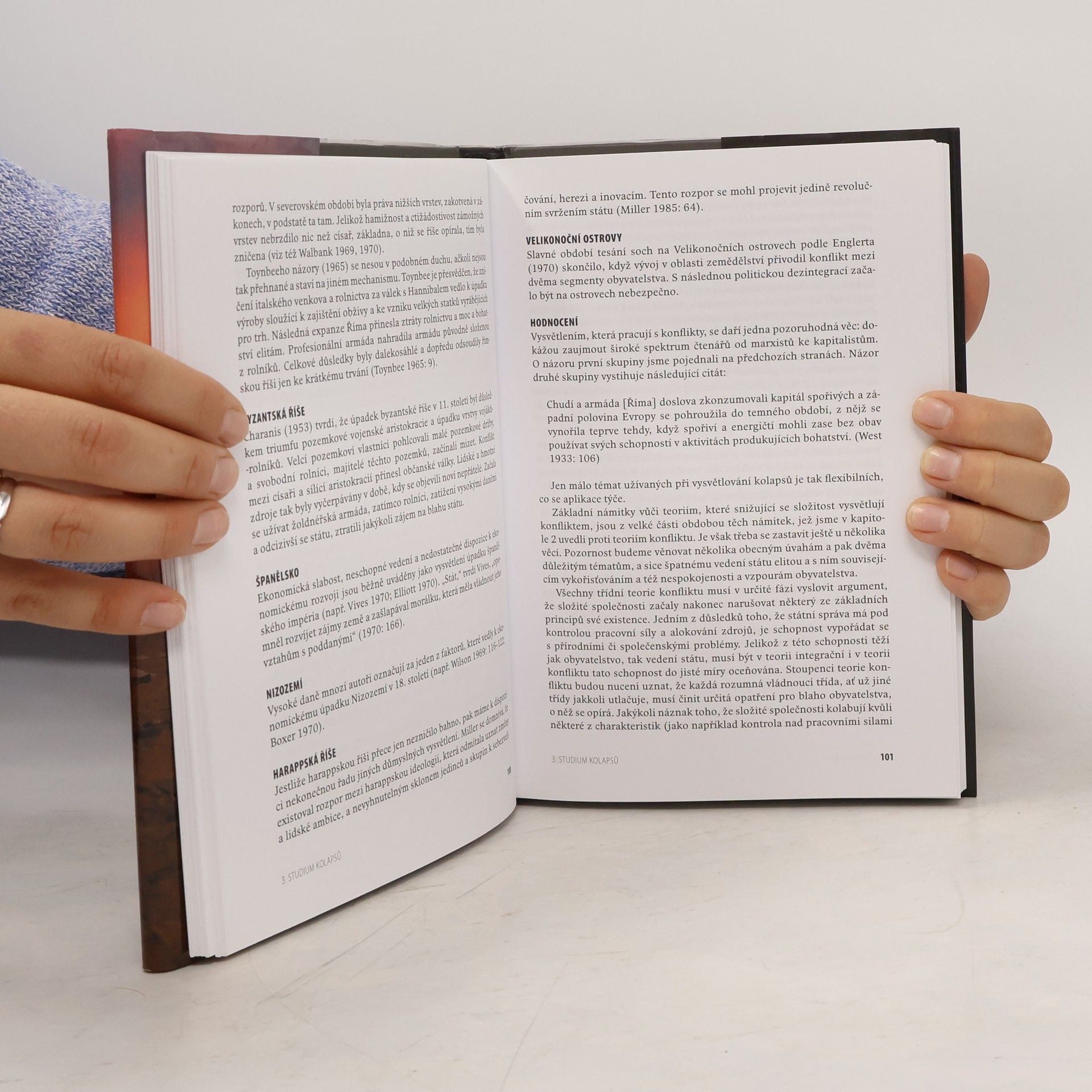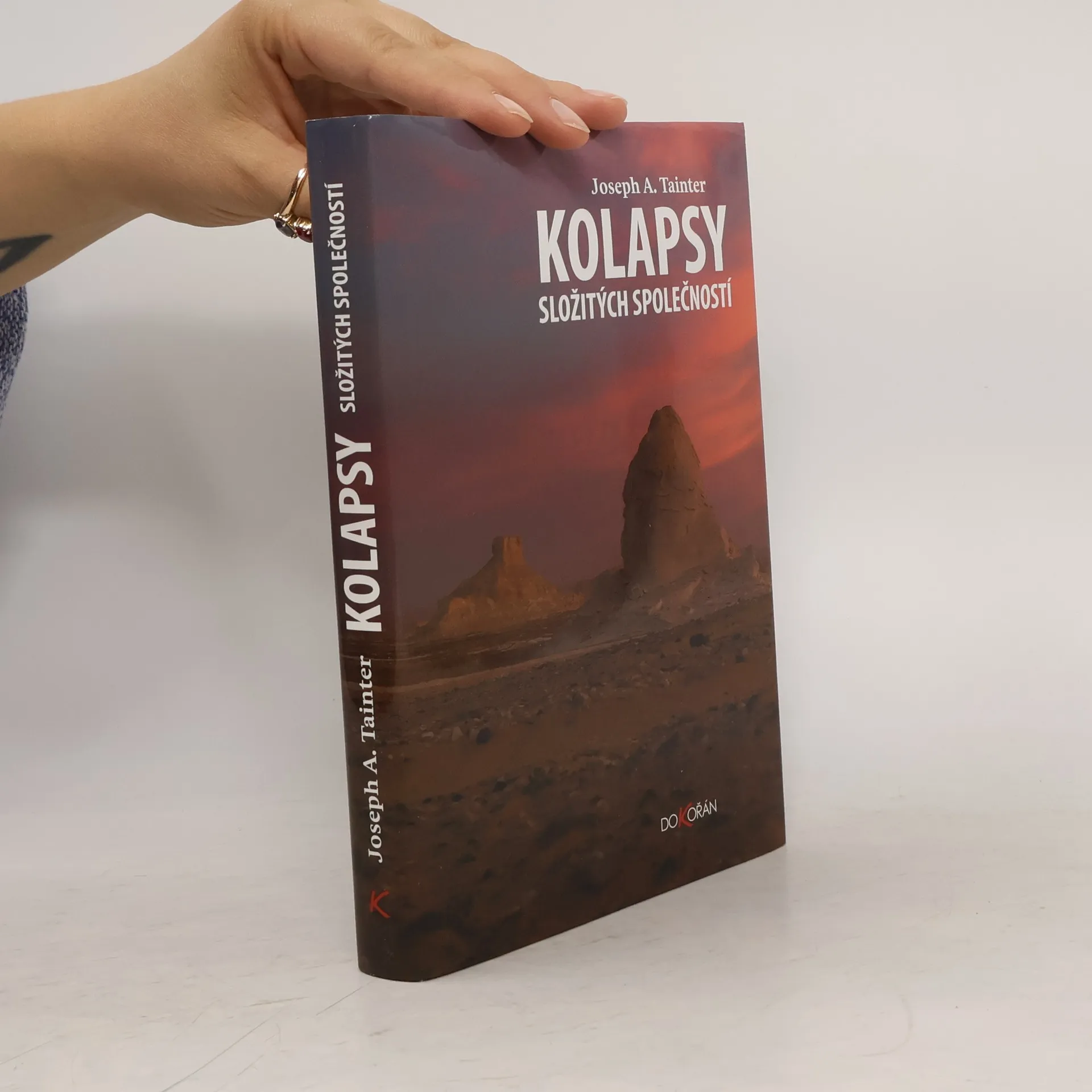 Americký archeolog, antropolog a historik Joseph A. Tainter se ve své nejznámější práci zabývá otázkou, proč se v minulosti zhroutily mnohé říše, státní útvary či jiné složité organizační formy lidské společnosti. Nejprve uvádí téměř dvě desítky případů kolapsu a podává přehled teorií, jejichž prostřednictvím se během uplynulých dvou tisíc let kolapsy vysvětlovaly. Poté vytváří vlastní, široce aplikovatelnou teorii kolapsů (kolapsy jsou v ní vysvětleny poklesem mezních výnosů investic do složitosti). Prostřednictvím detailních studií kolapsu římské a mayské říše a americké kultury Chaco pak ověřuje platnost svého modelu a objasňuje fungování dezintegračních procesů. V závěrečné kapitole se zamýšlí nad tím, zdali kolaps nehrozí také současné společnosti, což je jedna z otázek, které člověka jedenadvacátého století znepokojují.