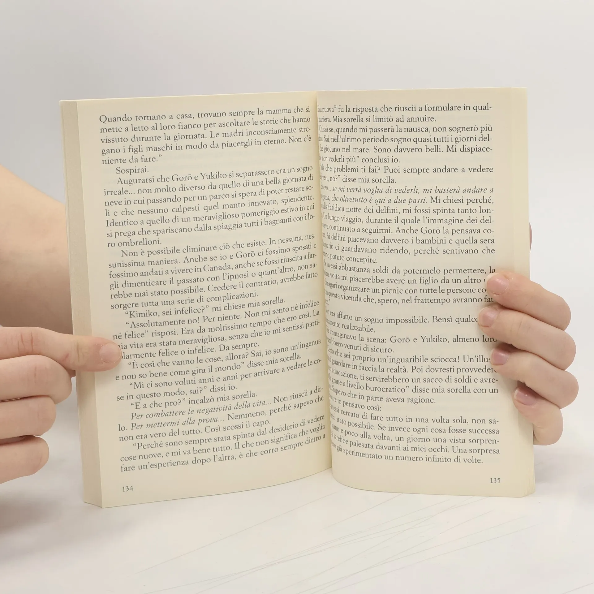 Kimiko, giovane scrittrice di romanzi d'amore, esce con Goro. Una sera, dopo una visita all'acquario di Tokio per vedere i delfini, fanno l'amore, ma Kimiko capisce subito che la loro storia non ha futuro; Goro convive infatti con un'altra donna, più grande di lui e dalla quale non vuole separarsi. Kimiko decide allora di abbandonare Tokio per trovare rifugio in un tempio vicino al mare, dove conosce Mami, ragazza dalle doti soprannaturali. È da lei che viene a sapere di essere incinta. Le notti di Kimiko, i suoi sogni, si popolano di delfini, meravigliose creature che l'accompagnano, insieme ad Akane, la bambina che porta in grembo, verso un futuro che non si era immaginata. Un romanzo molto intimo, quasi privato, che apre una nuova area di esperienza emozionale del mondo di Banana Yoshimoto.